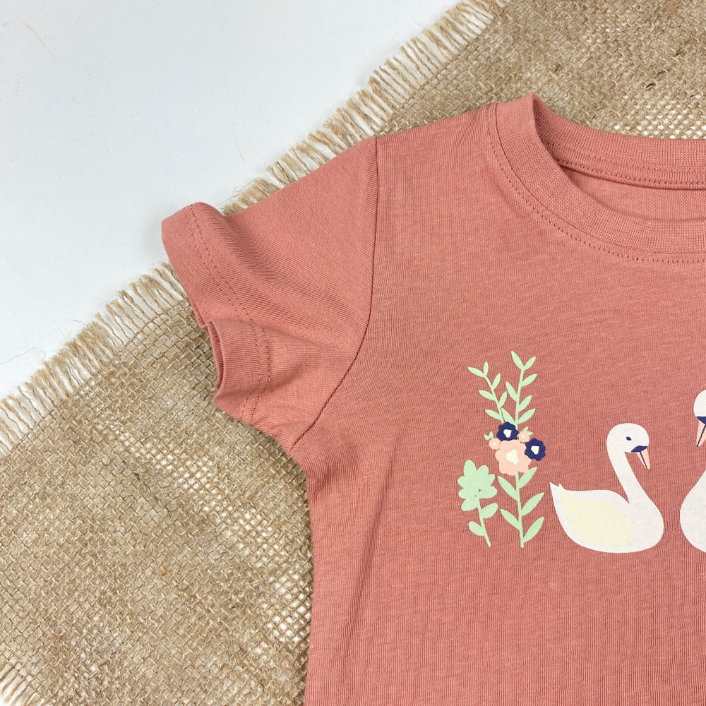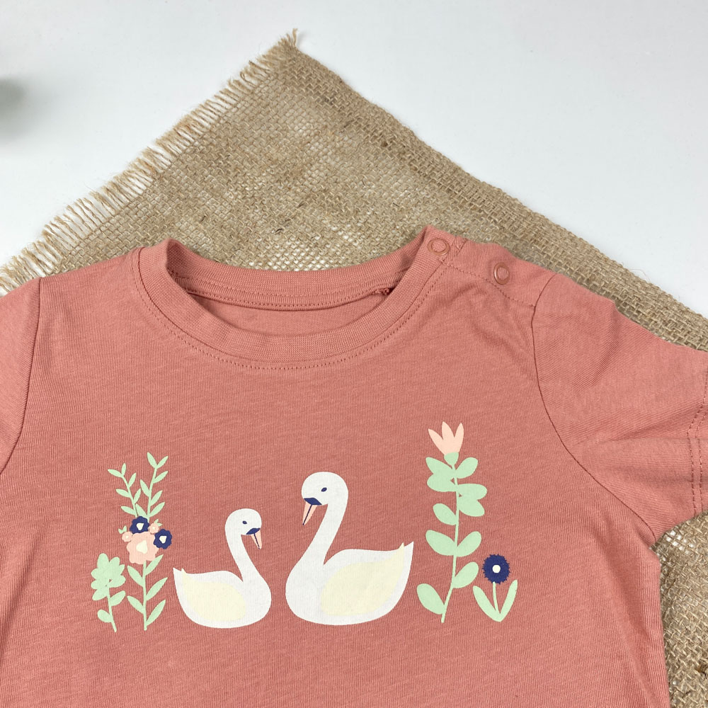 تیشرت نوزادی دخترانه آستین کوتاه برند لوپیلو طرح دو عدد قو یقه گرد دو دکمه ای کالباسی رنگ – 6 تا 12 ماه