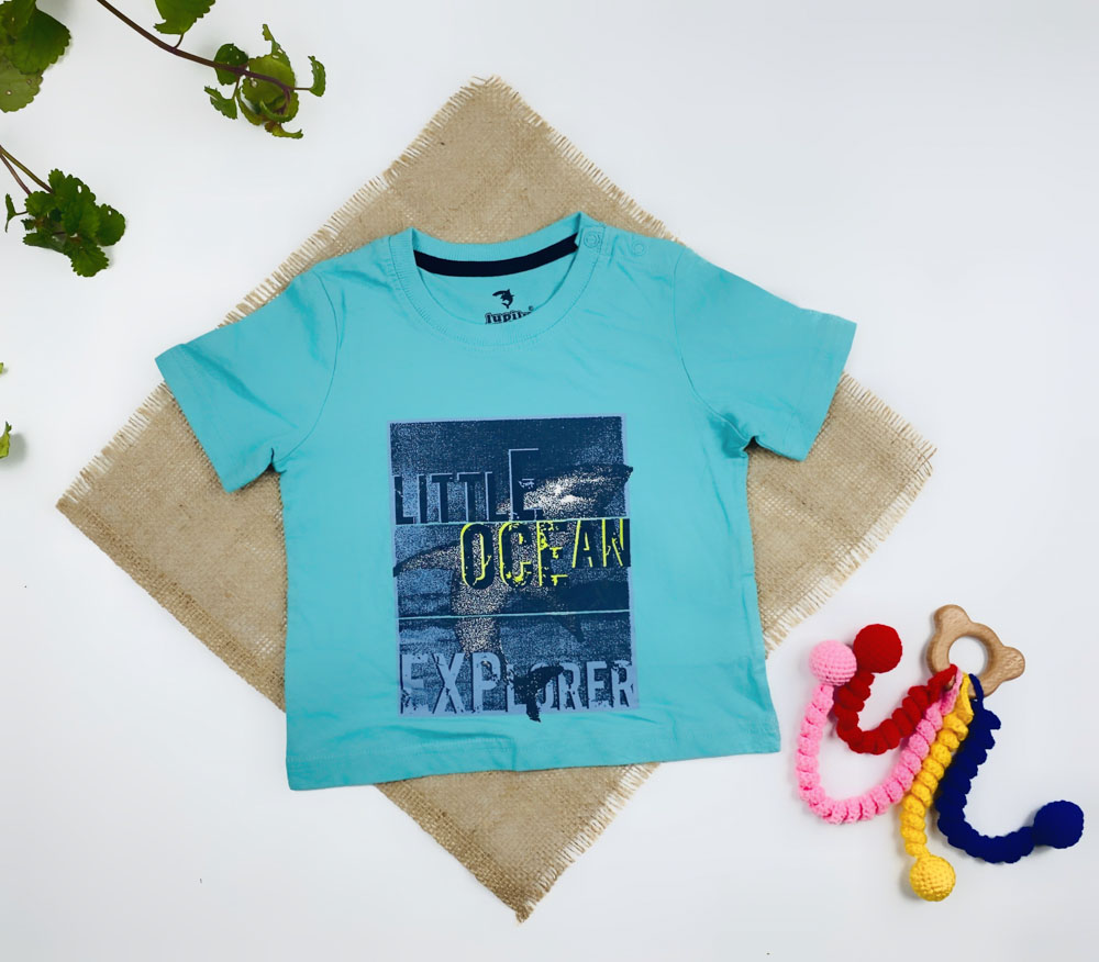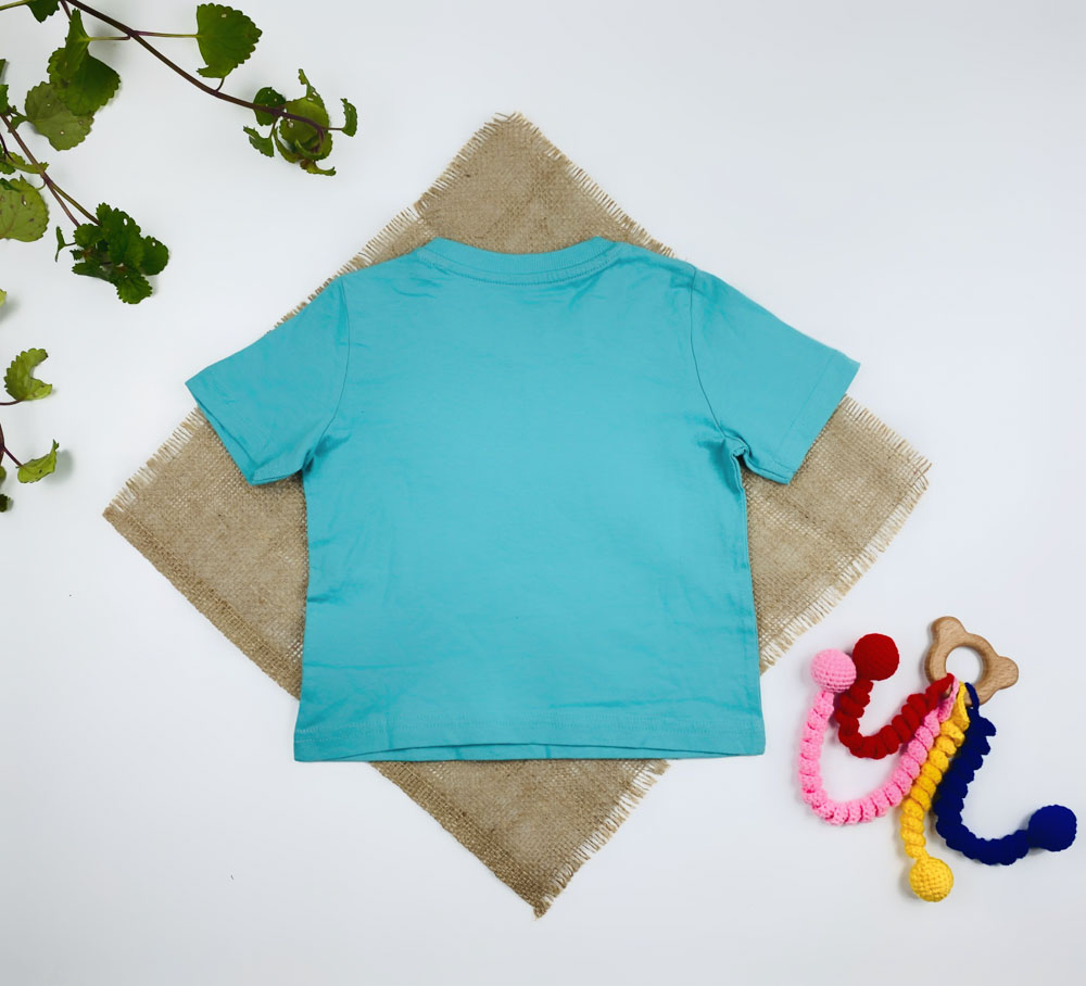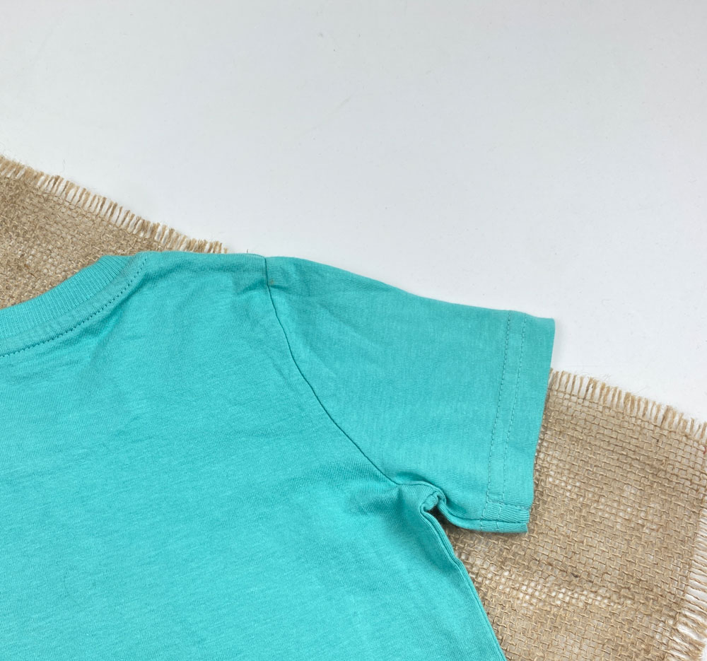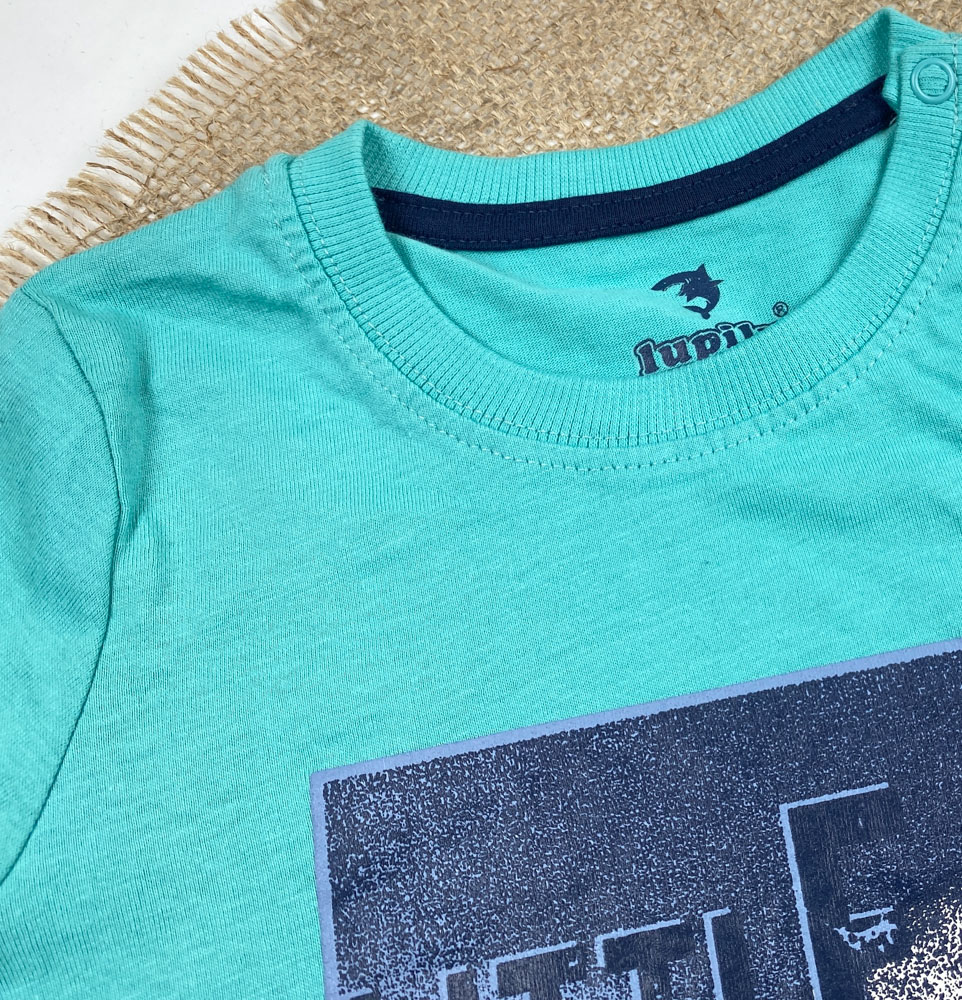 تیشرت نوزادی پسرانه آستین کوتاه برند لوپیلو طرح یقه گرددکمه دار کوسه متن لاتین سبزصابونی رنگ – 12 تا 24 ماه
