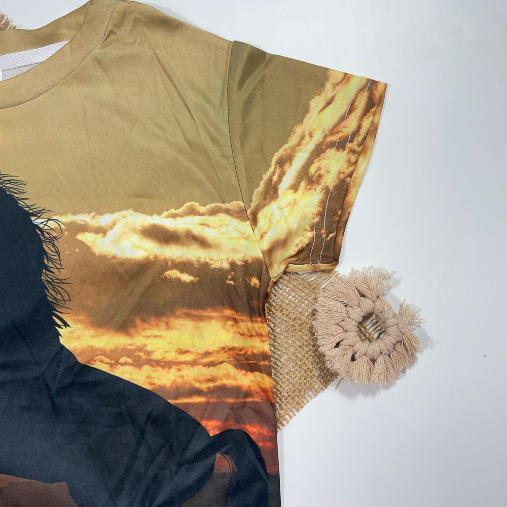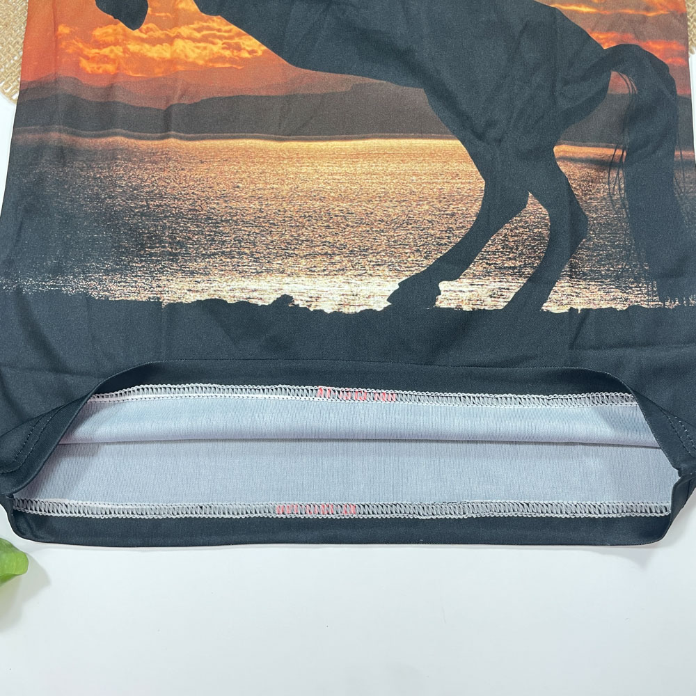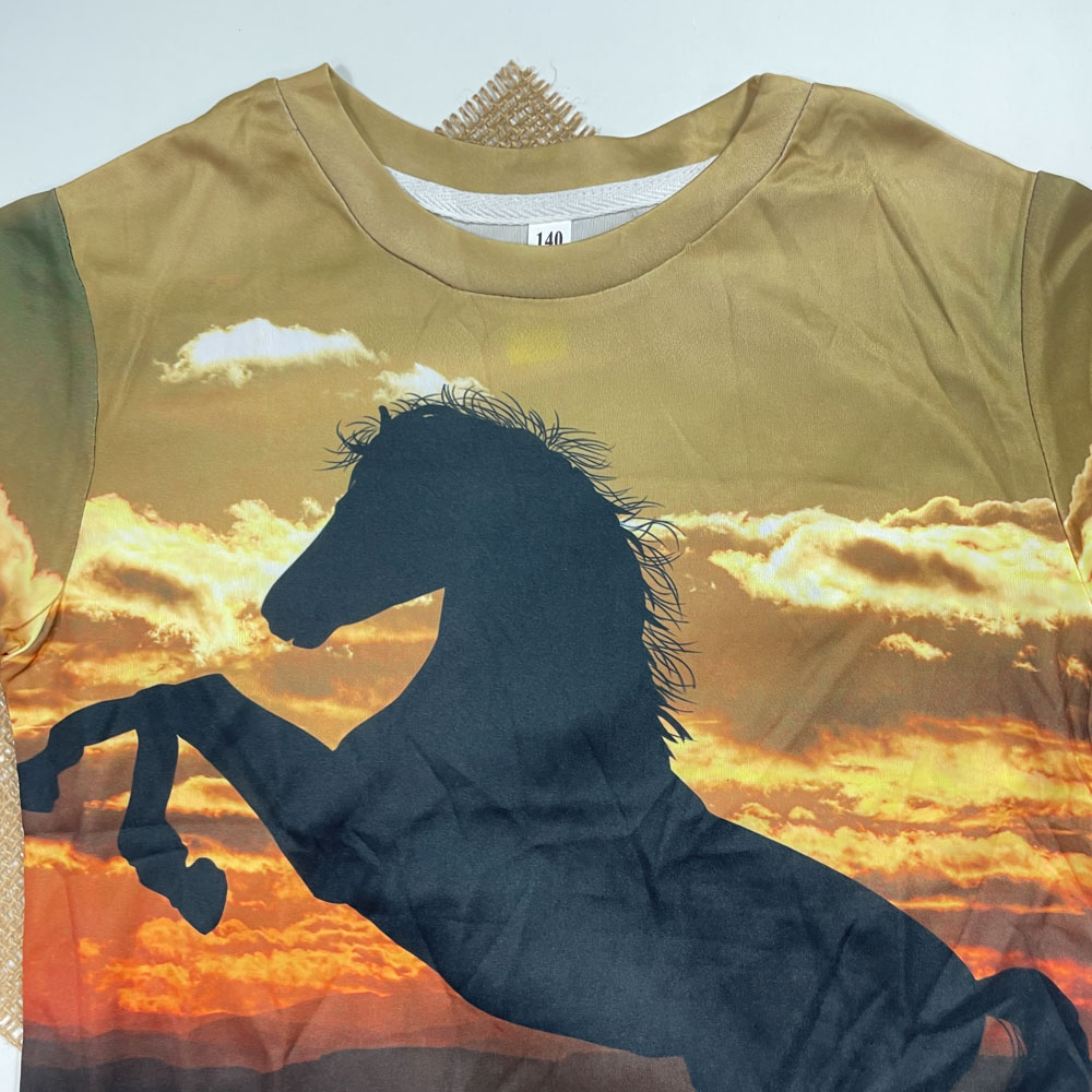 تیشرت پسرانه آستین آستین دار طرح اسب مشکی رنگ – 8 تا 10 سال