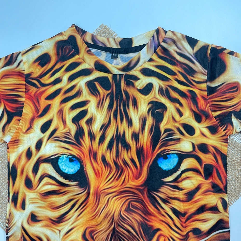 تیشرت پسرانه آستین آستین دار طرح شیر نارنجی رنگ – 7 تا 8 سال