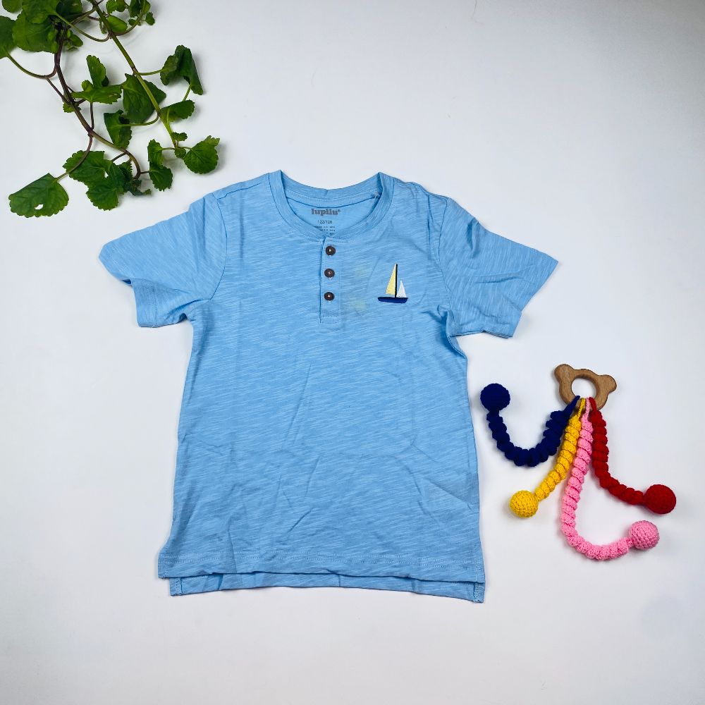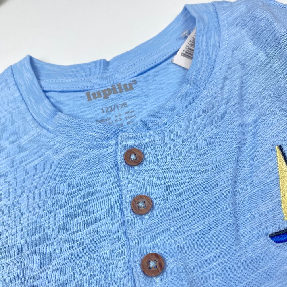 تیشرت پسرانه آستین کوتاه برند لوپیلو طرح قایق دکمه دار آبی کمرنگ