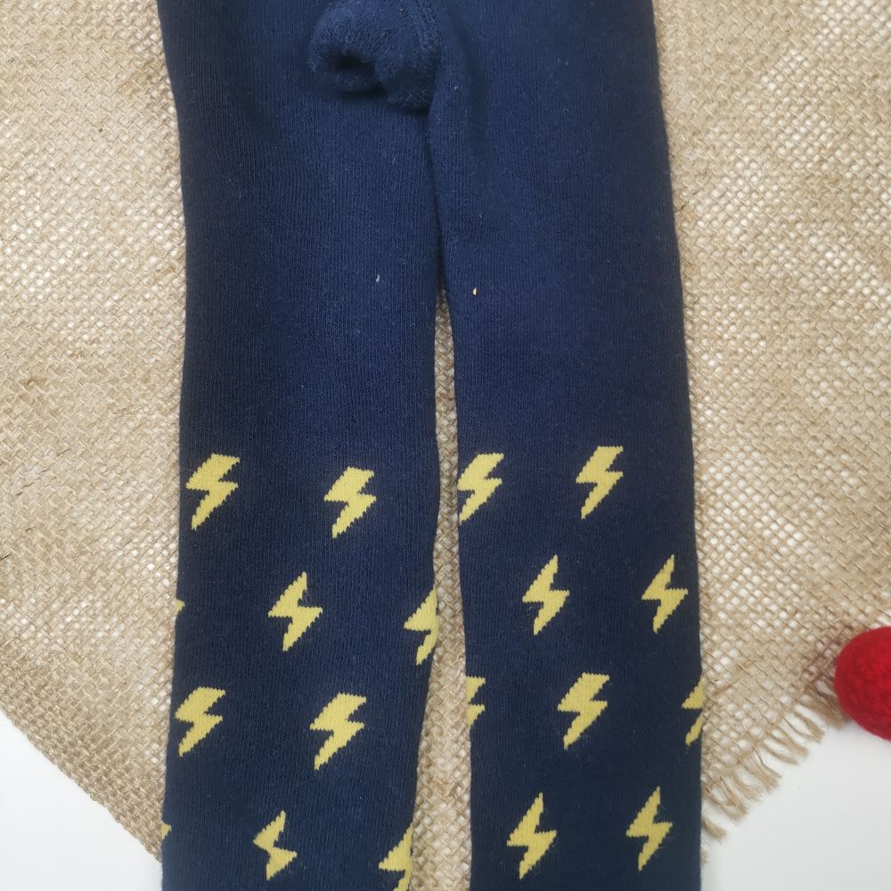 جوراب شلواری برند لوپیلو طرح رعدو برق تو حوله ای سرمه ای رنگ – 4 تا 6 سال