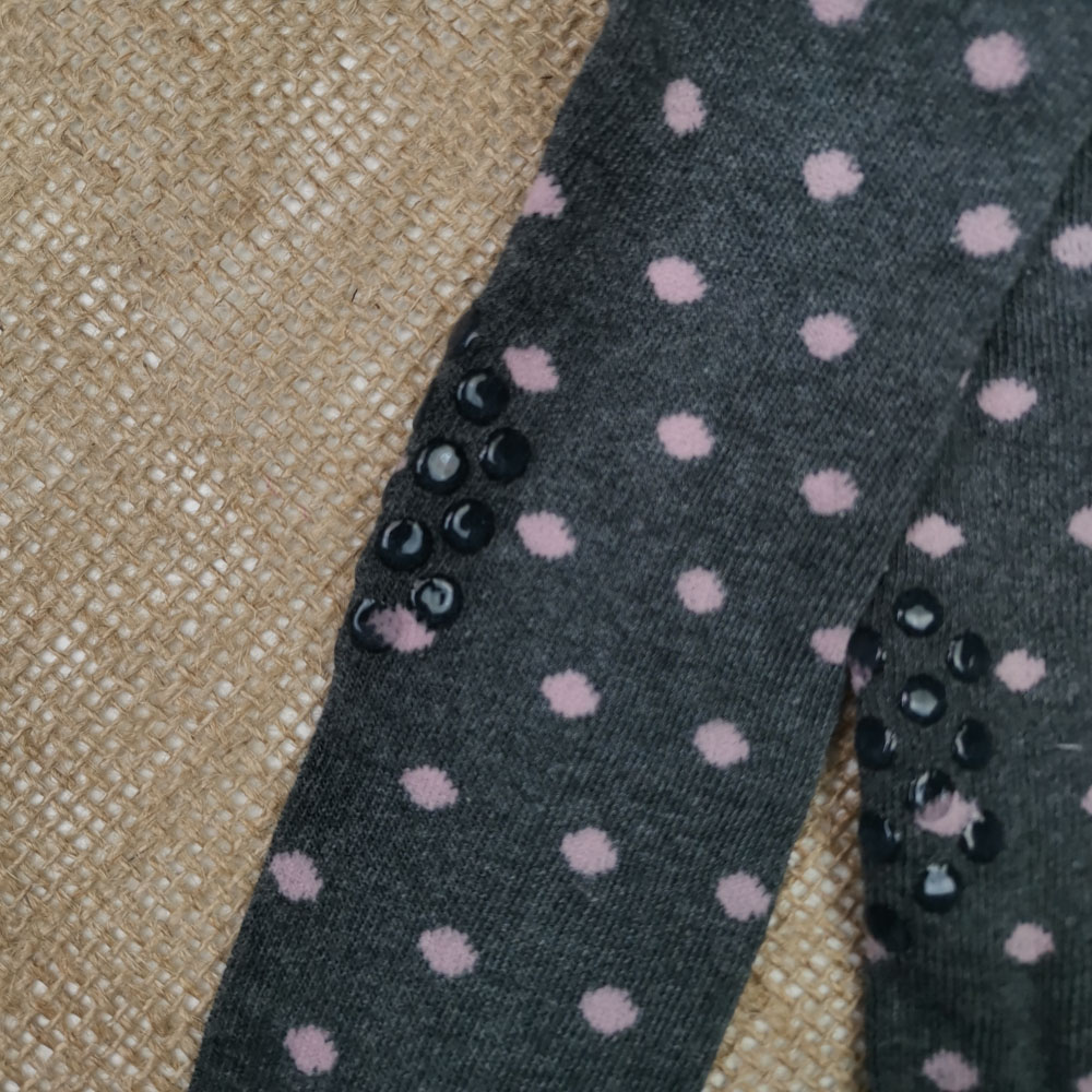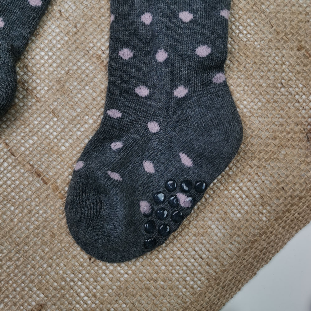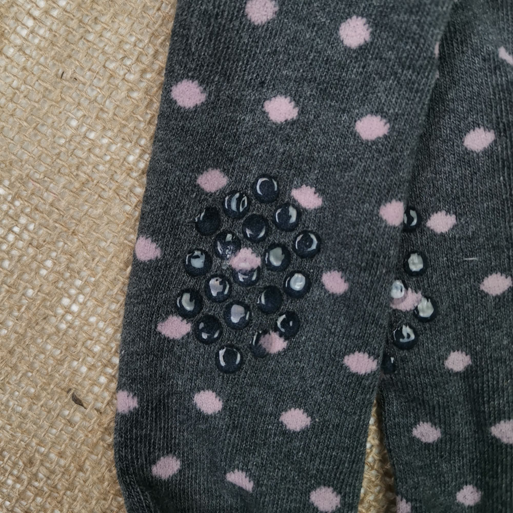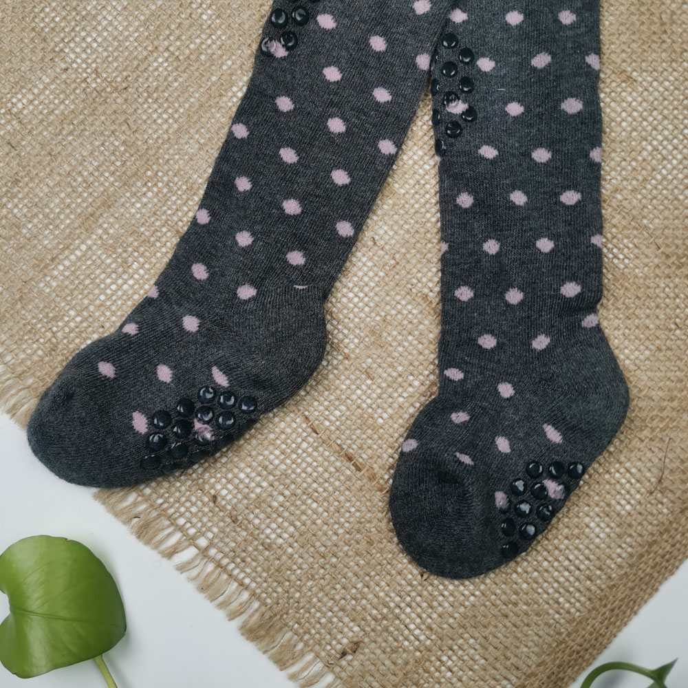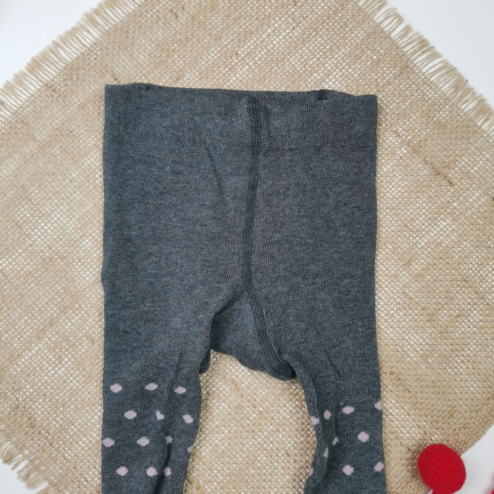 جوراب شلواری نوزادی برند impidimpi طرح خال خالی استوپ دار نیمه توکرکی طوسی رنگ