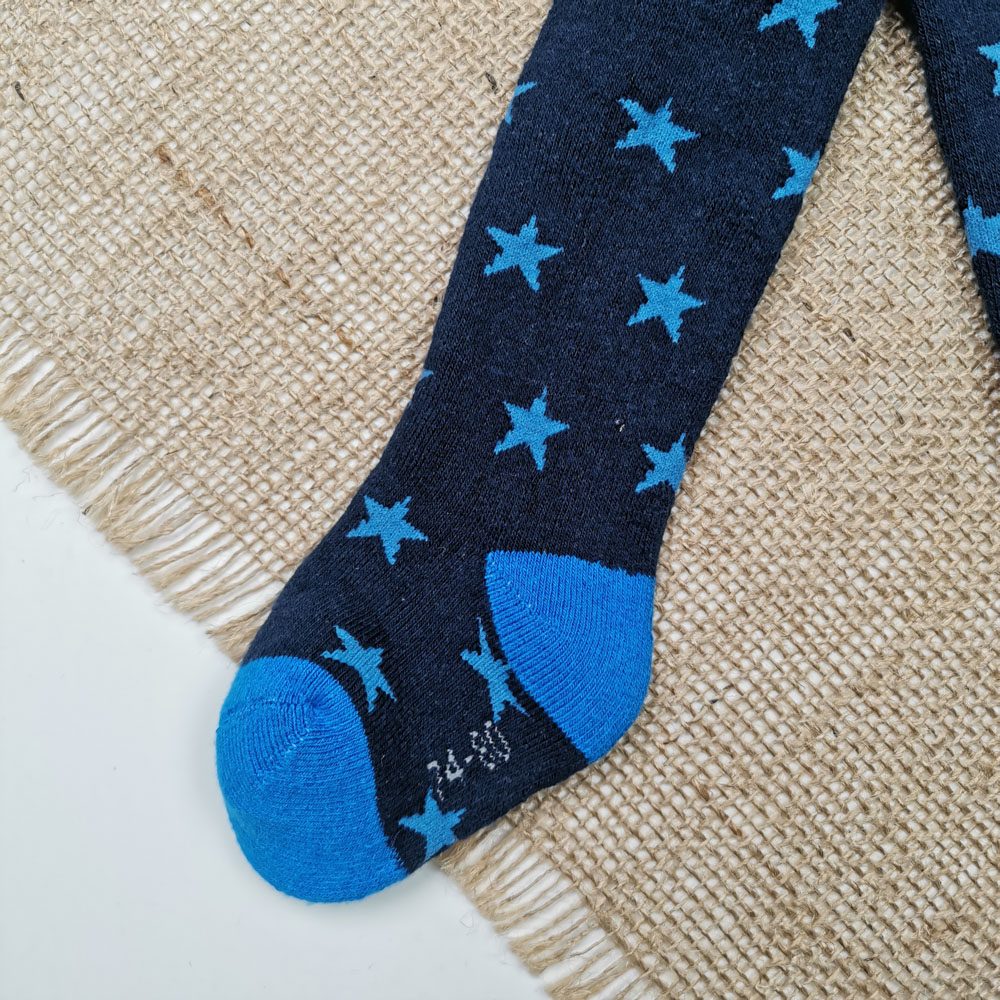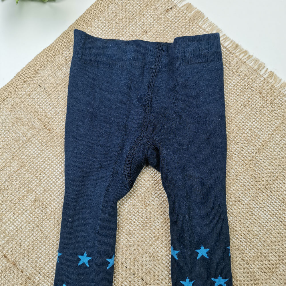 جوراب شلواری نوزادی برند poco piano طرح ستاره ای تو حوله ای سورمه ای رنگ – 6 تا 12 ماه