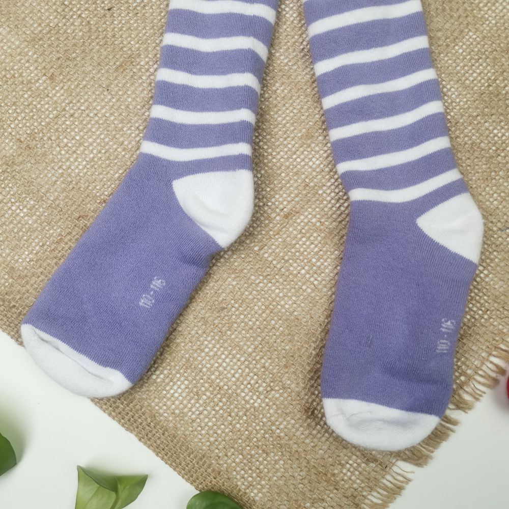 جوراب شلواری نوزادی طرح راه راه تو حوله ای بنفش رنگ
