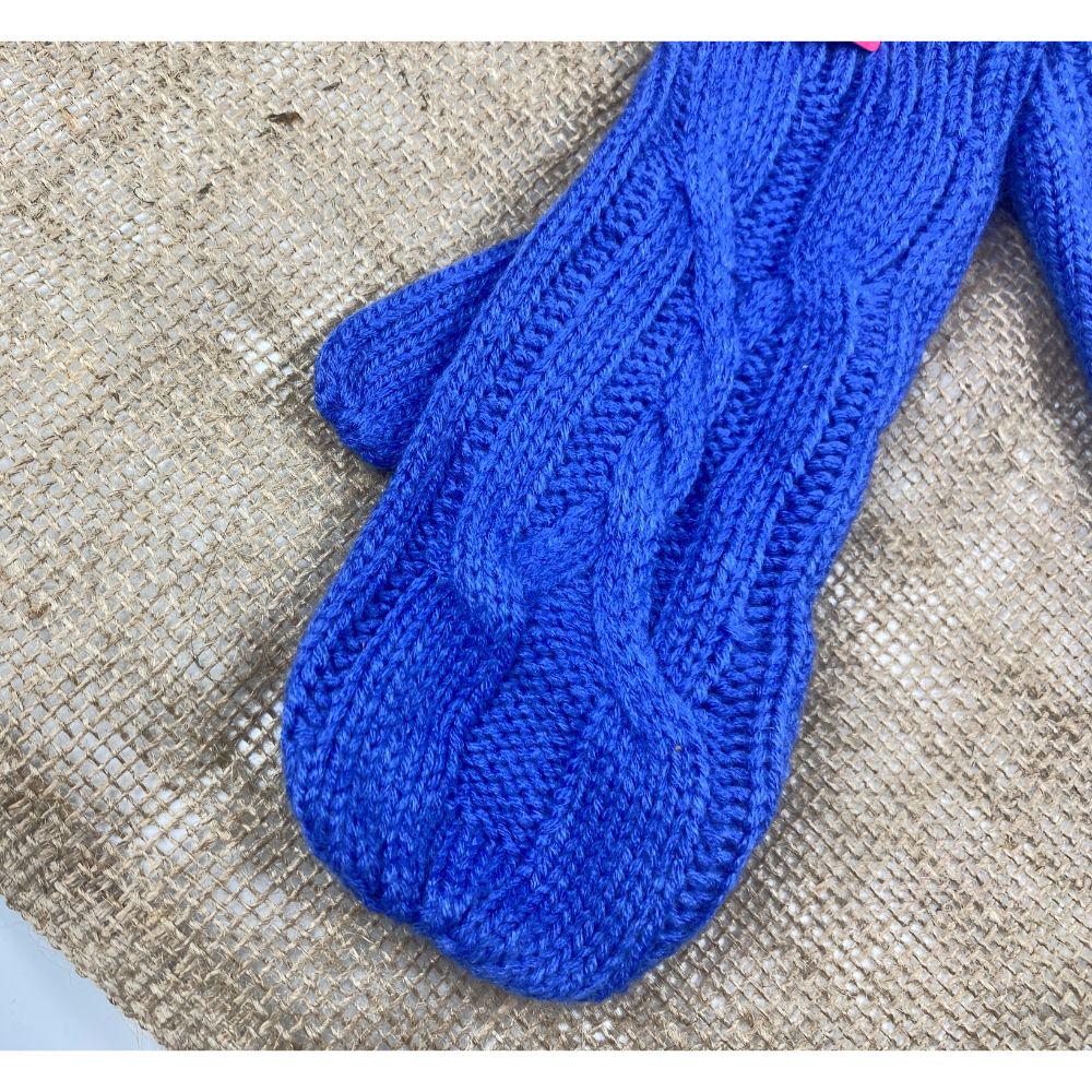 دستکش طرح مدل باف شصتی نیلی رنگ – فری سایز