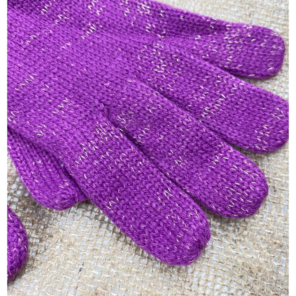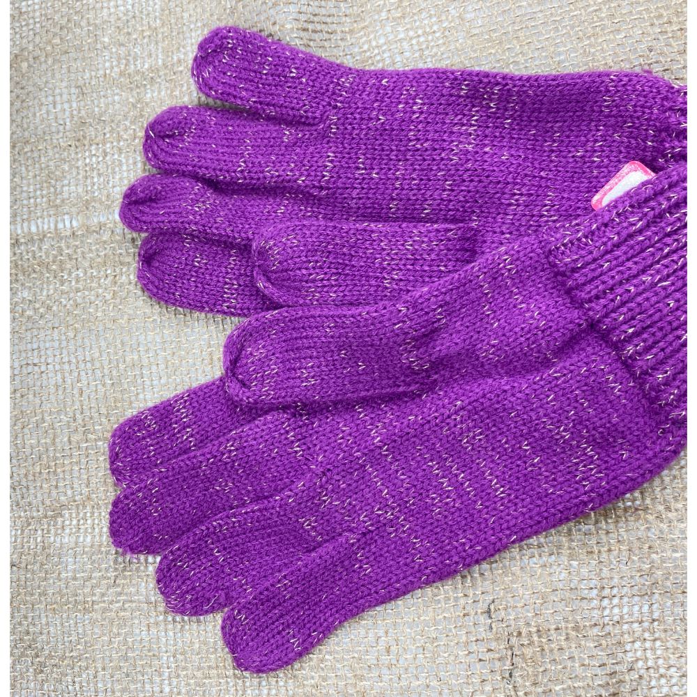 دستکش طرح مدل رگه های طلایی مدل پنج انگشتی بنفش رنگ – فری سایز