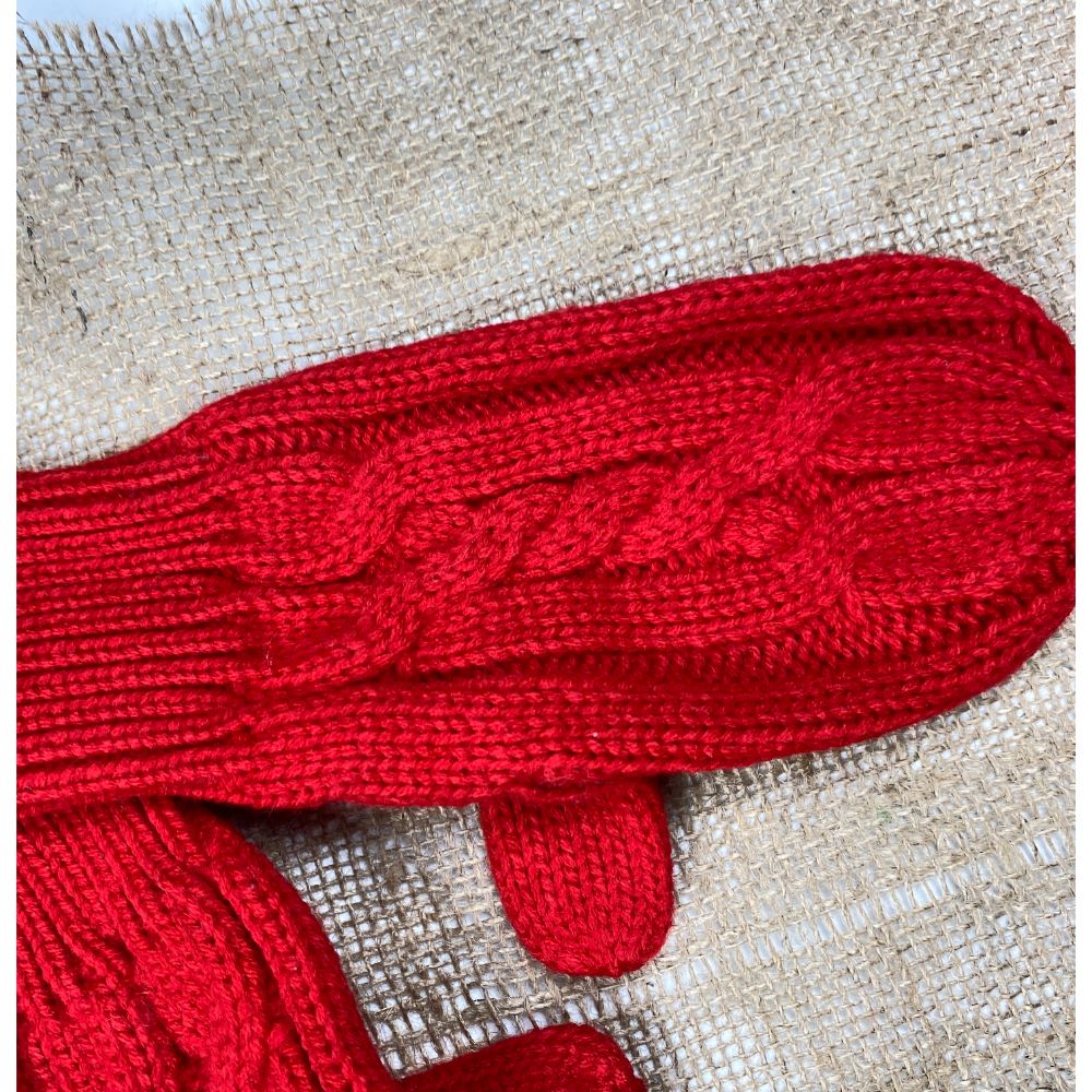 دستکش طرح مدل طرح بافته مدل شصتی زرشکی رنگ – فری سایز