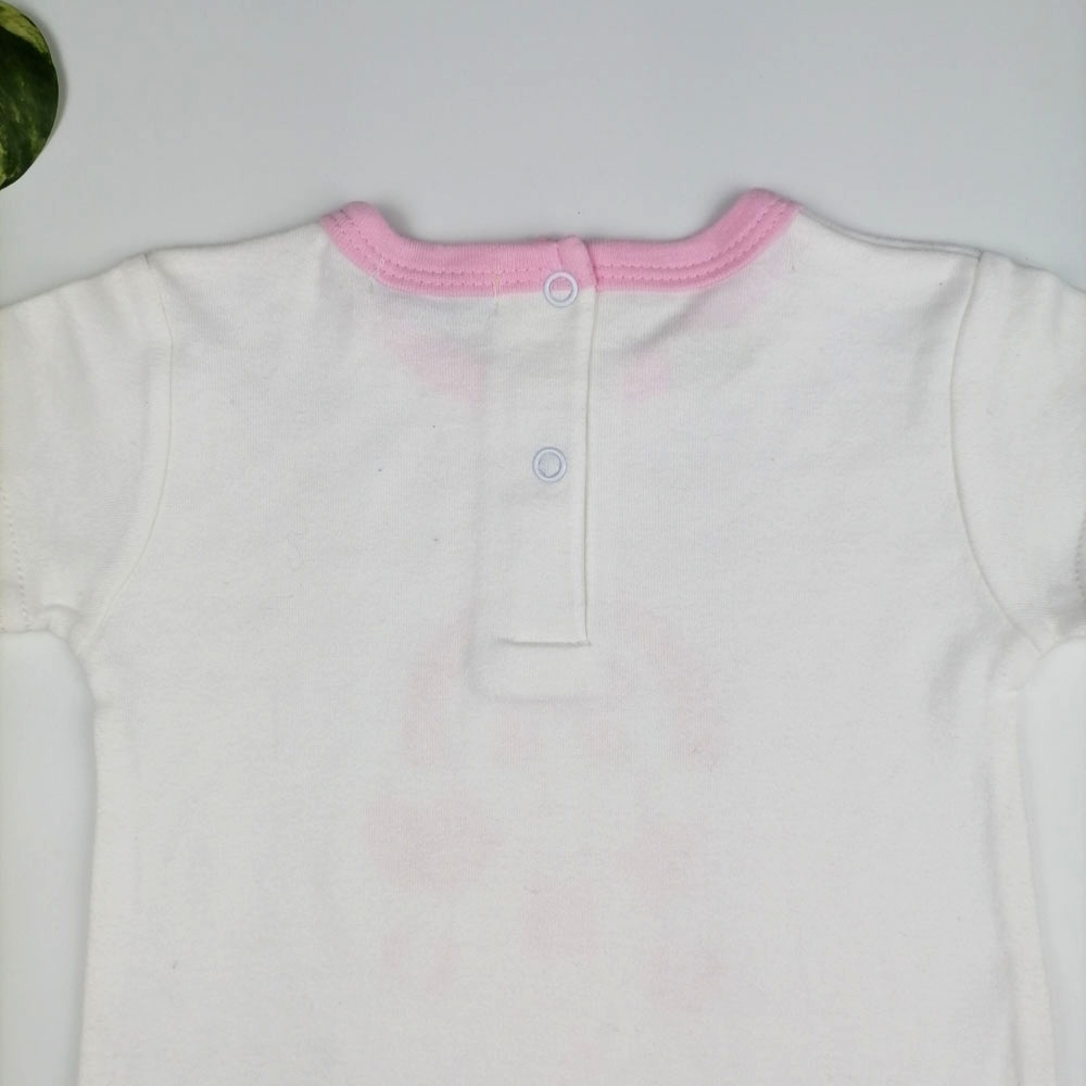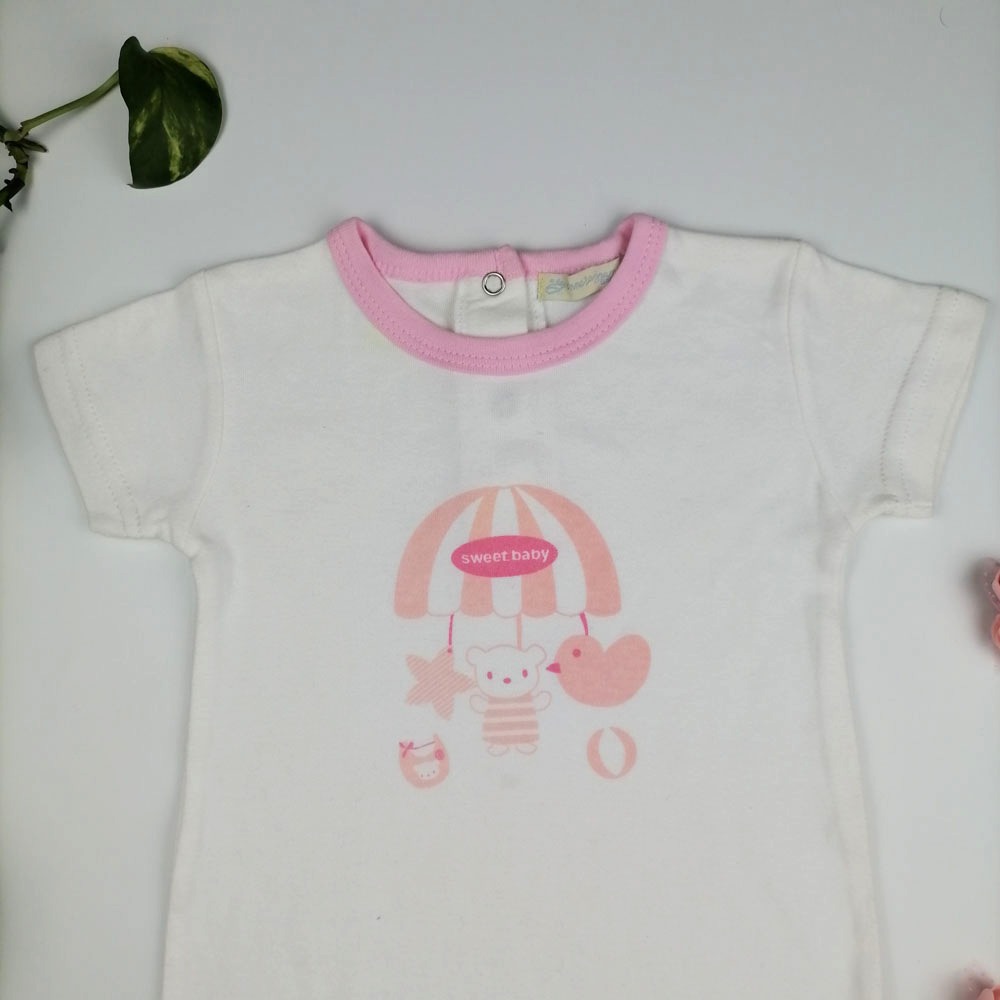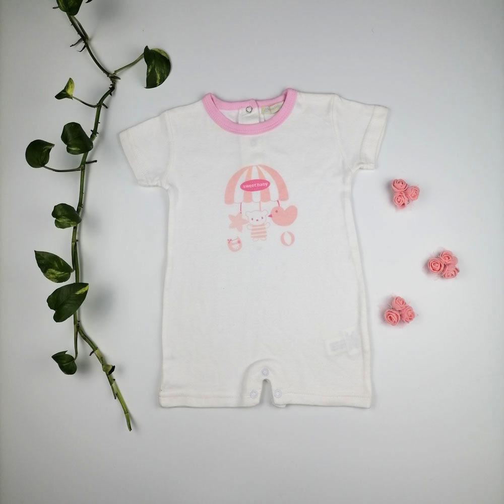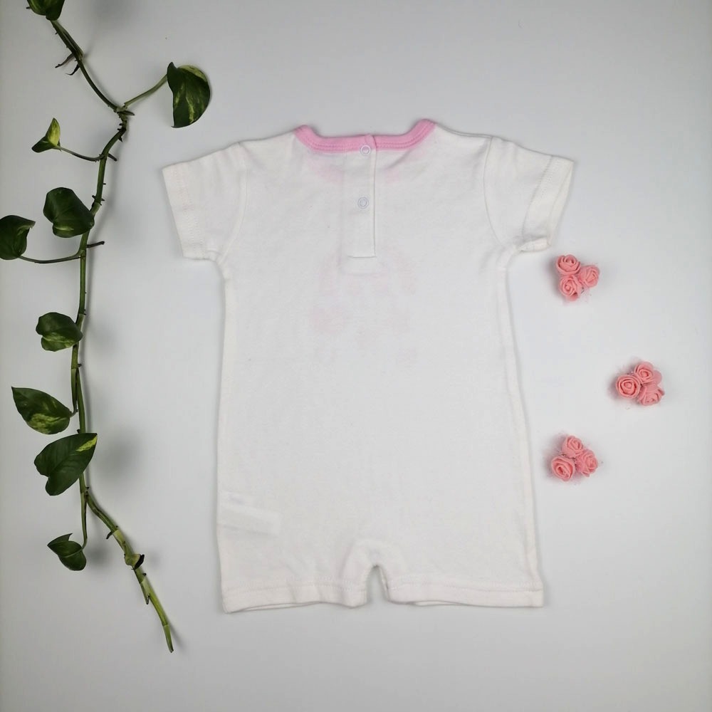 رامپر نوزادی دخترانه آستین کوتاه طرح اردک و خرس سفید رنگ