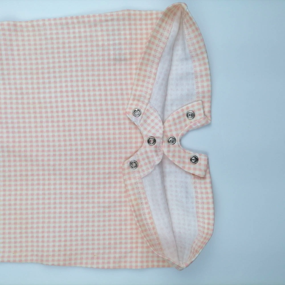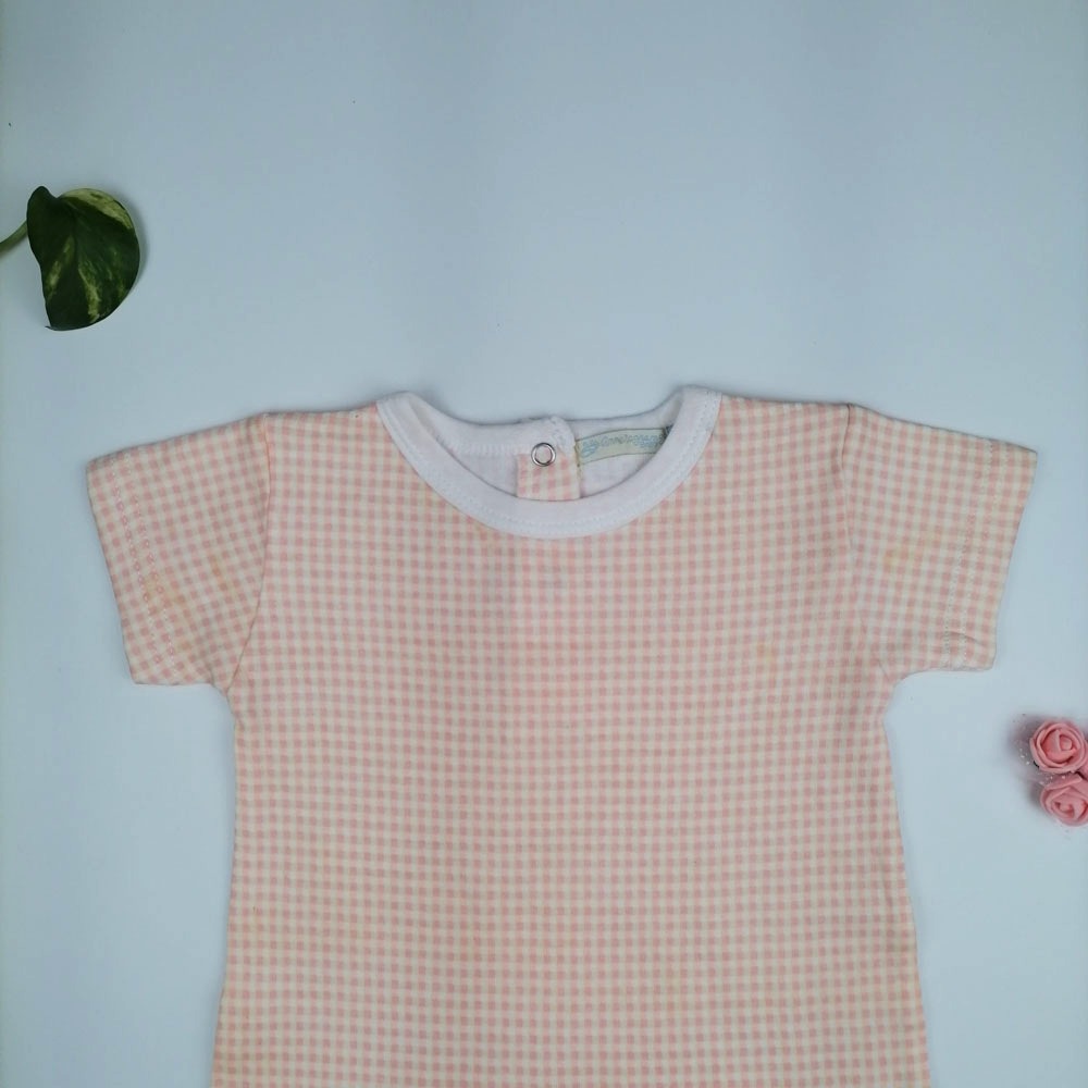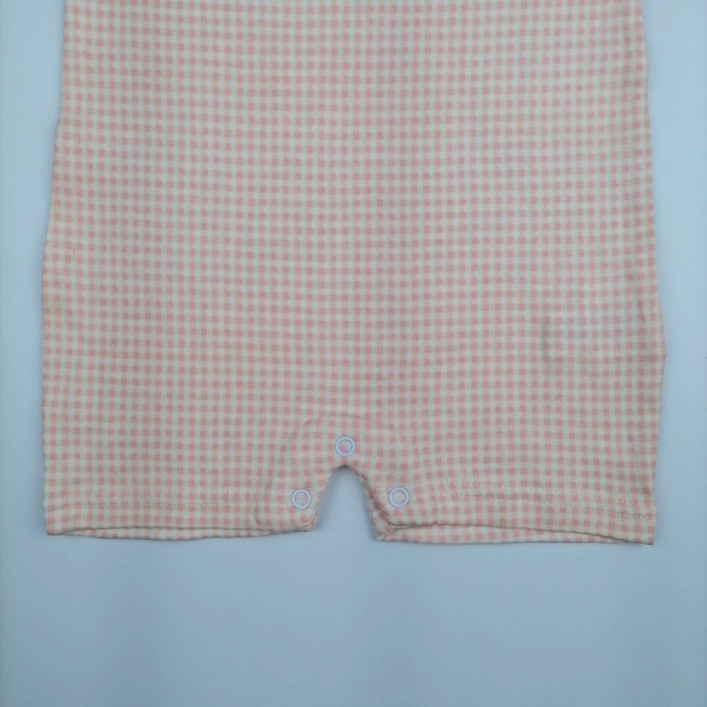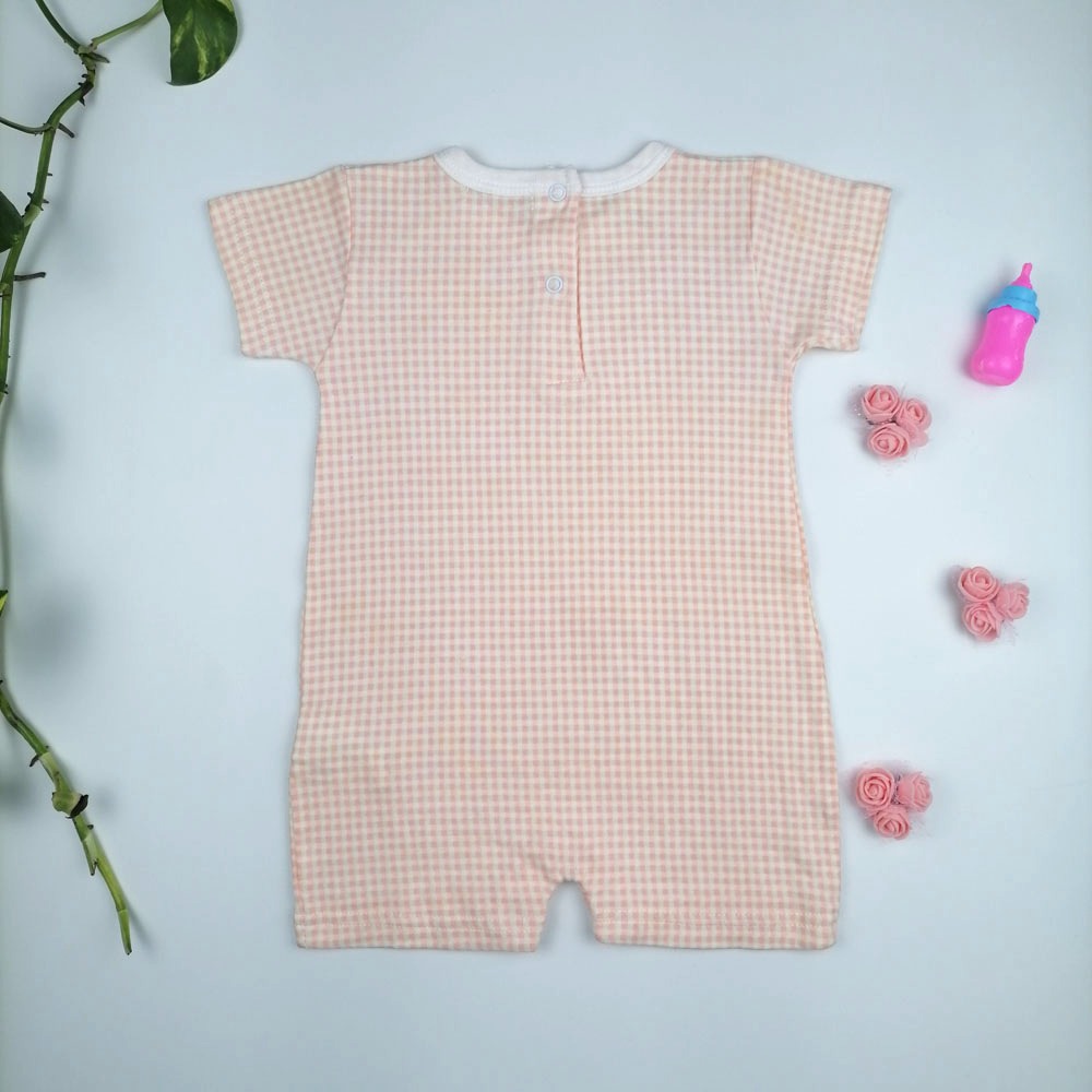 رامپر نوزادی دخترانه آستین کوتاه طرح چهارخونه گلبهی رنگ
