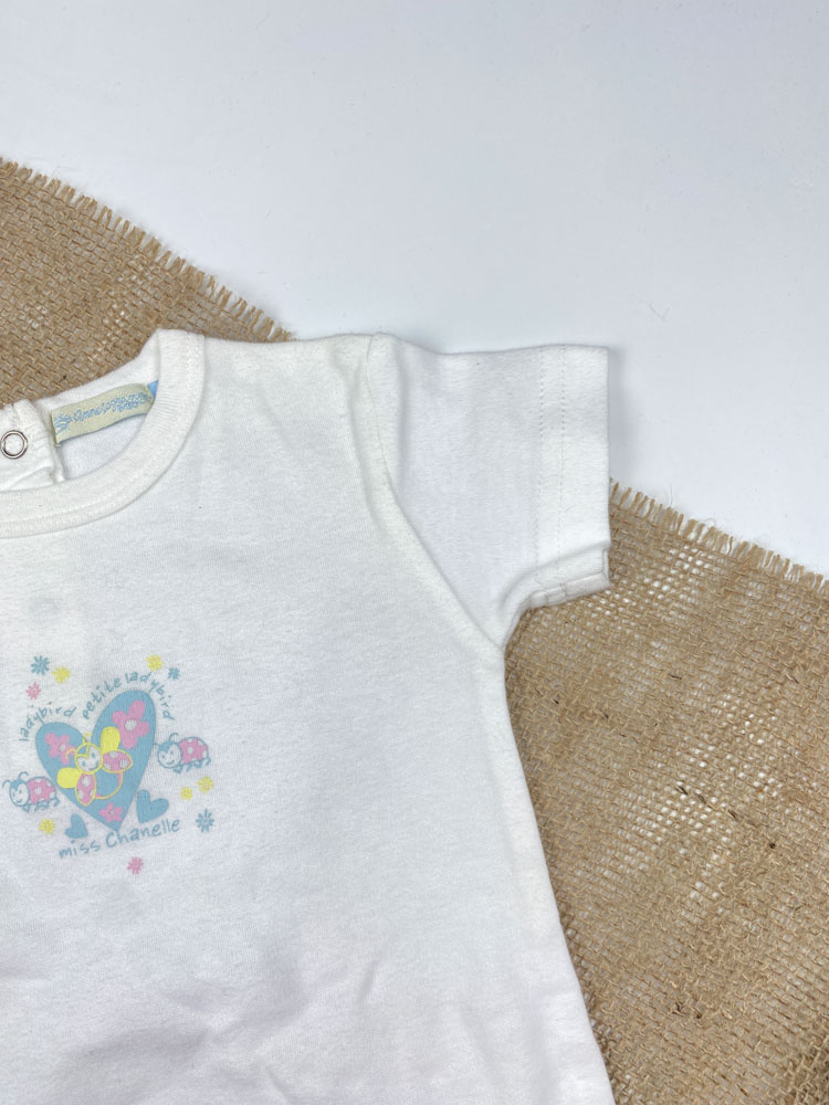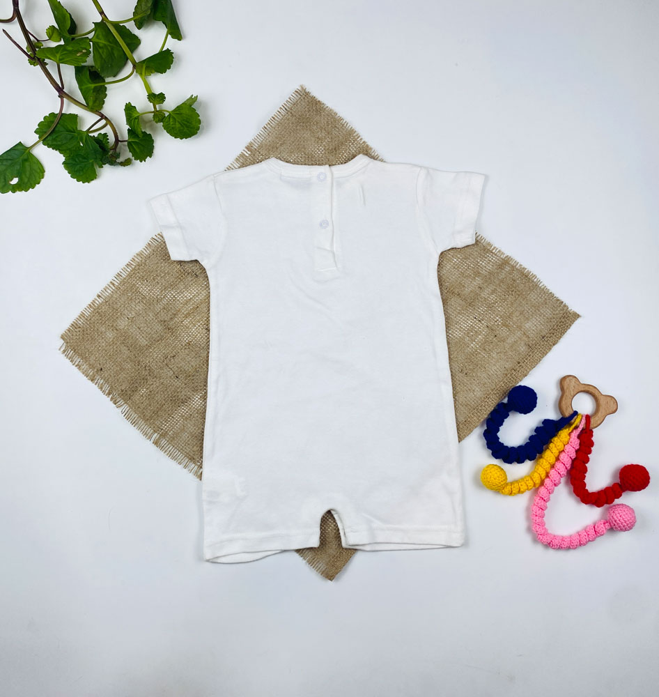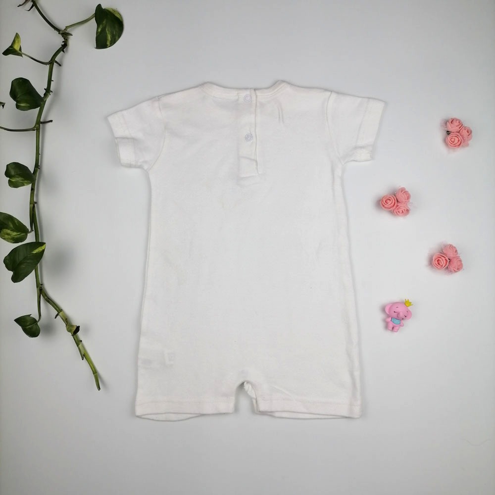 رامپر نوزادی دخترانه آستین کوتاه طرح گل و قلب سفید رنگ