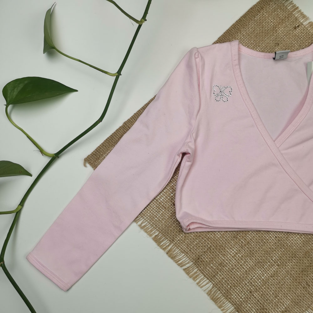 ست بادی، کت و تل باله نوزادی دخترانه آستین کوتاه برند Tu طرح پروانه و پاپیون صورتی کمرنگ – 5 سال