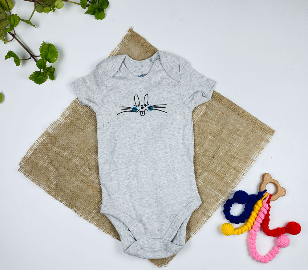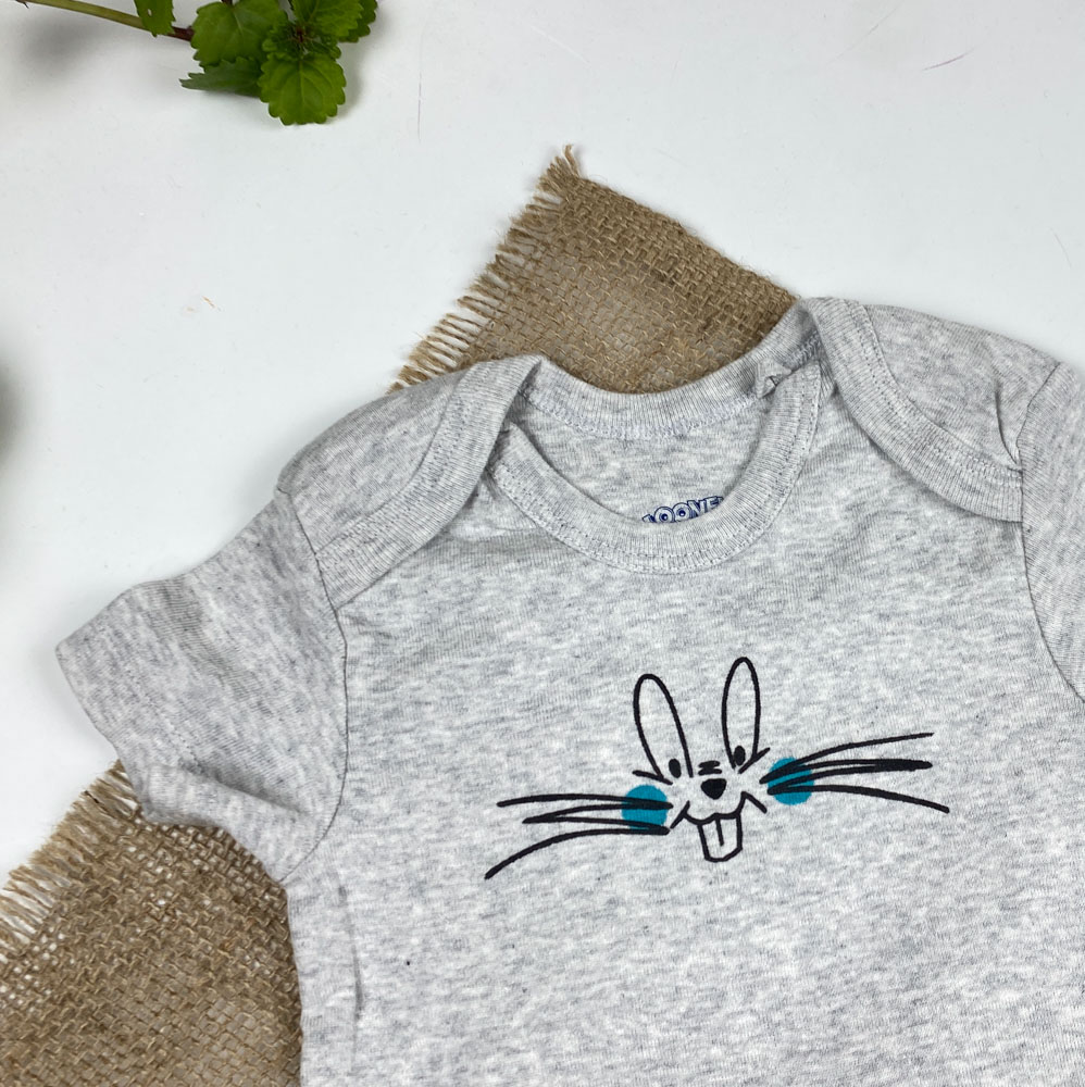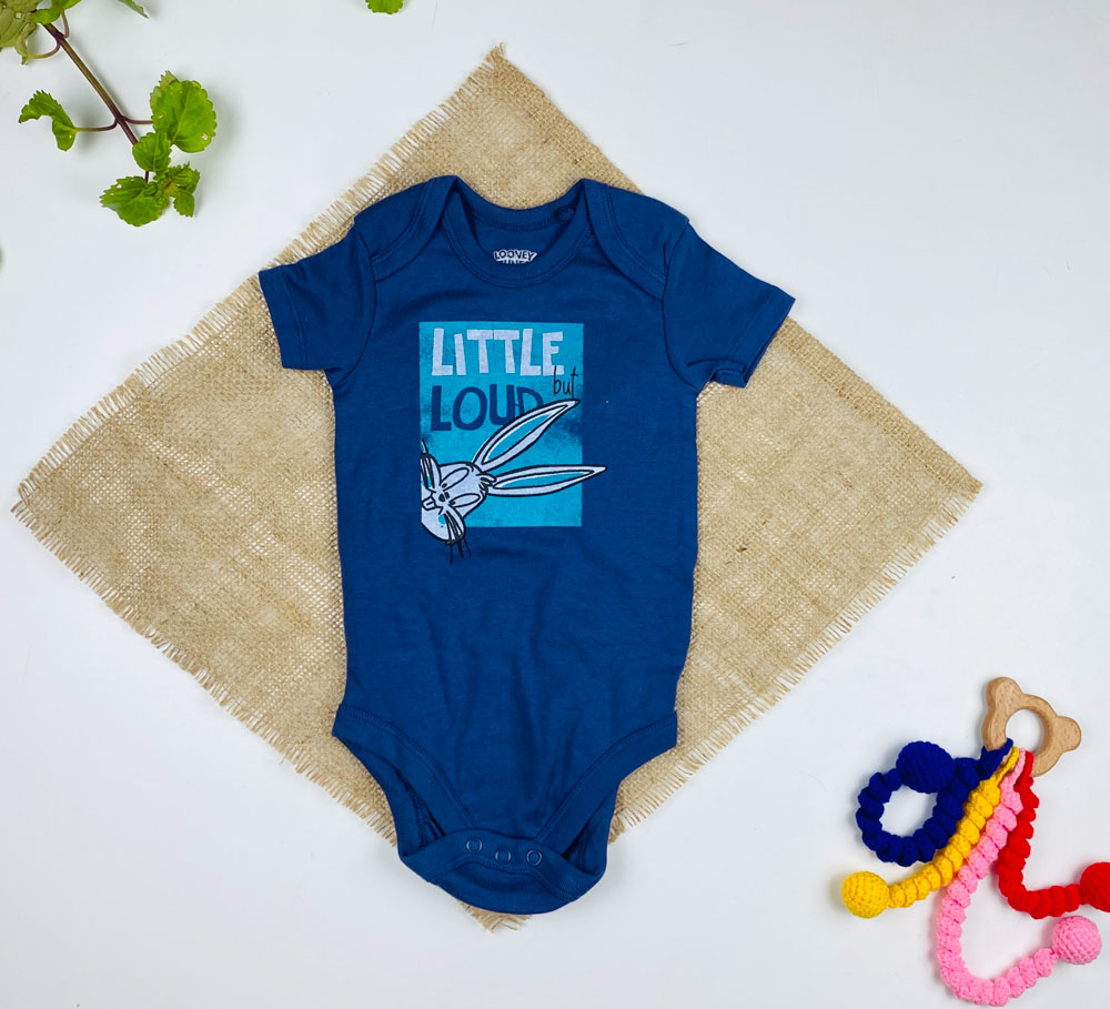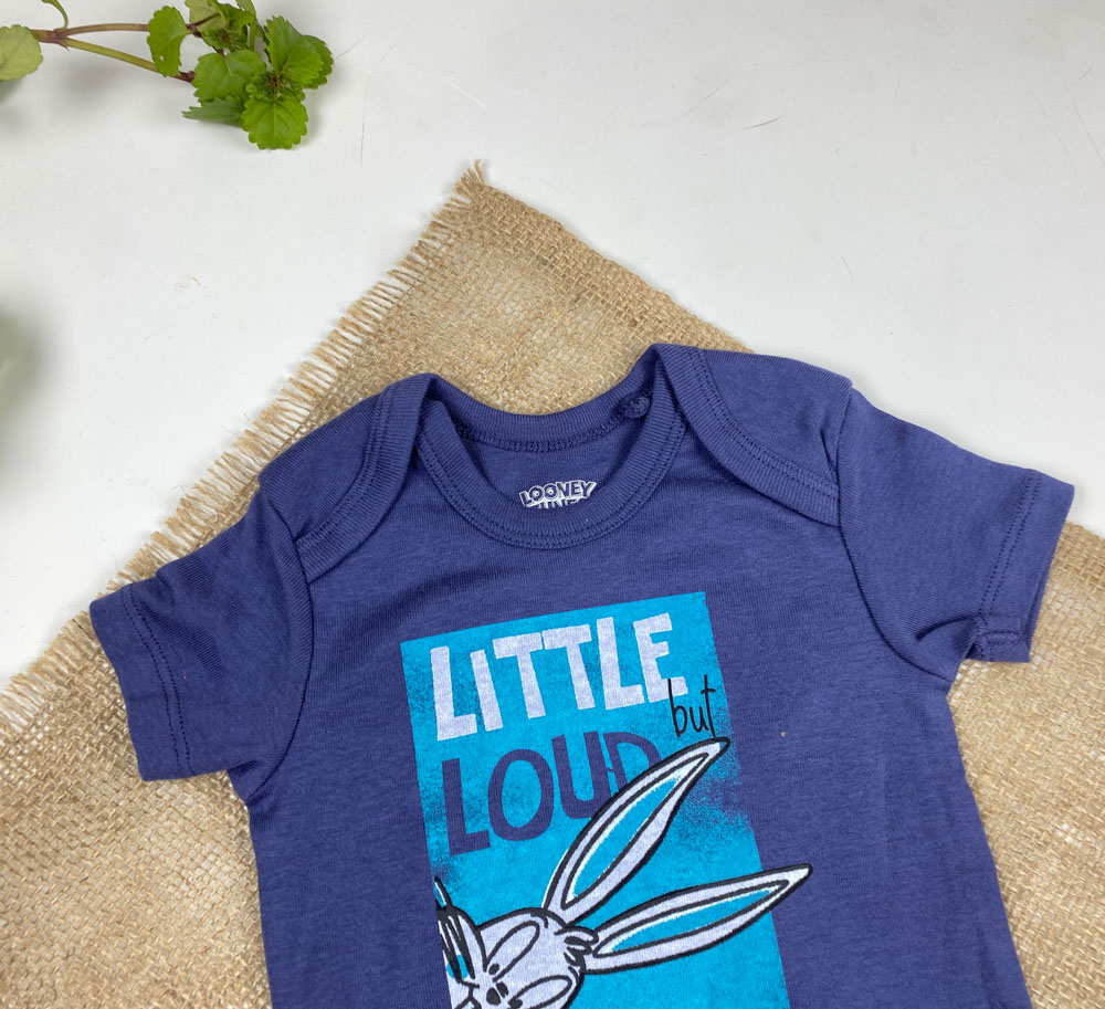 ست بادی نوزادی آستین کوتاه برند لوپیلو طرح خرگوش بادی یقه گرد سرمه ای رنگ – 6 تا 12 ماه