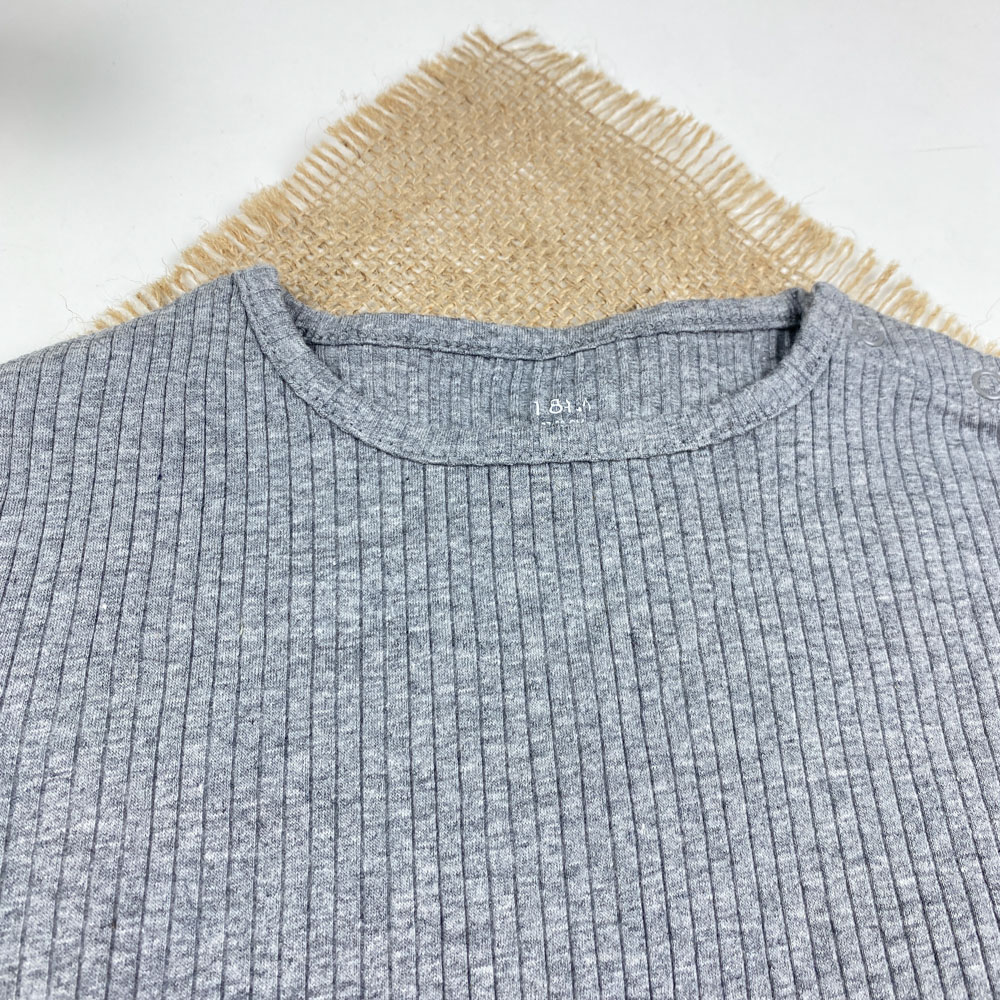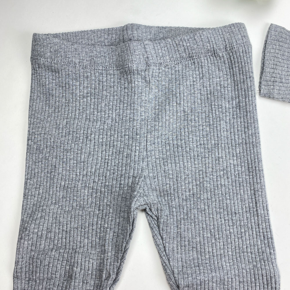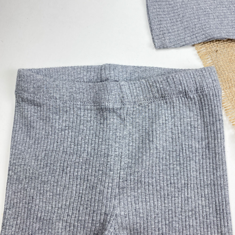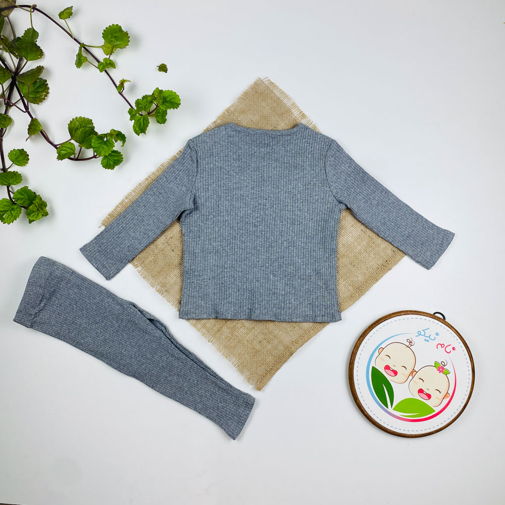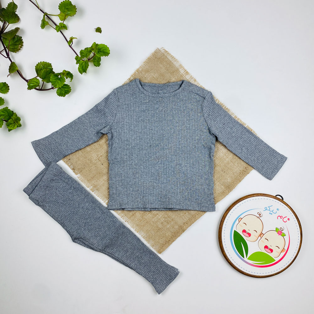 ست بلوز و شلوار نوزادی آستین بلند برند کیابی طرح کبریتی طوسی رنگ