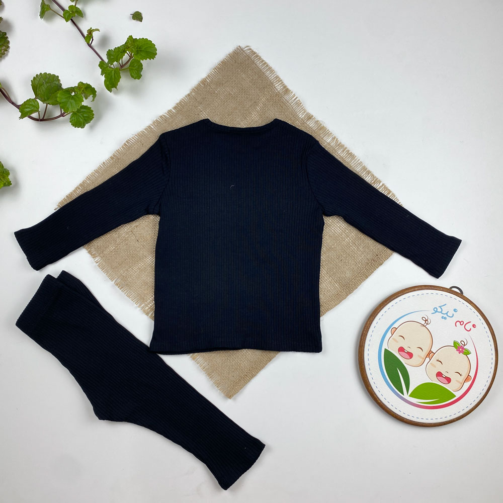 ست بلوز و شلوار نوزادی آستین بلند برند کیابی طرح کبریتی مشکی رنگ