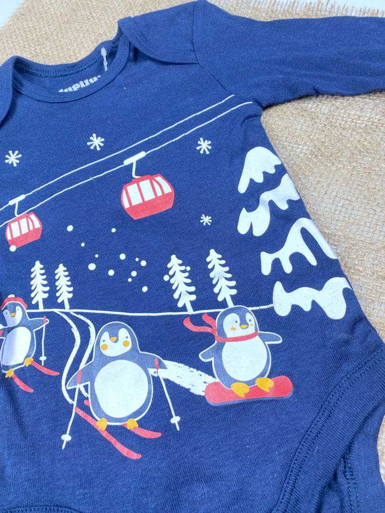 ست دو عددی بادی نوزادی آستین بلند برند لوپیلو طرح خرسی و پنگوئن سرمه ای رنگ