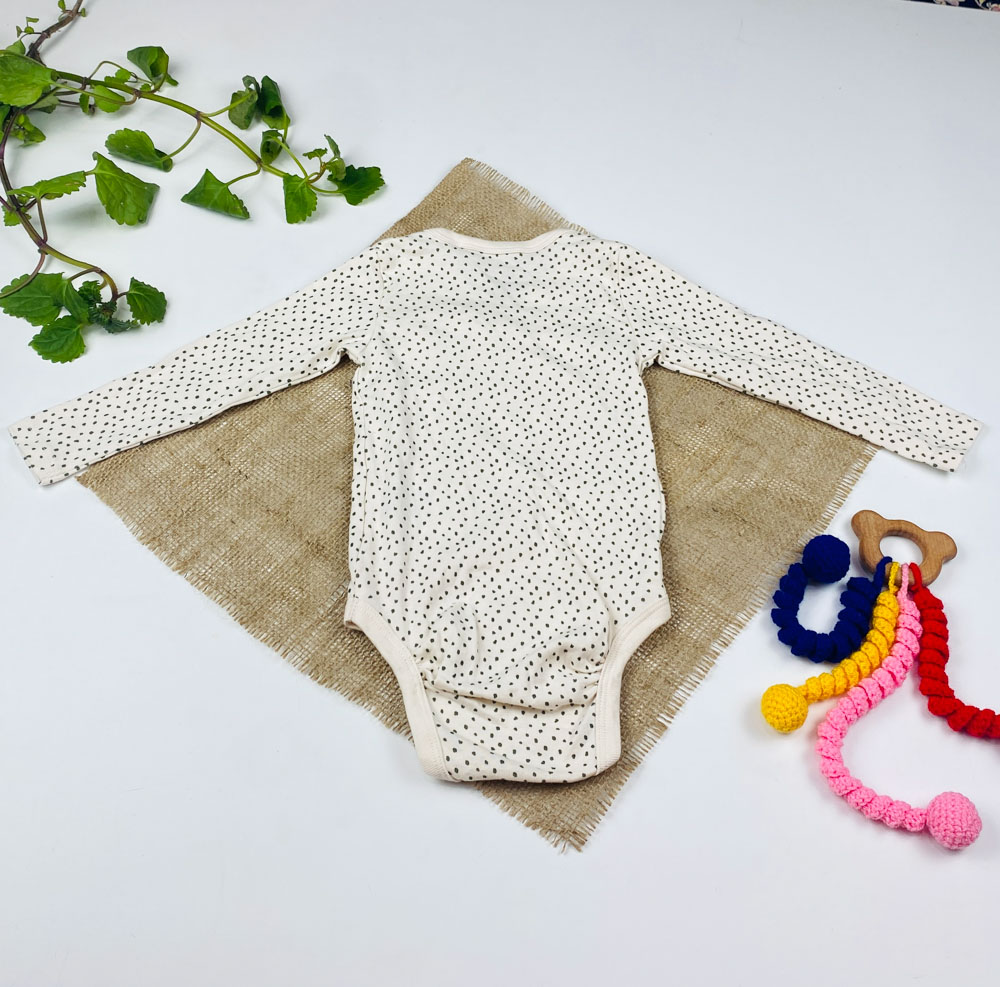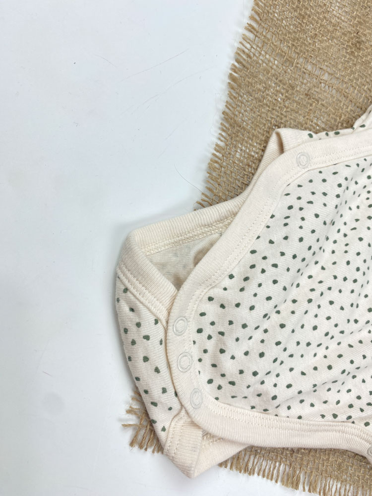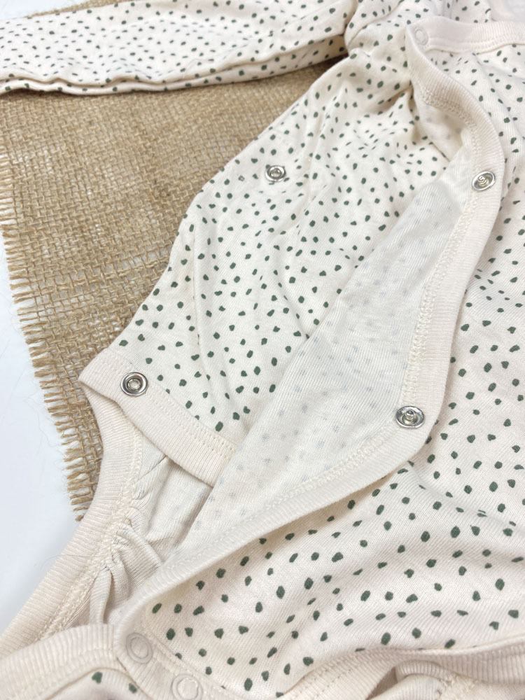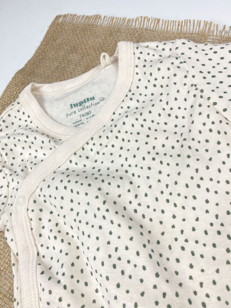 ست دو عددی بادی نوزادی آستین بلند برند لوپیلو طرح خال خالی چپ و راستی سبز رنگ – 6 تا 12 ماه