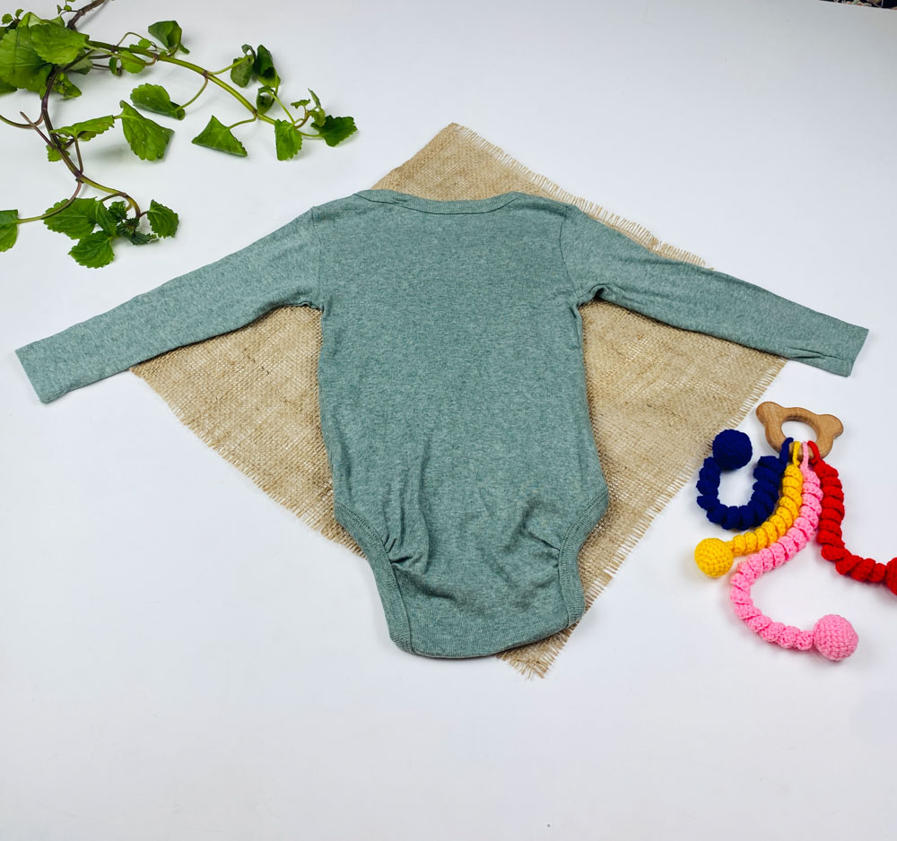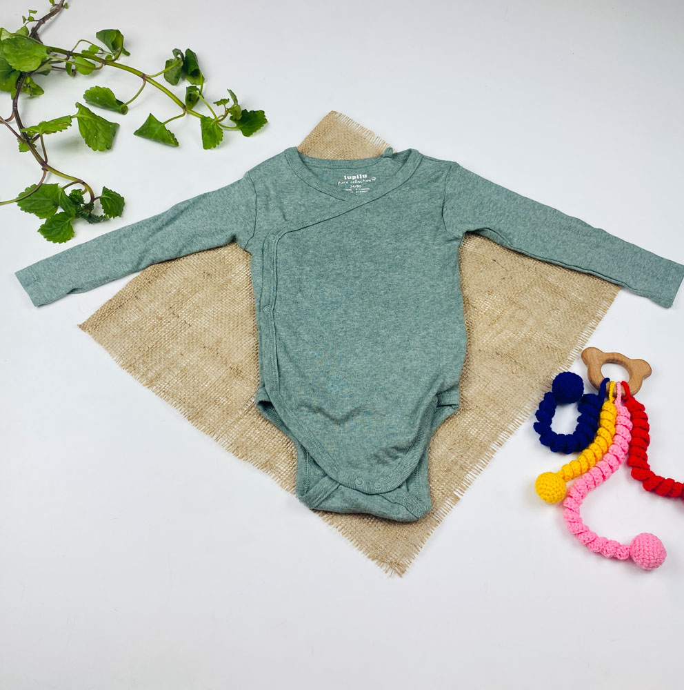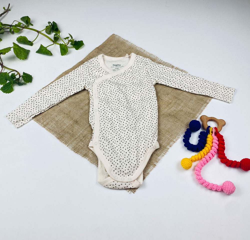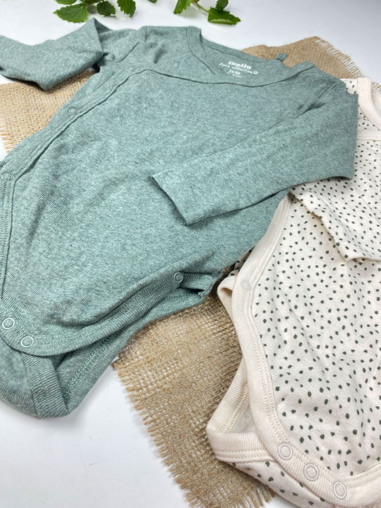 ست دو عددی بادی نوزادی آستین بلند برند لوپیلو طرح خال خالی چپ و راستی سبز رنگ – 6 تا 12 ماه