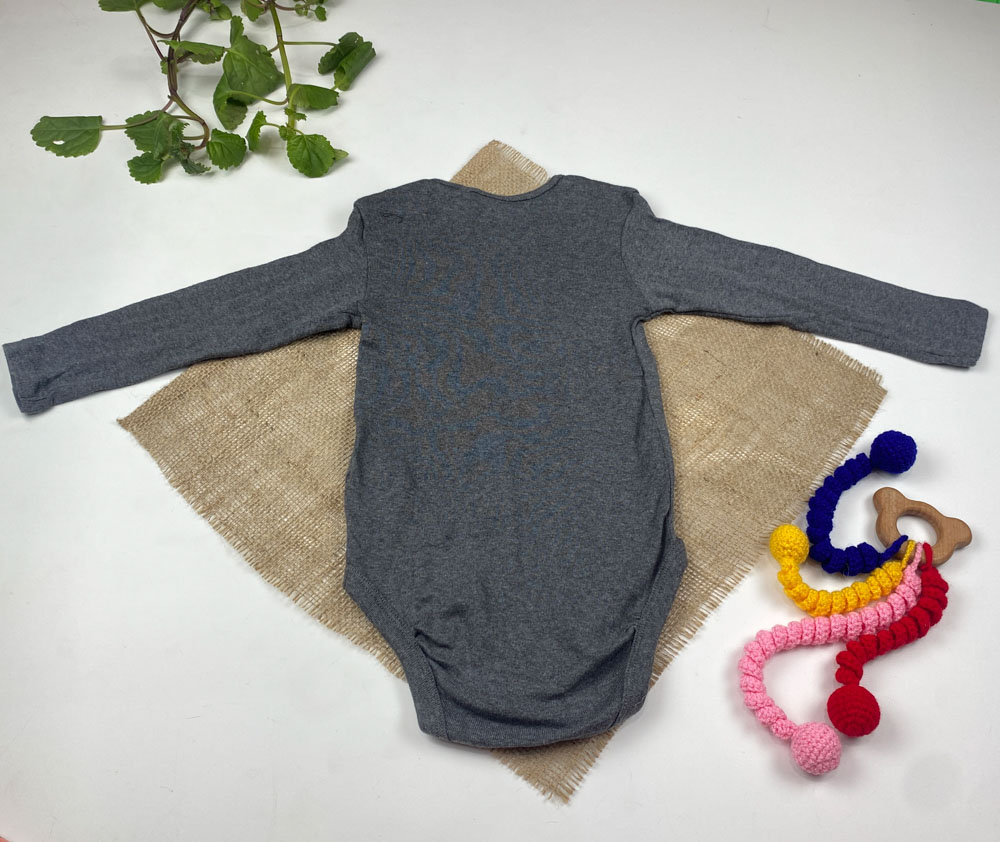 ایراد دار _ بادی پسرانه آستین بلند طرح نوشته فارسی حسین عزیزم یقه گرد جلو بسته نوک مدادی رنگ – 2 سال