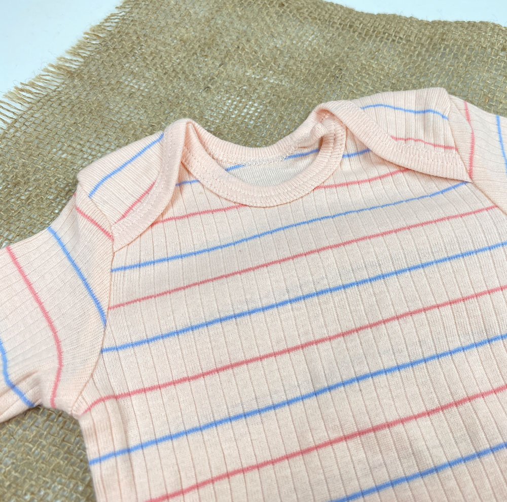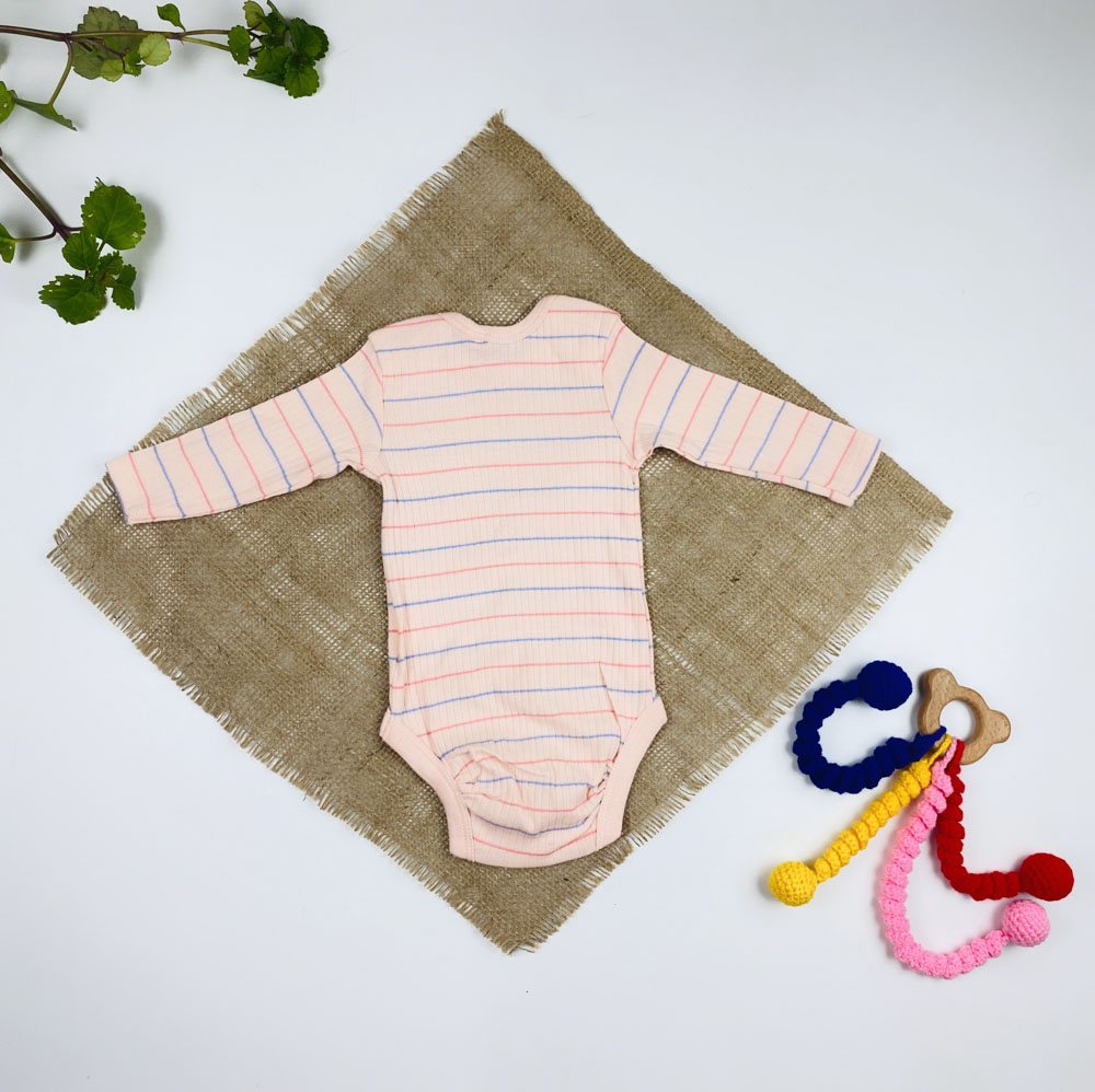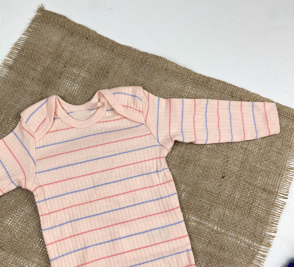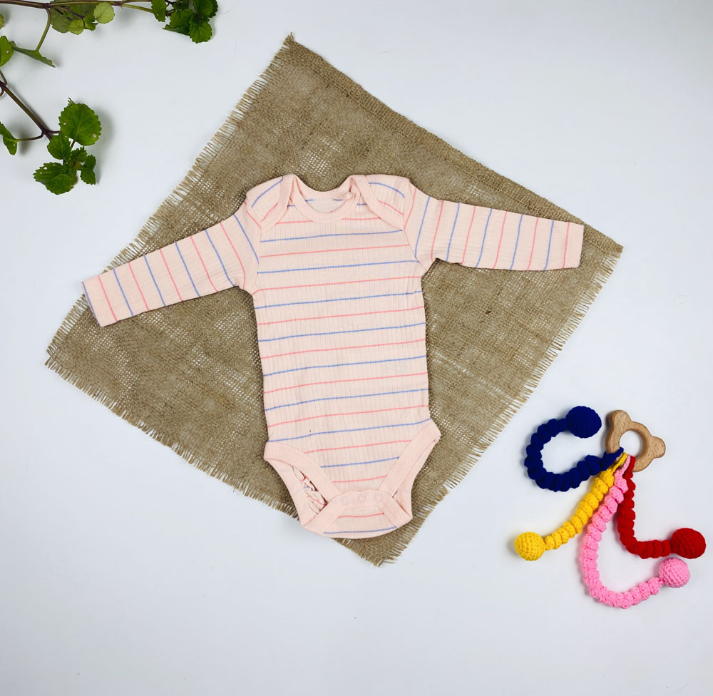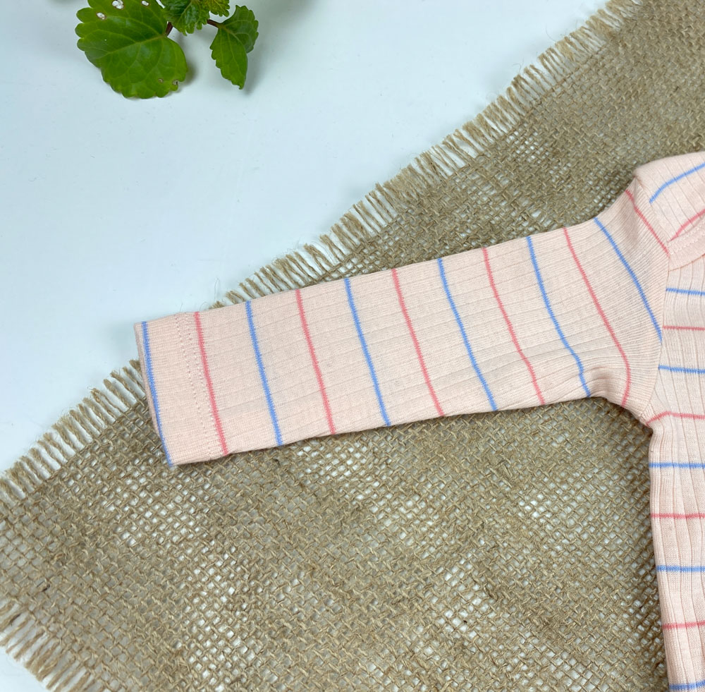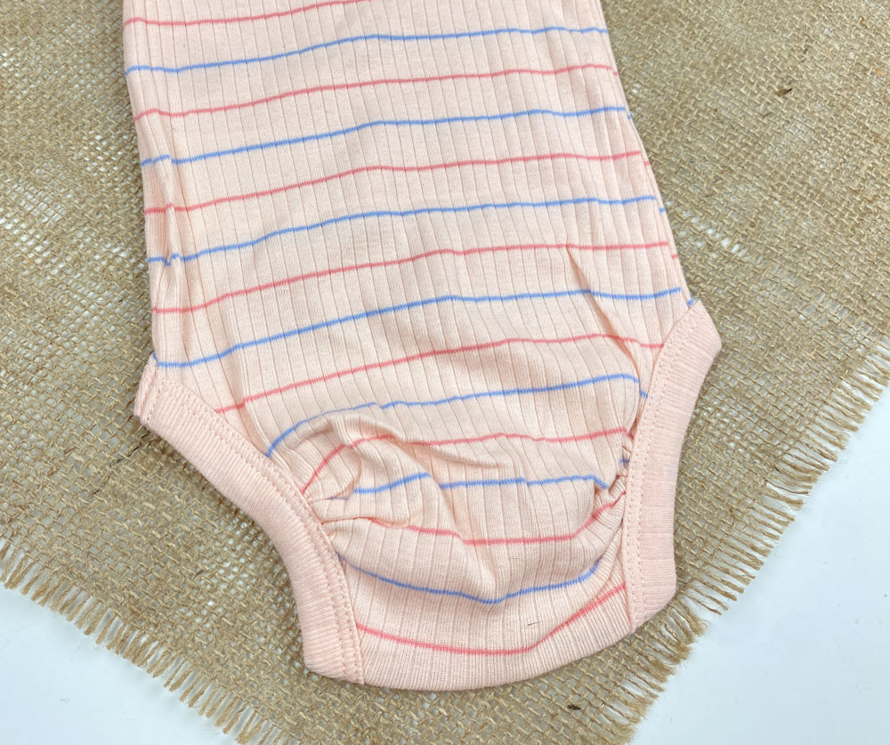 ست دو عددی بادی نوزادی دخترانه آستین بلند برند لوپیلو طرح راه راه جلو بسته گلبهی رنگ – 0 تا 2 ماه