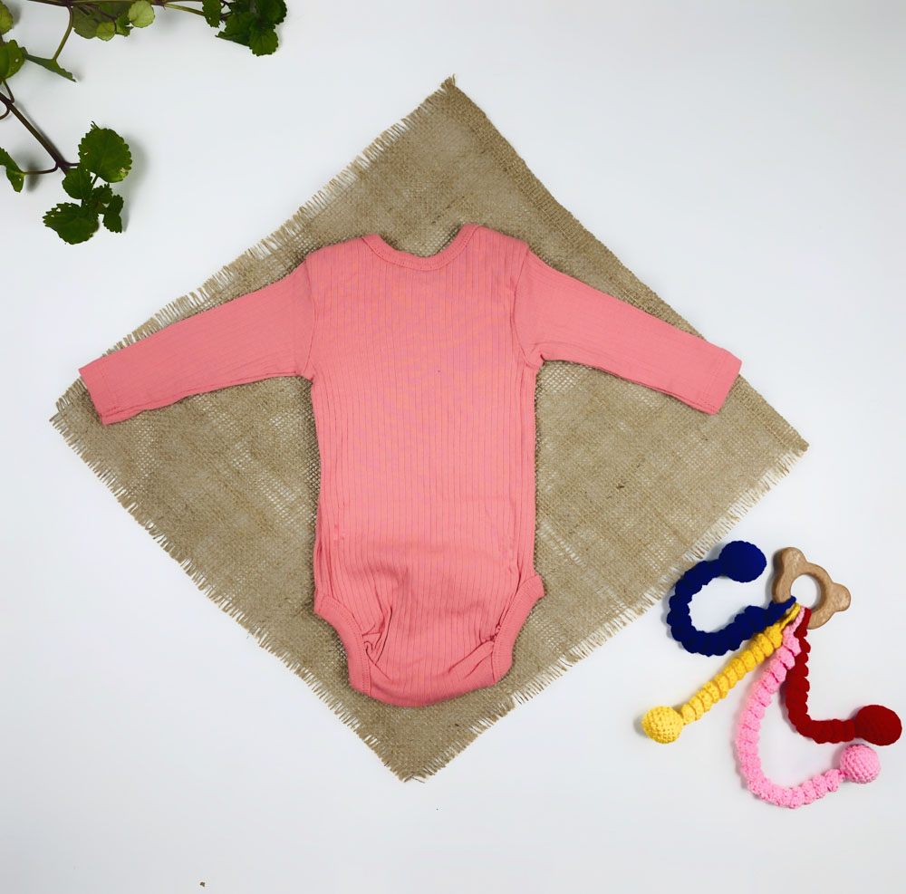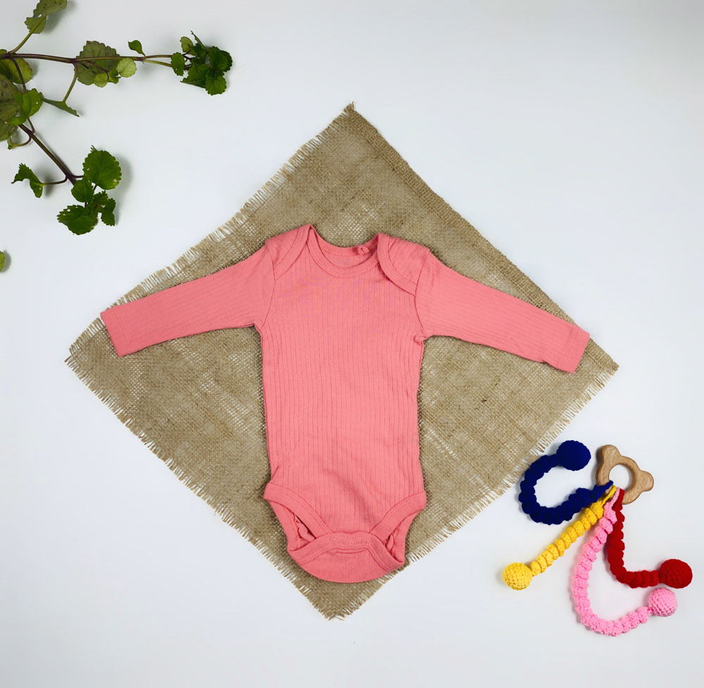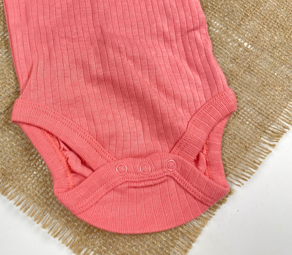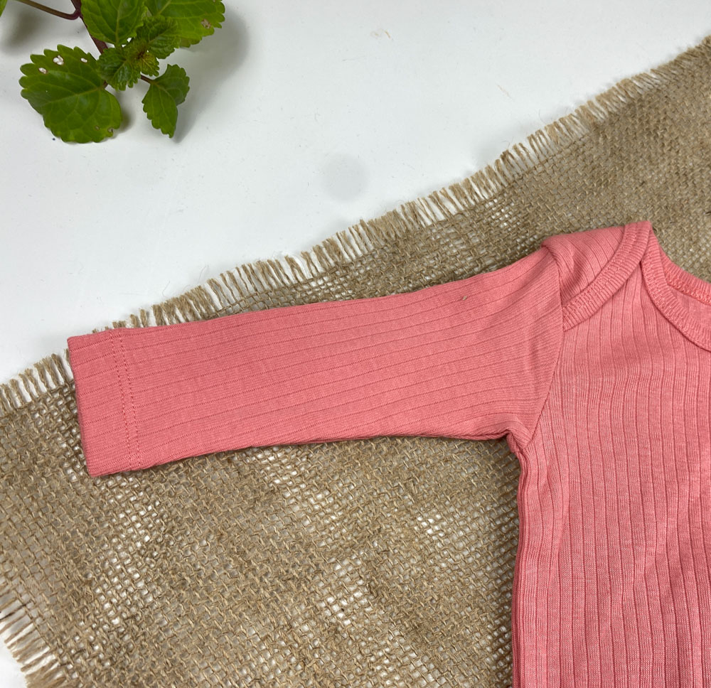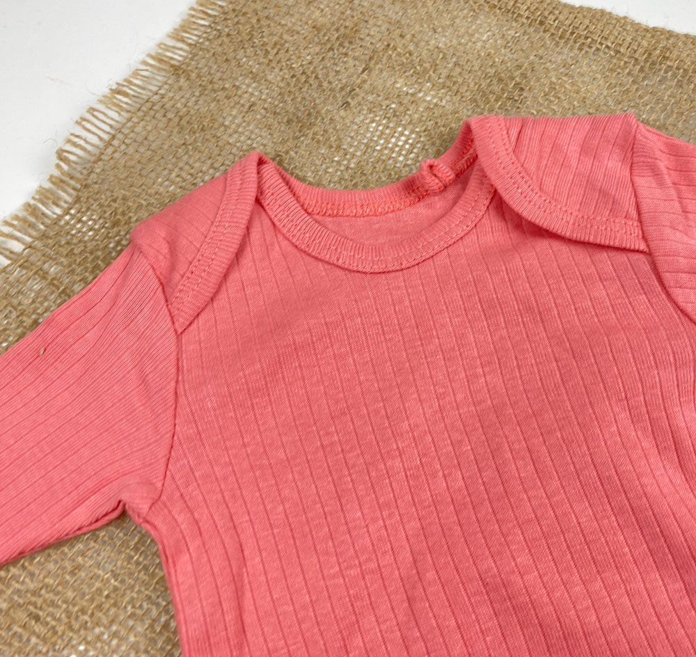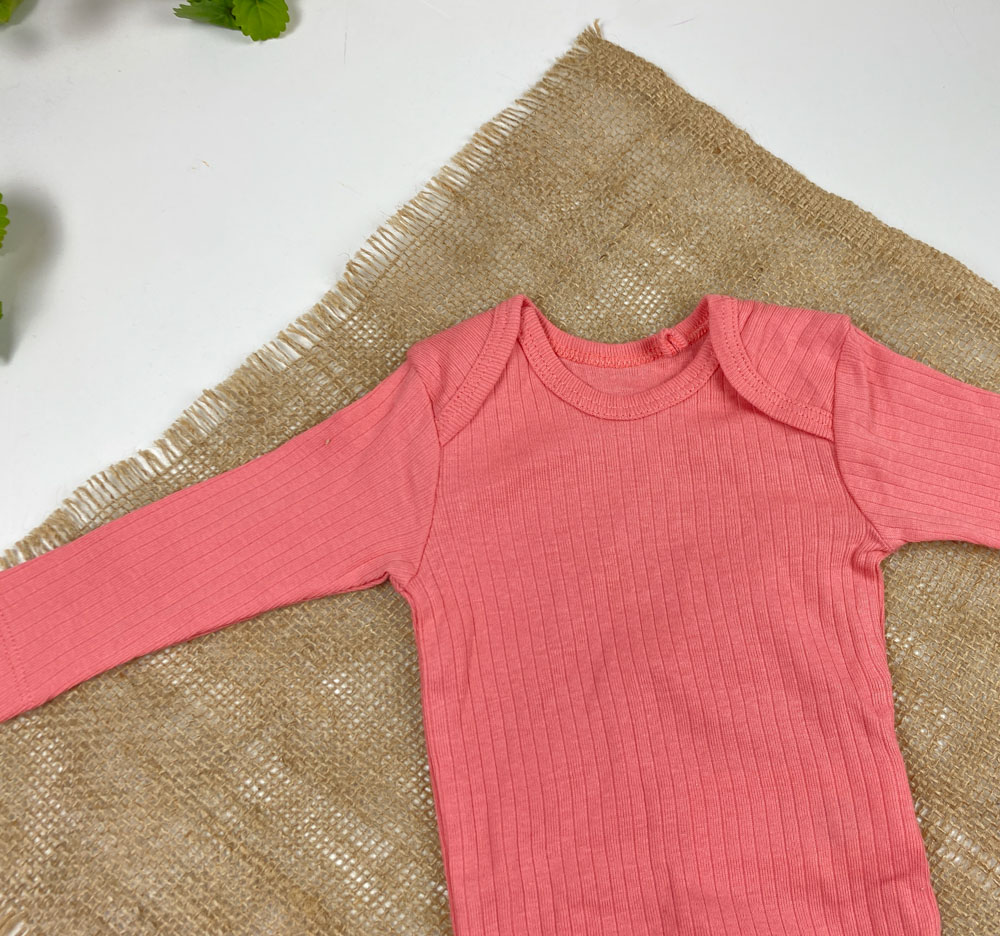 ست دو عددی بادی نوزادی دخترانه آستین بلند برند لوپیلو طرح راه راه جلو بسته گلبهی رنگ – 0 تا 2 ماه