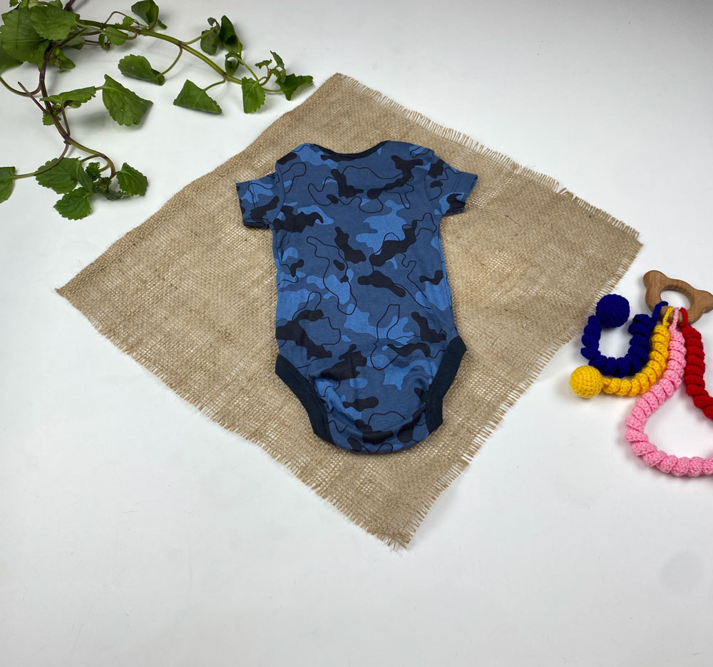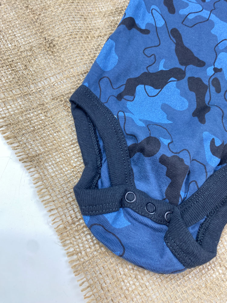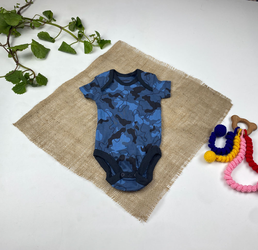 ست دو عددی بادی نوزادی پسرانه آستین کوتاه برند لوپیلو طرح ارتشی آبی رنگ – 0 تا 2 ماه