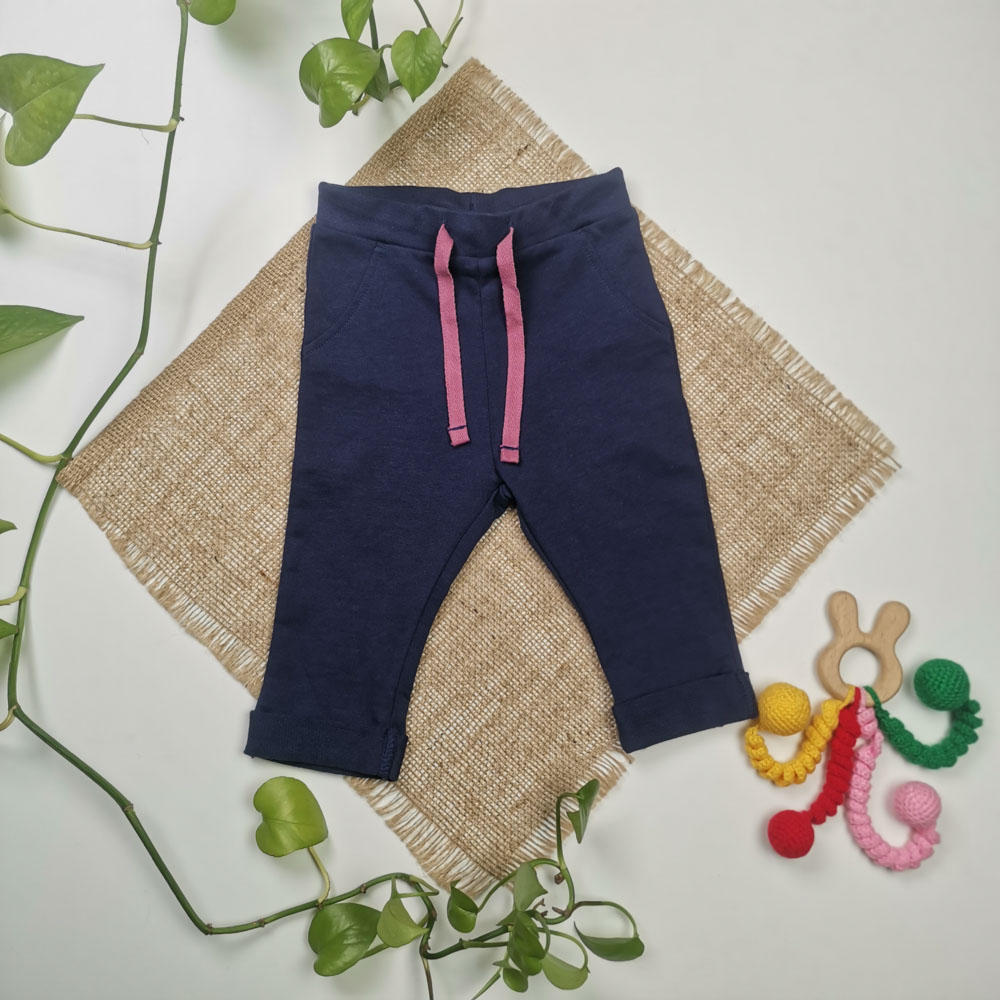 ست دو عددی شلوار دورس نوزادی برند لوپیلو طرح راه راه کمربند دار سرمه ای رنگ – 2 تا 6 ماه