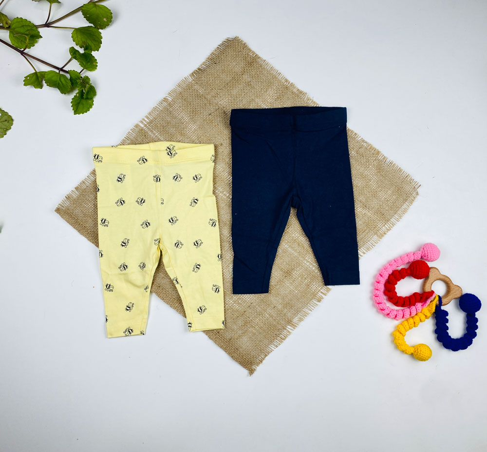 ست دو عددی شلوار نوزادی برند لوپیلو طرح زنبور لیمویی رنگ