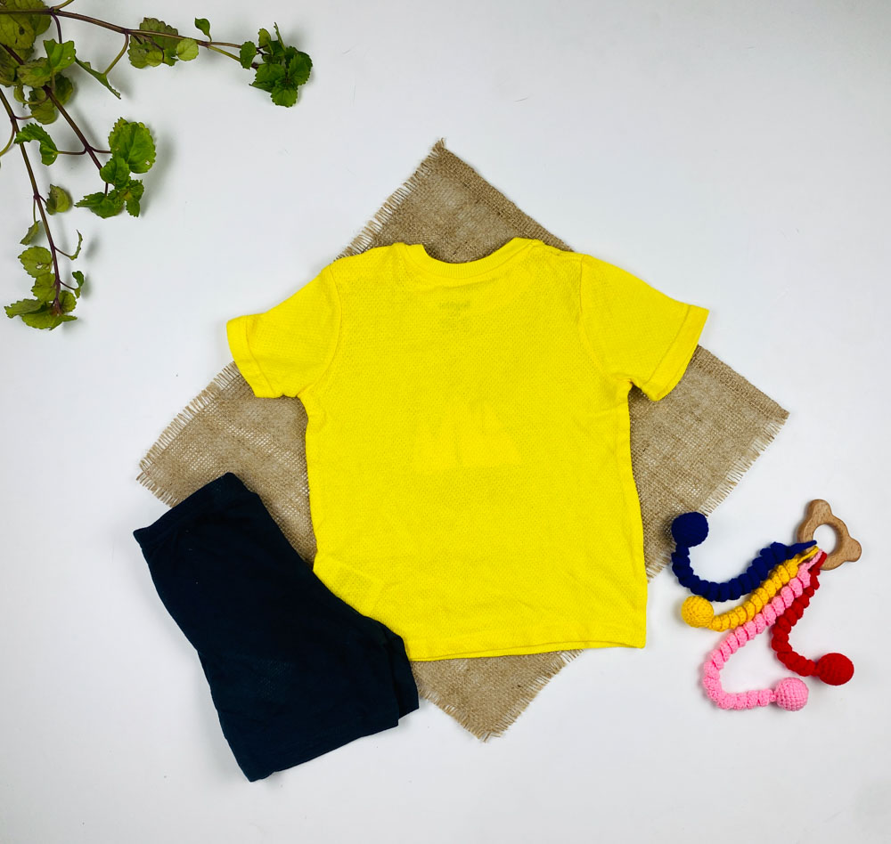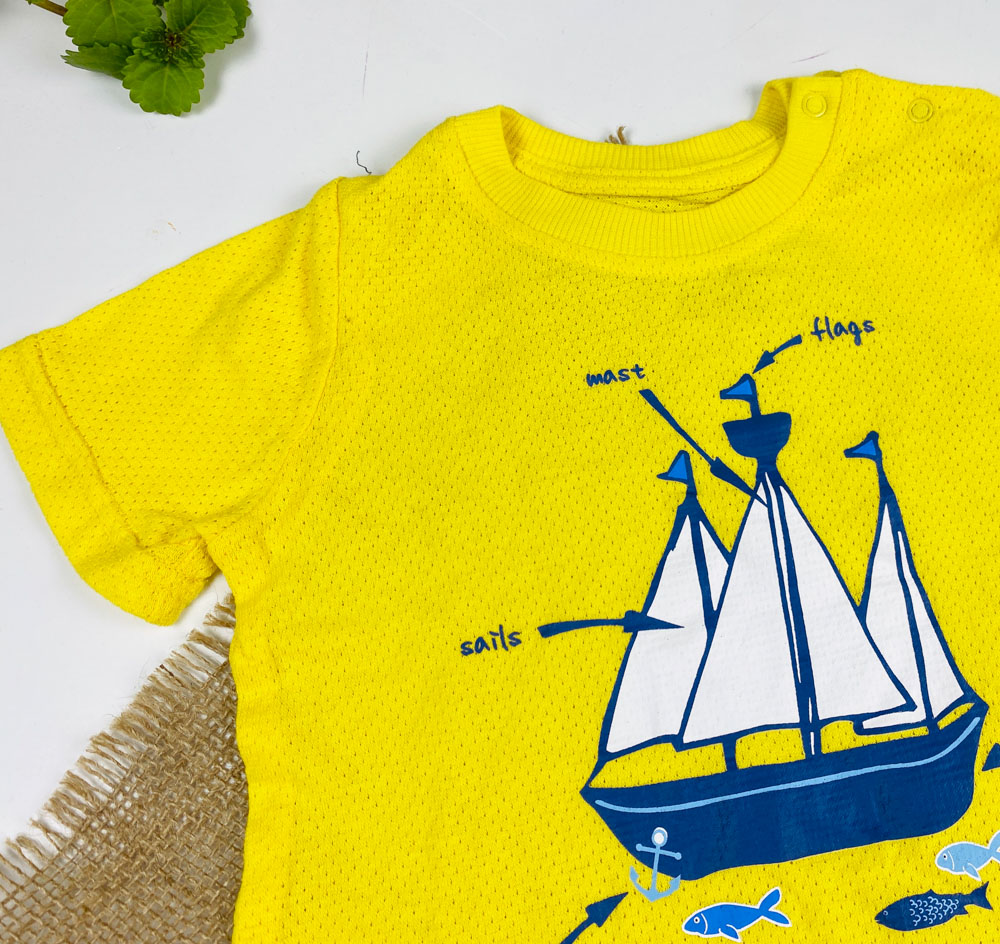 ست دو عددی نوزادی آستین کوتاه برند لوپیلو طرح قایق تیشرت دو دکمه ای زرد رنگ – 12 تا 24 ماه