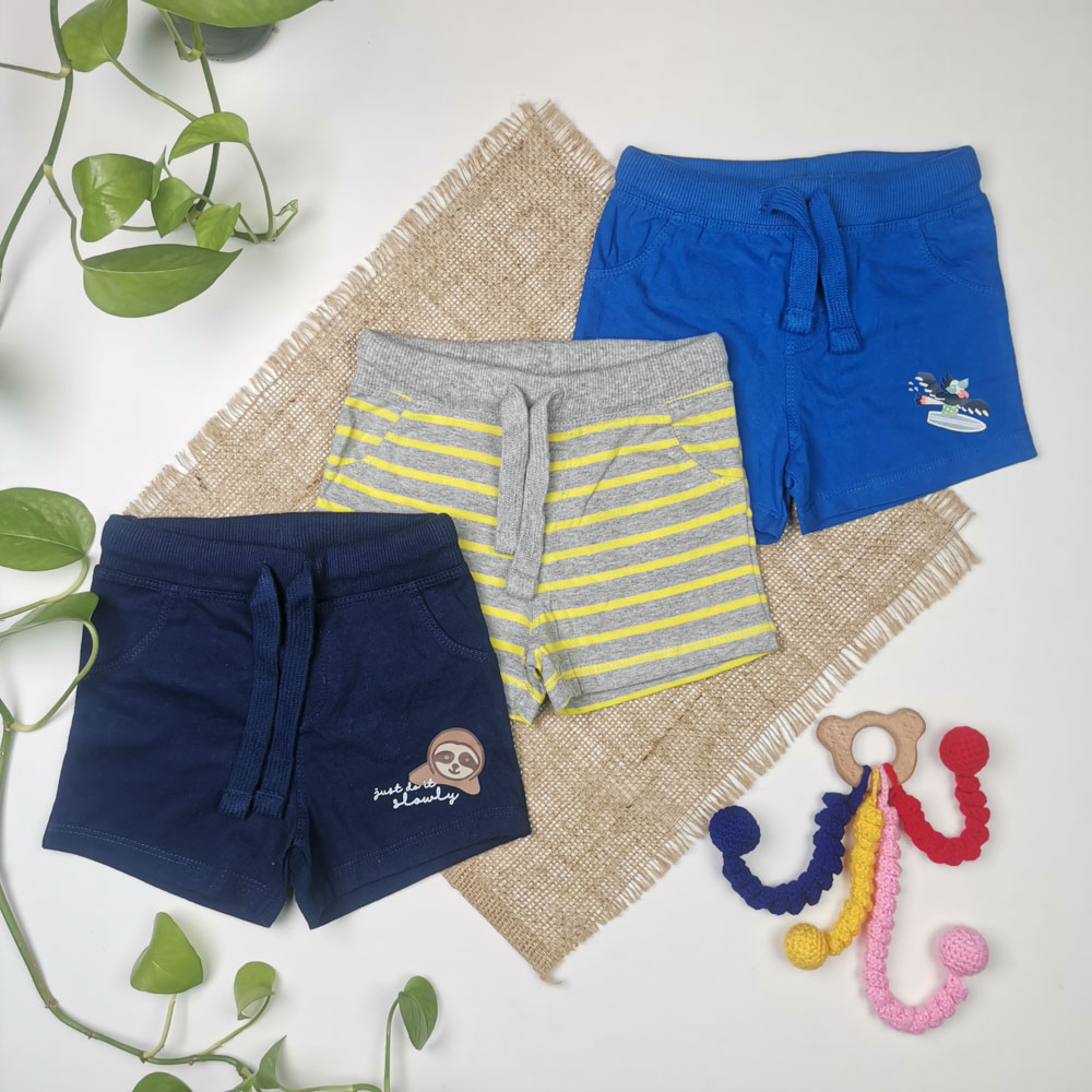 ست سه عددی شلوارک نوزادی پسرانه برند لوپیلو طرح کمربند دار جیب نما آبی رنگ – 6 تا 12 ماه