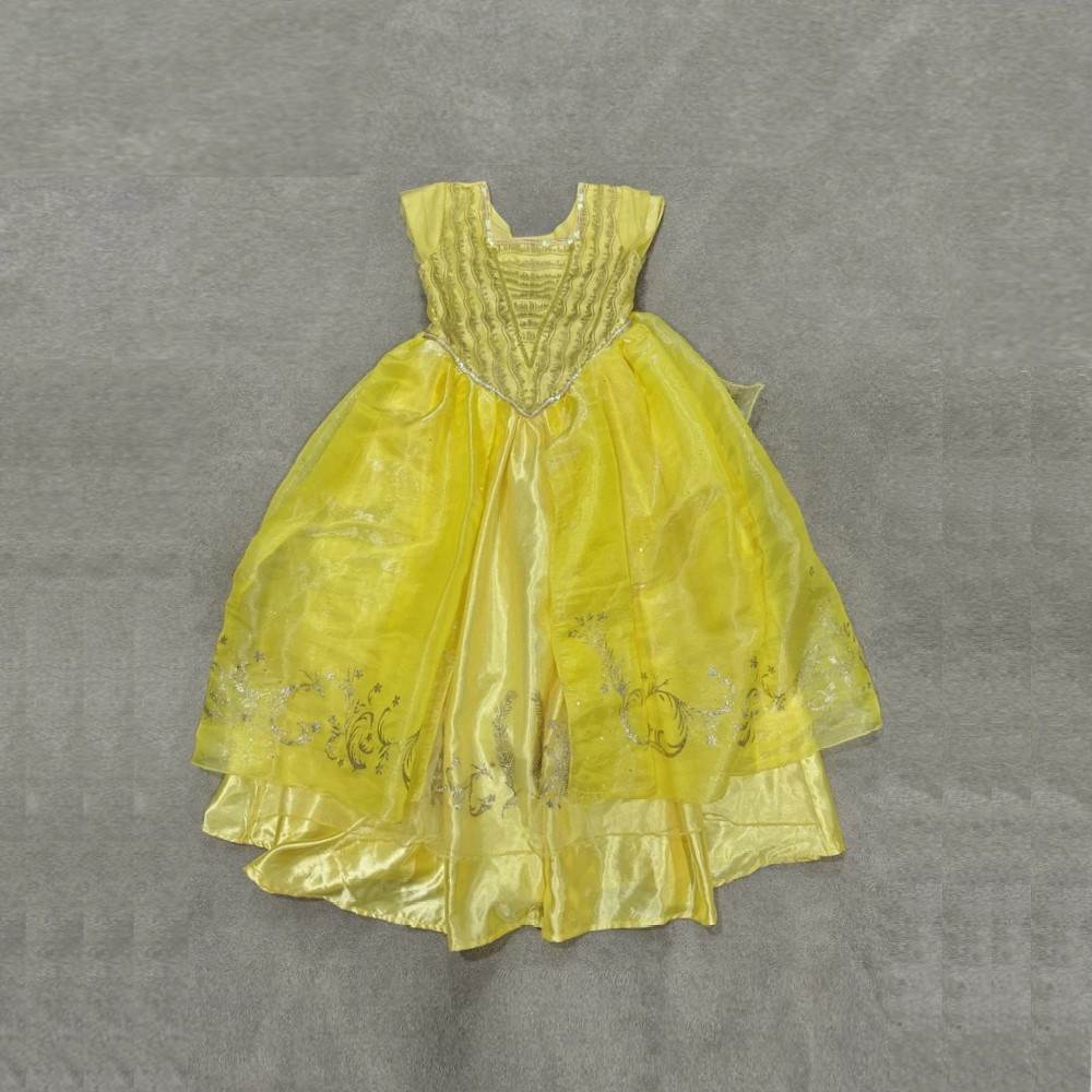 ست پیراهن دامنی و تاج سر نوزادی دخترانه آستین کوتاه برند Tu طرح پرنسسی پولکی زرد رنگ – 5-6 سال