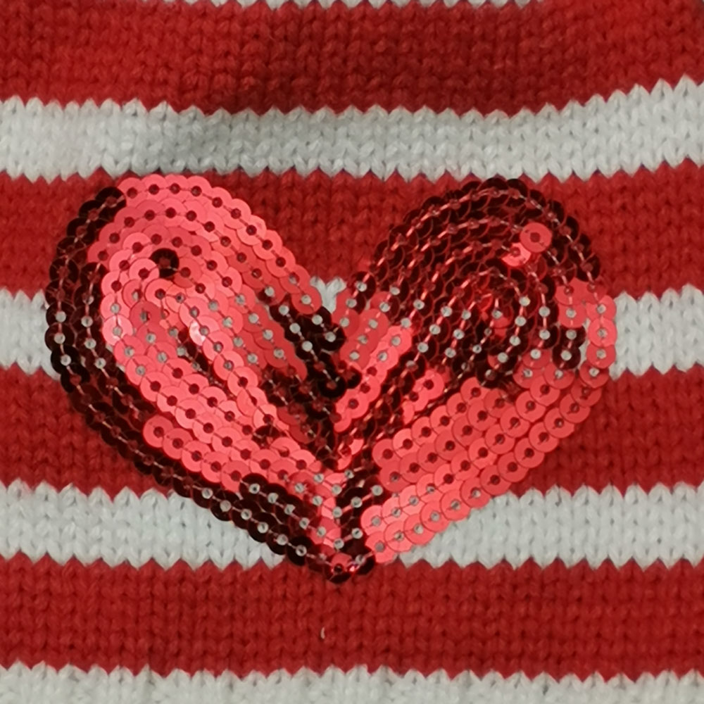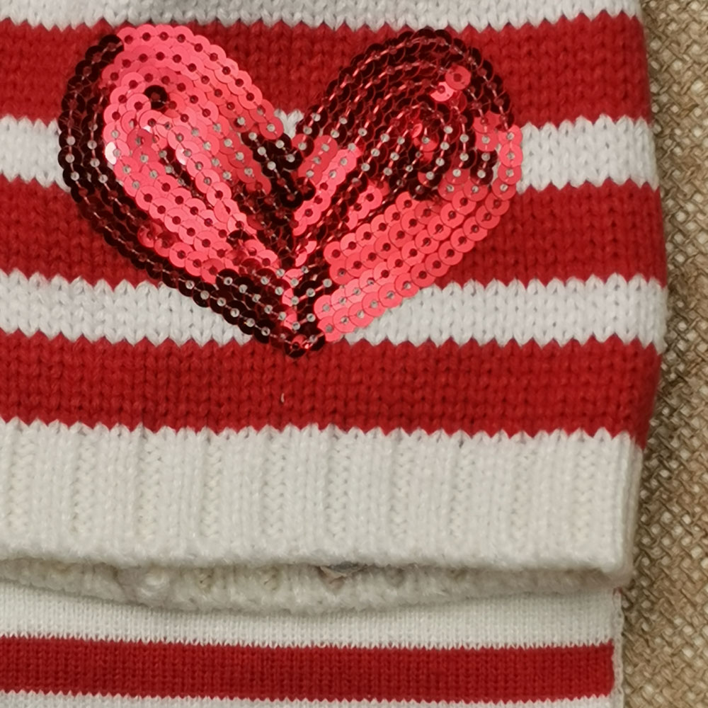 ست کلاه شالگردن بافت نوزادی دخترانه طرح قلب پولکی قرمز رنگ – 12 تا 24 ماه