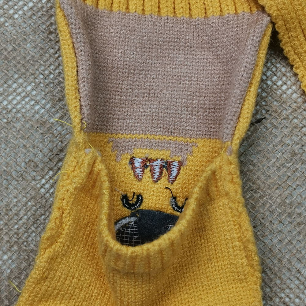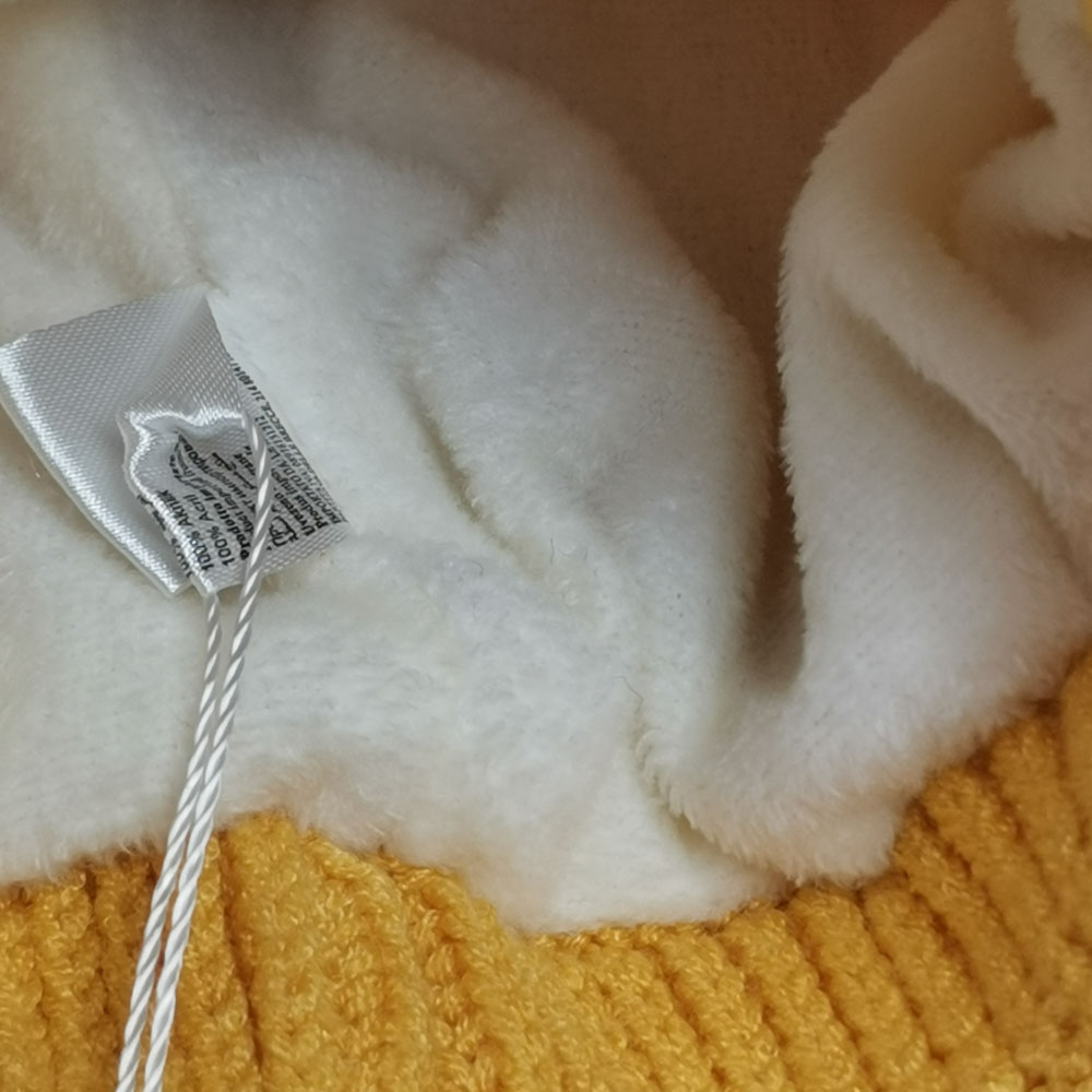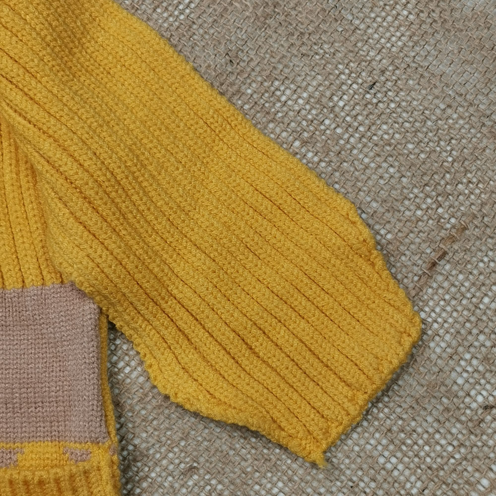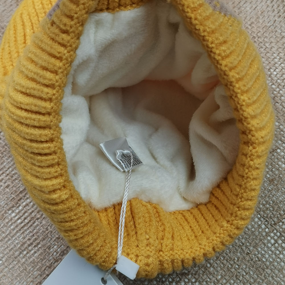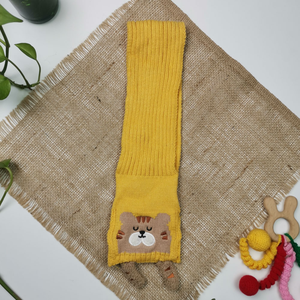 ست کلاه و شال بافت پسرانه طرح گربه آستردار پشمی خردلی رنگ – 4 تا 6 سال