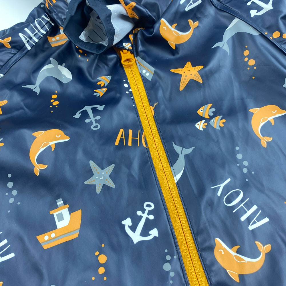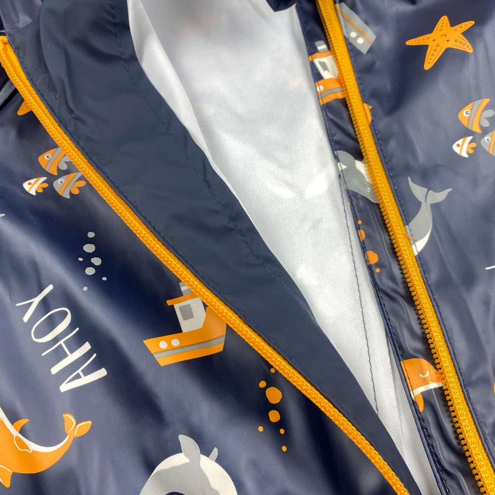 سرهمی آستین بلند برند لوپیلو طرح دریایی کوسه زیپی کلاه دار سرمه ای رنگ – 4 تا 6 سال