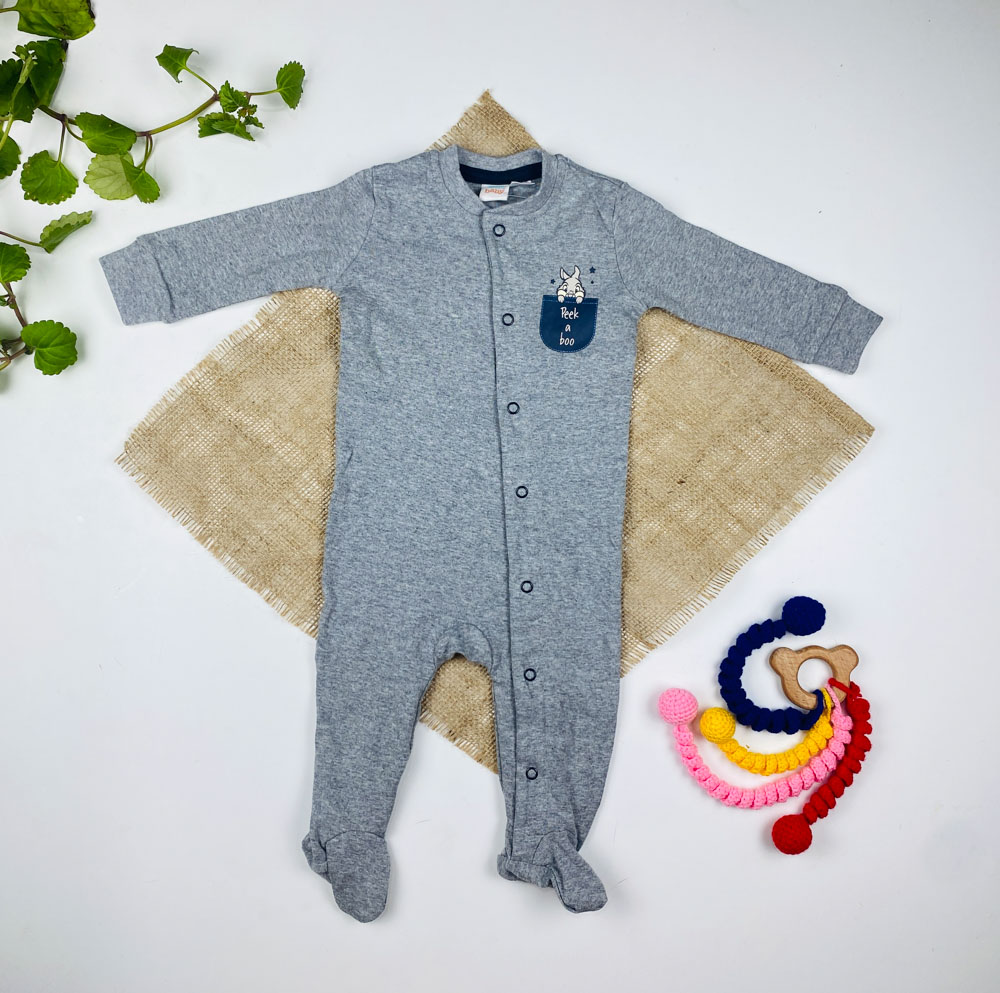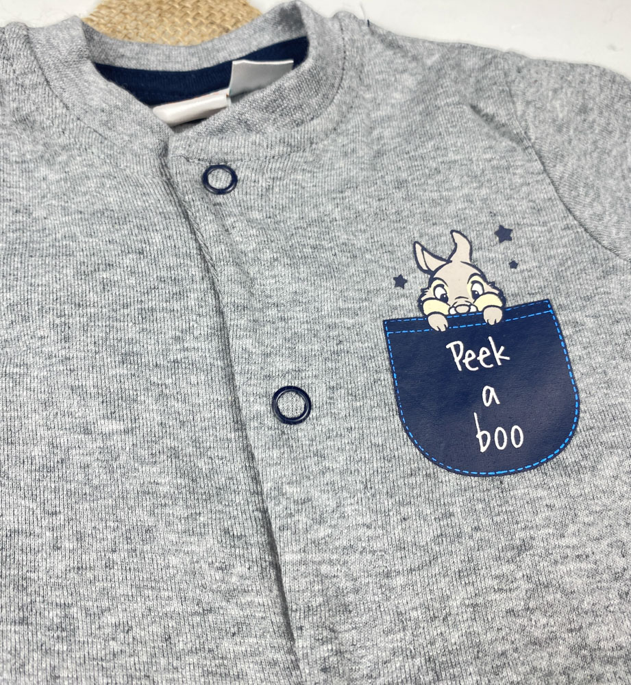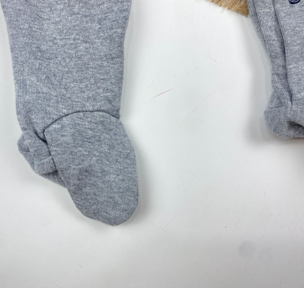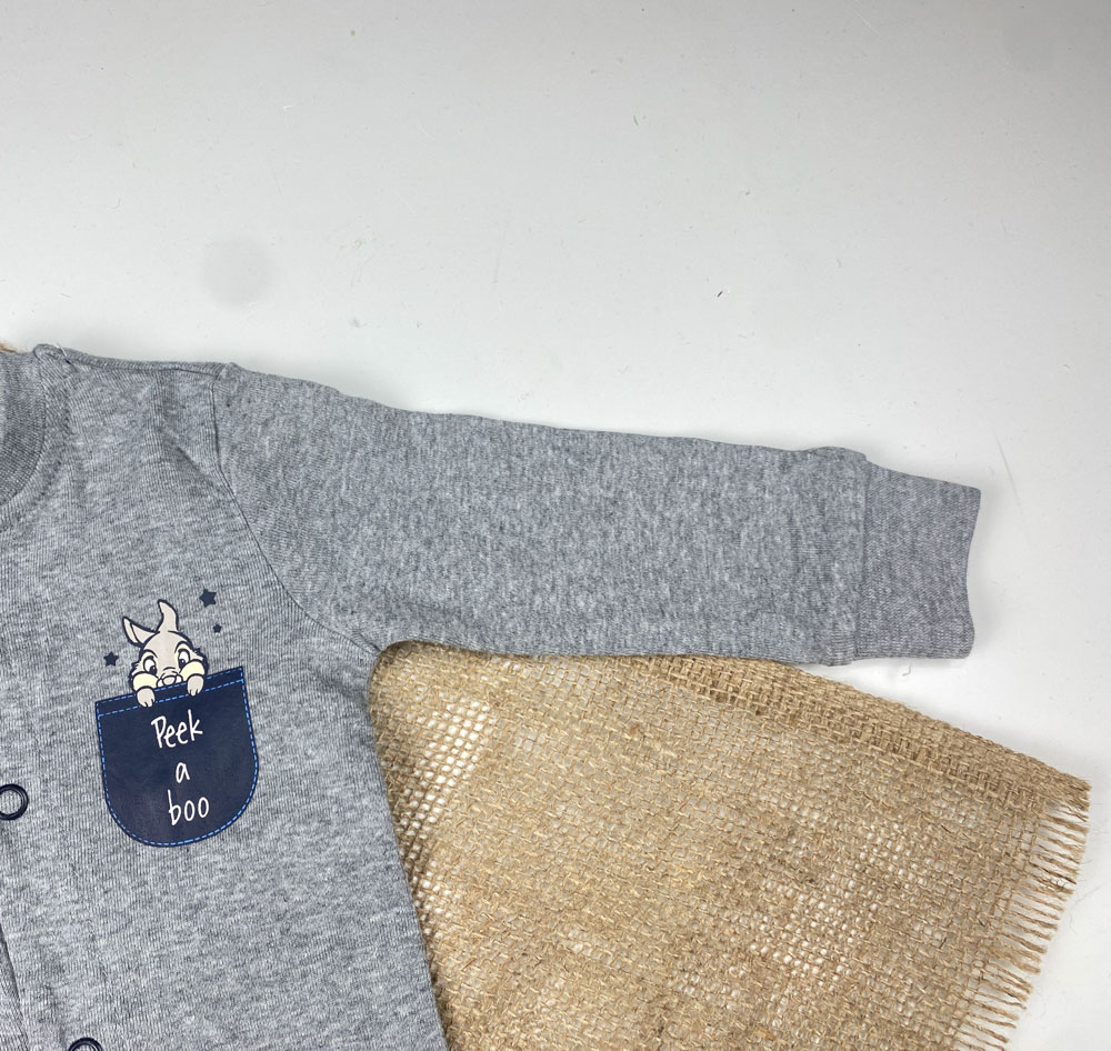 سرهمی نوزادی آستین بلند برند لوپیلو طرح خرگوش جلو دکمه ای جورابی طوسی رنگ – 2 تا 4 ماه