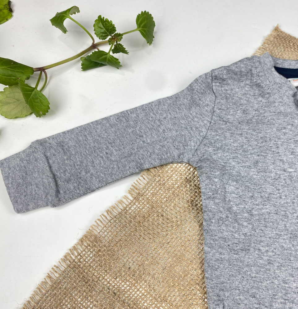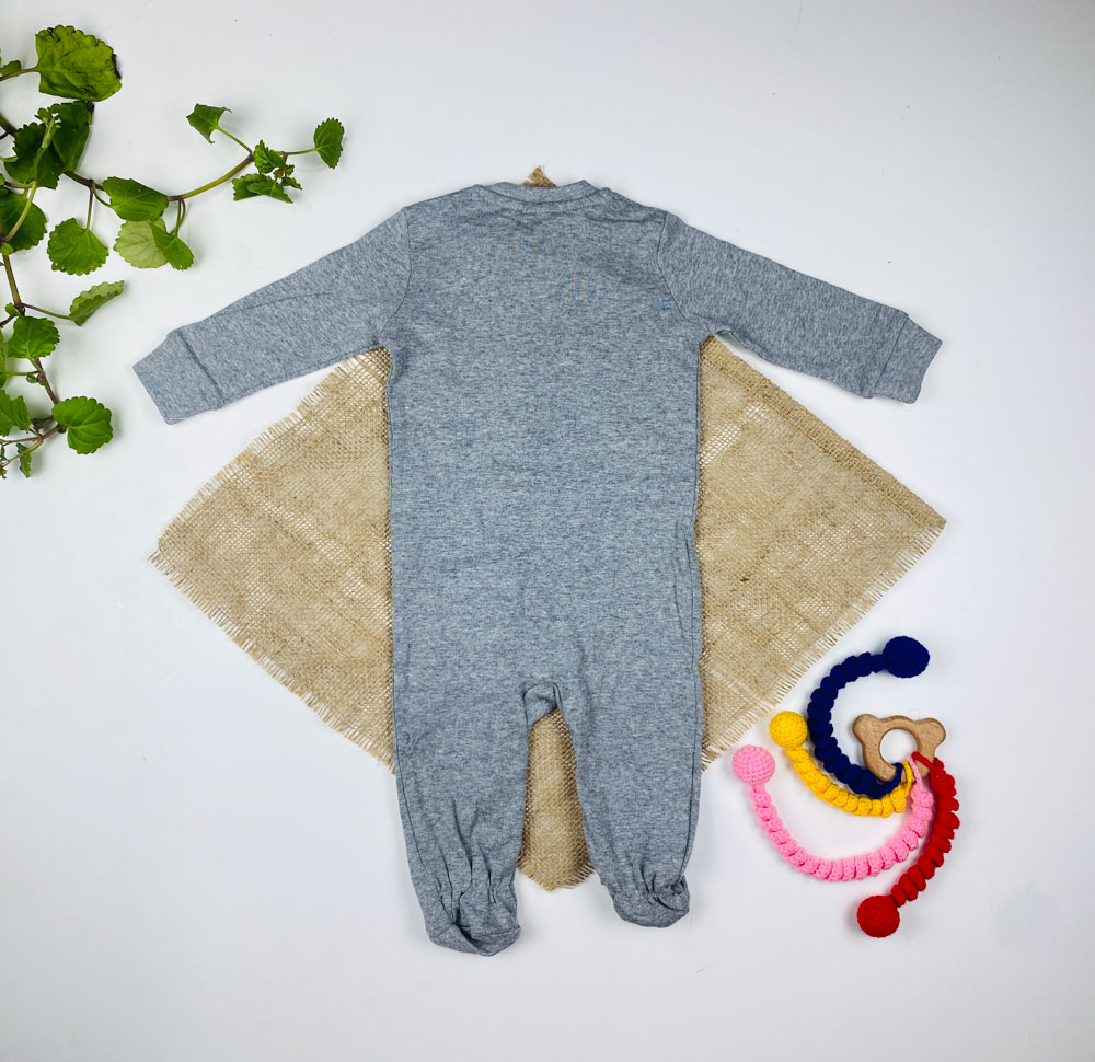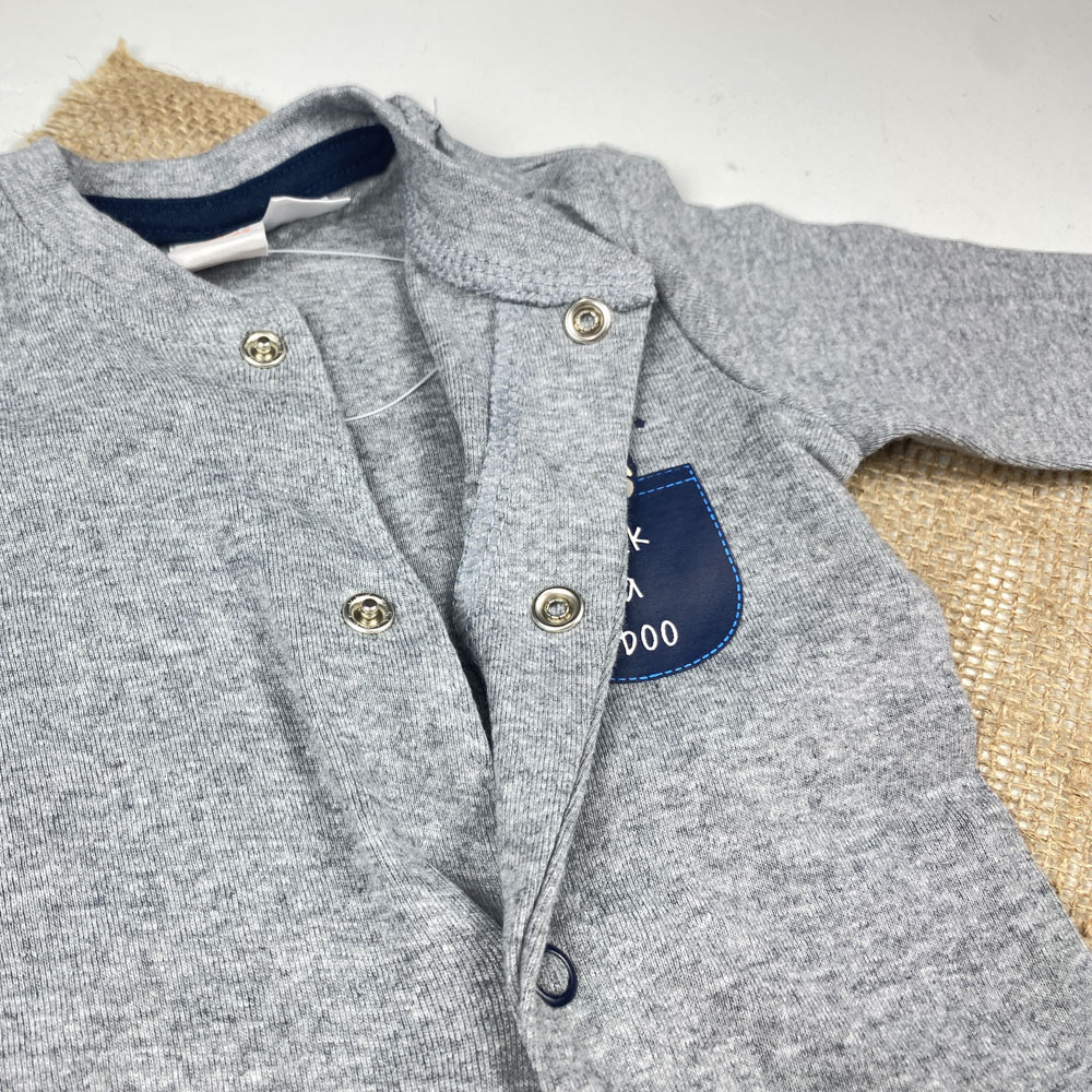 سرهمی نوزادی آستین بلند برند لوپیلو طرح خرگوش جلو دکمه ای جورابی طوسی رنگ – 2 تا 4 ماه