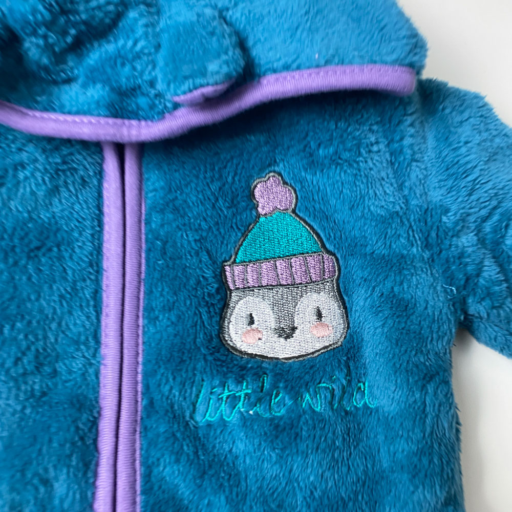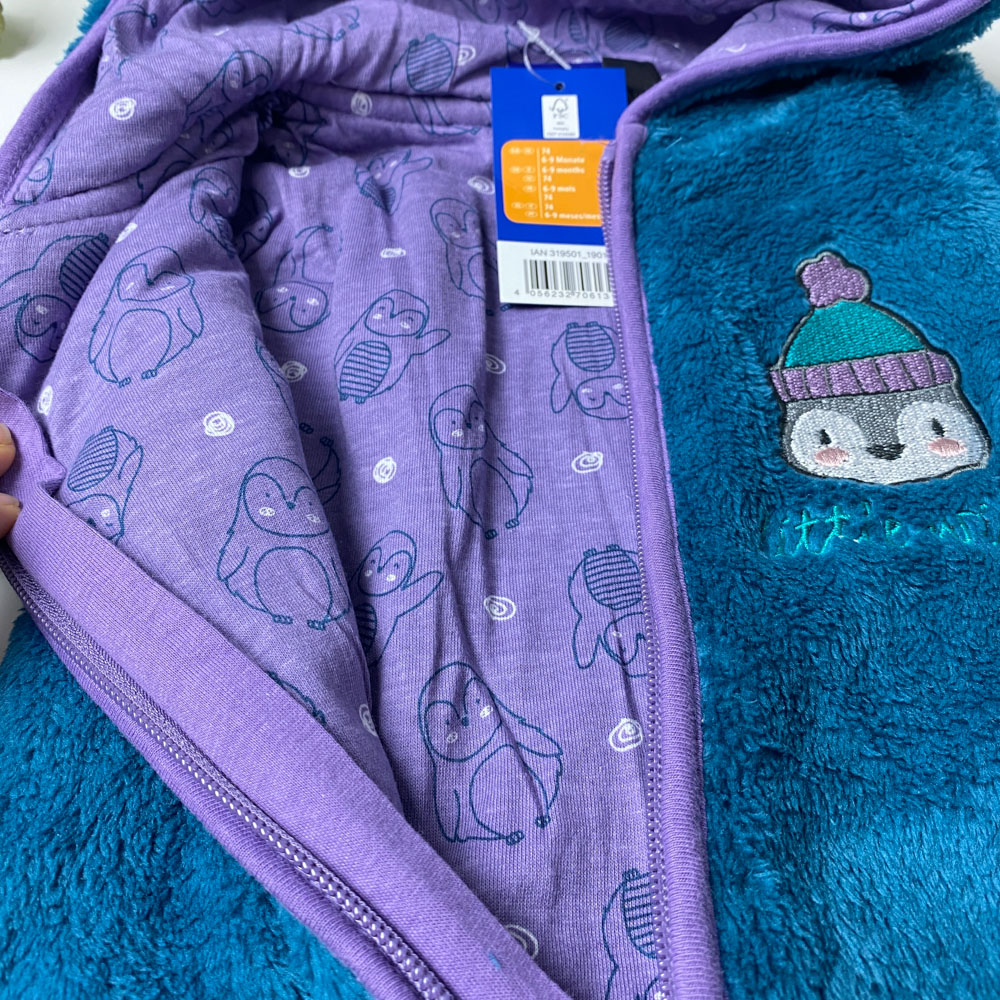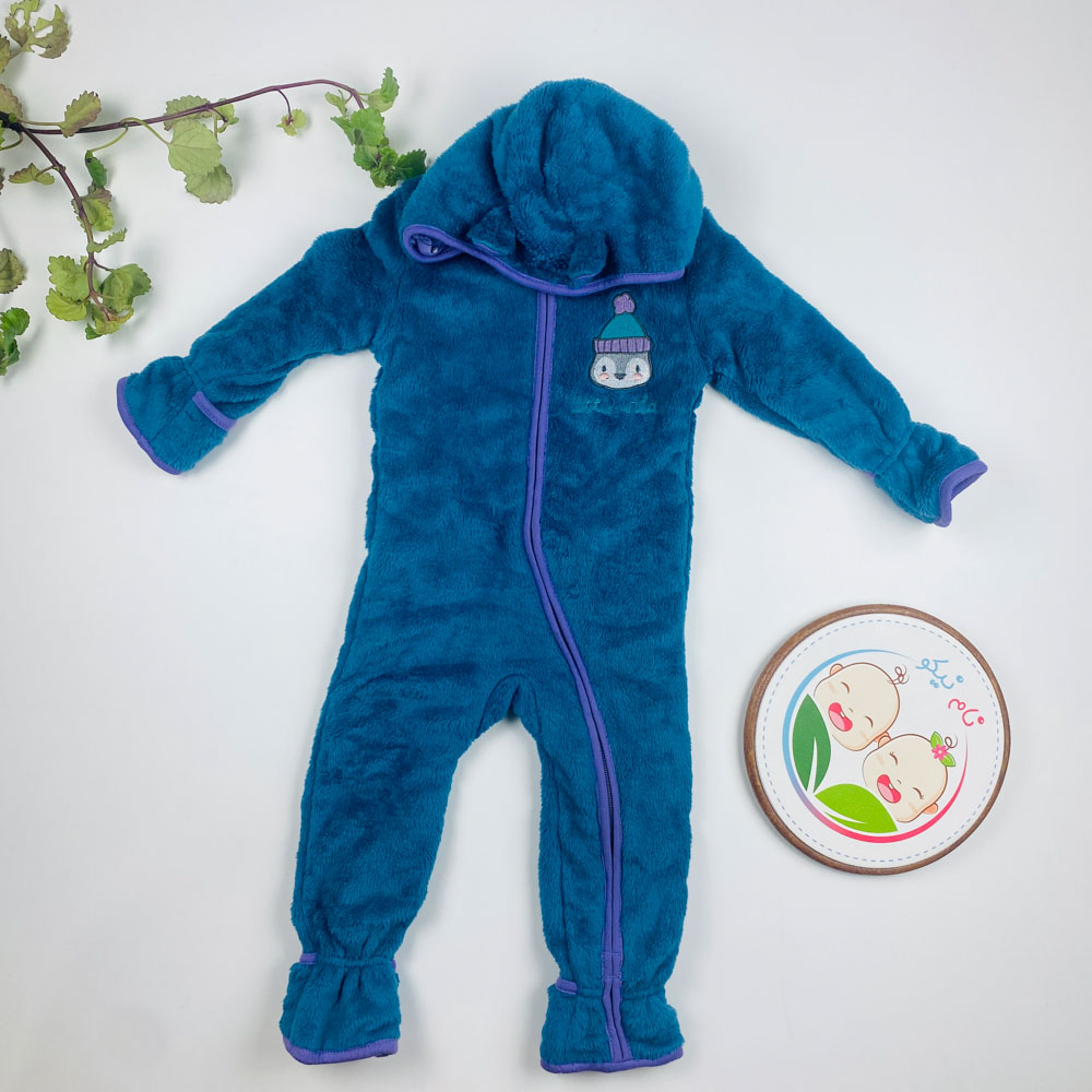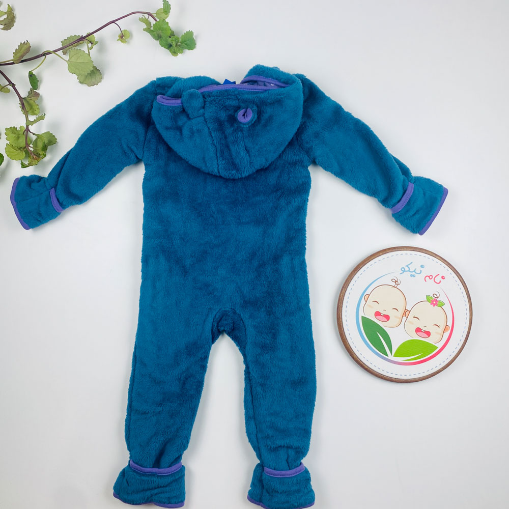 سرهمی نوزادی آستین بلند برند لوپیلو طرح خرس کلاه دار زیپی کلاه دار سبز کله غازی رنگ – 6 تا 9 ماه