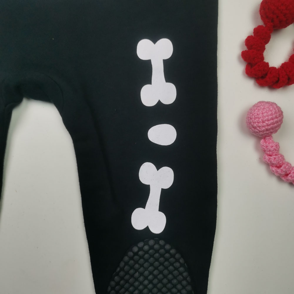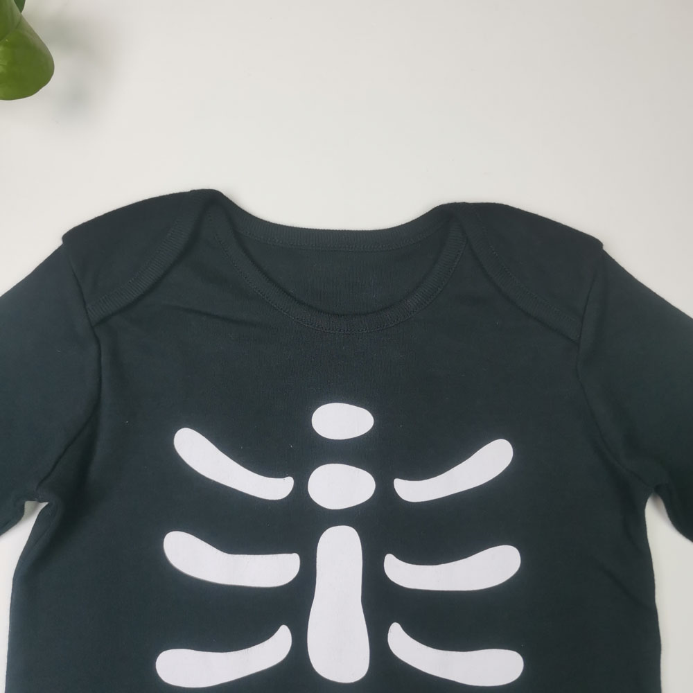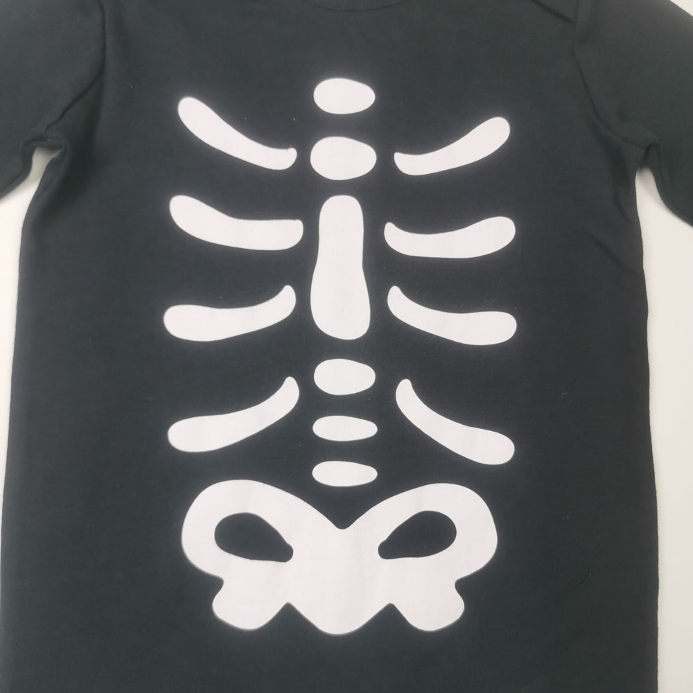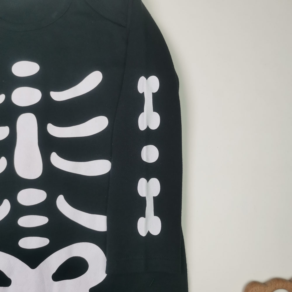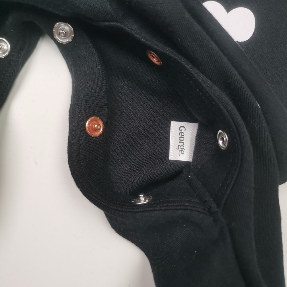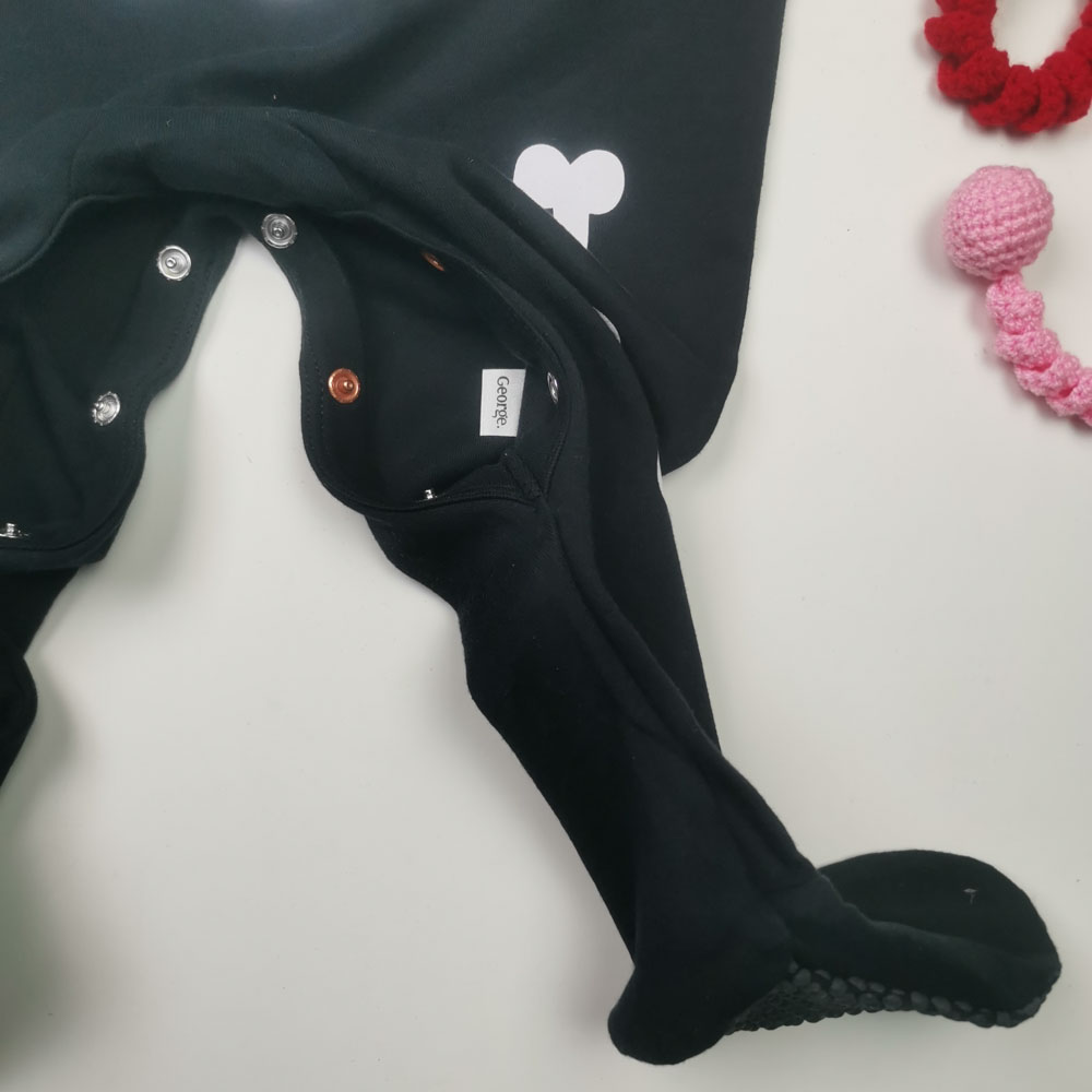 سرهمی نوزادی آستین بلند برند George طرح اسکلت جوراب دار استپ دار مشکی رنگ