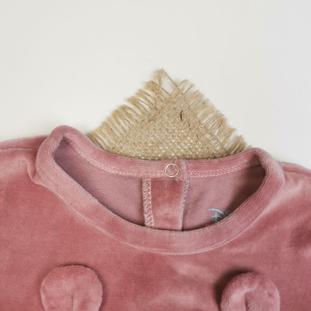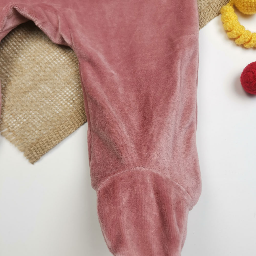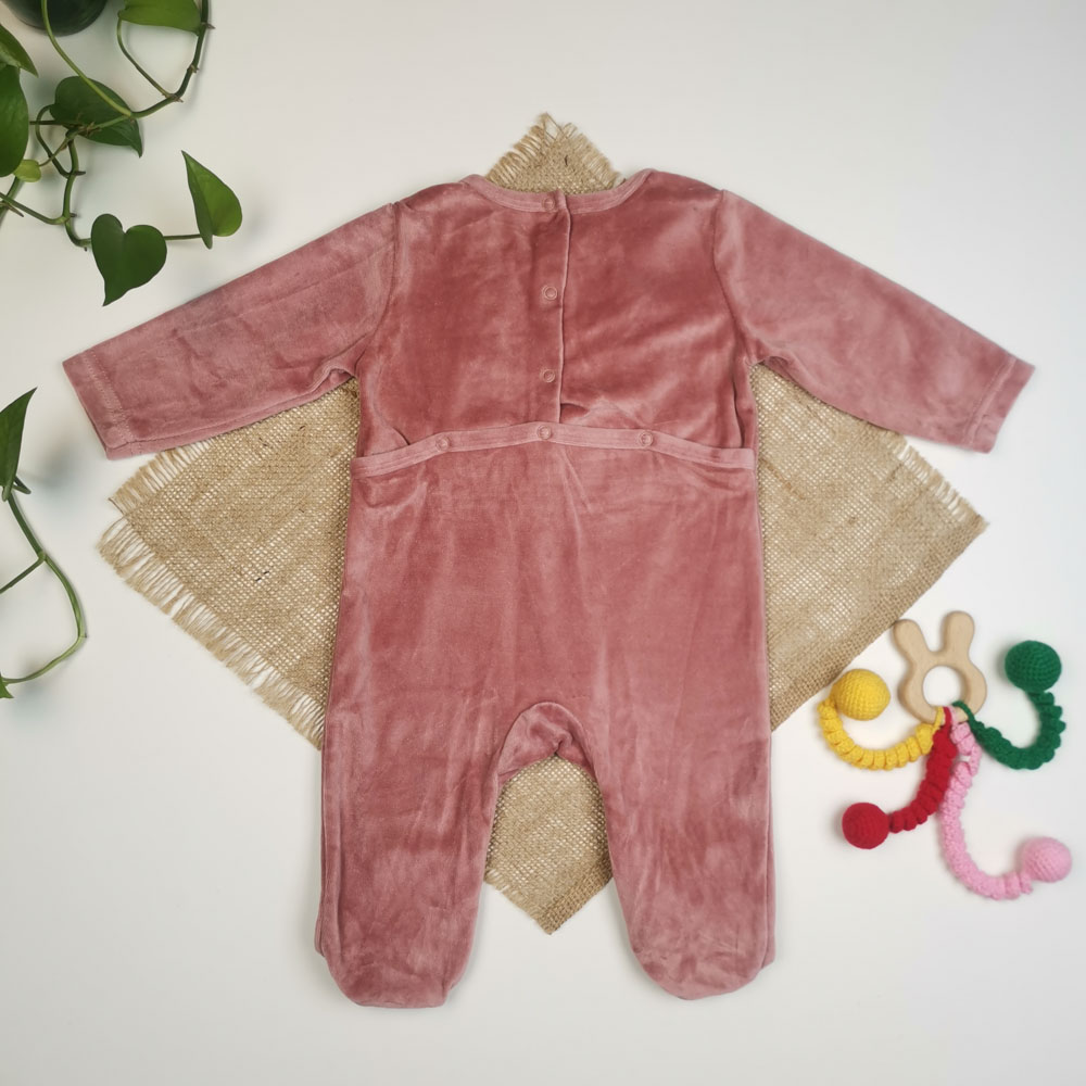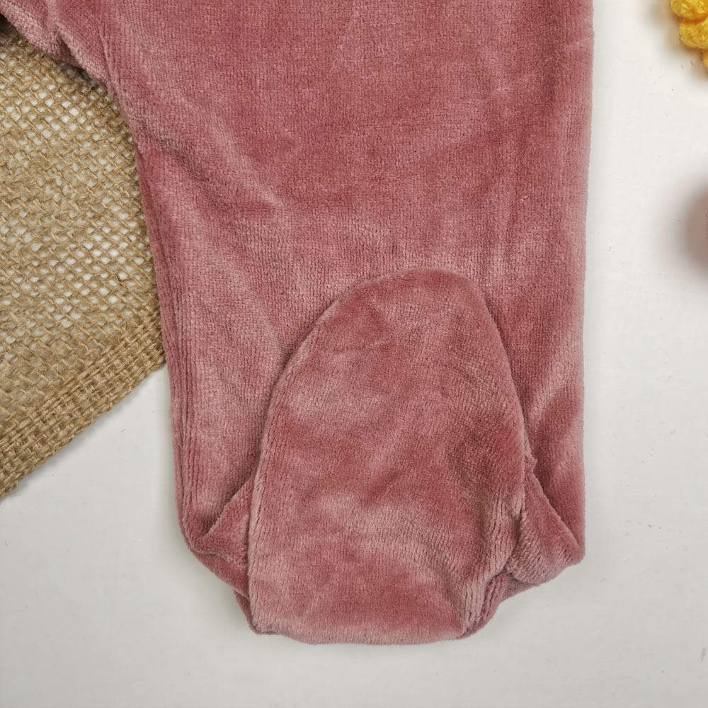 سرهمی نوزادی دخترانه آستین بلند برند دیزنی جوراب دار و پشت دکمه دار کالباسی رنگ