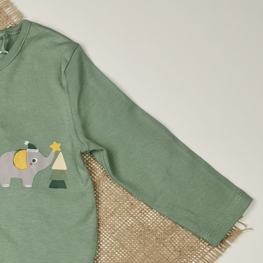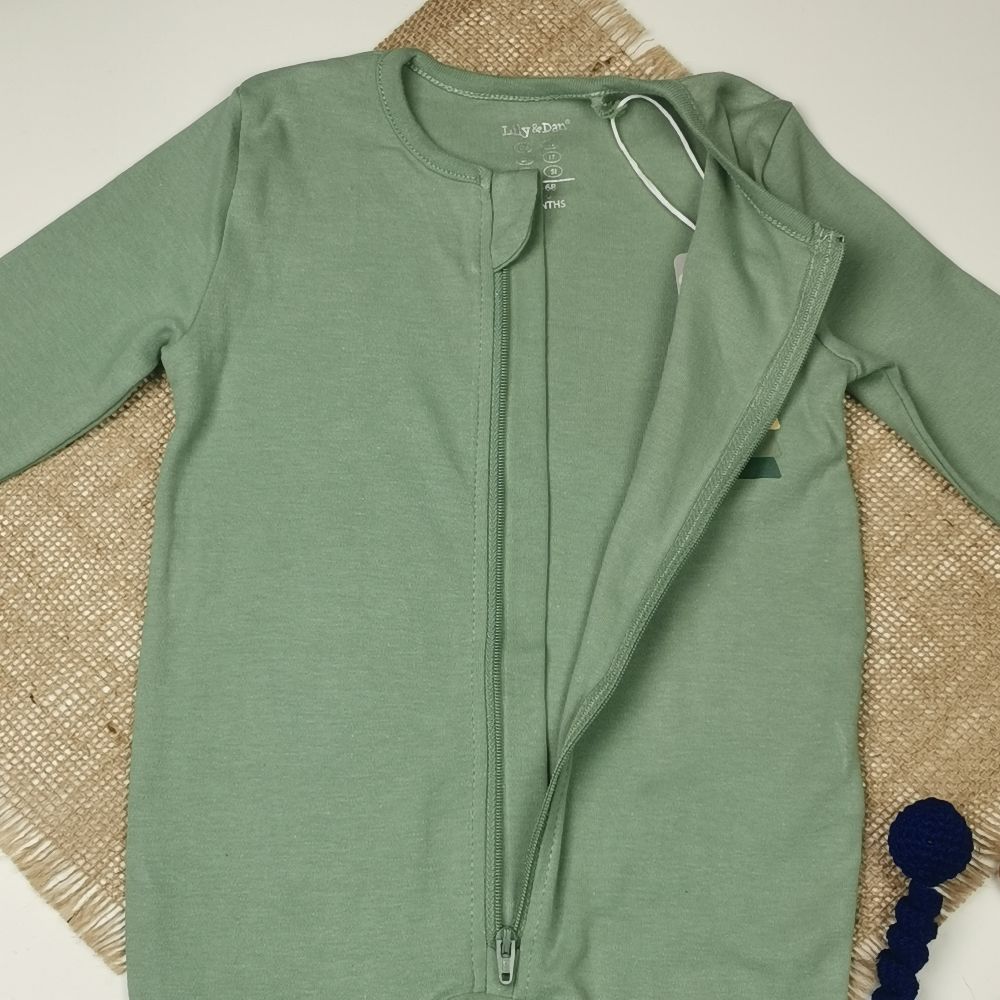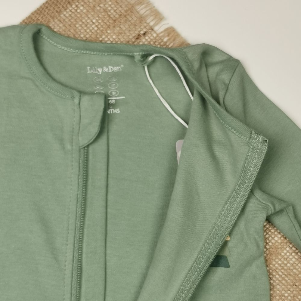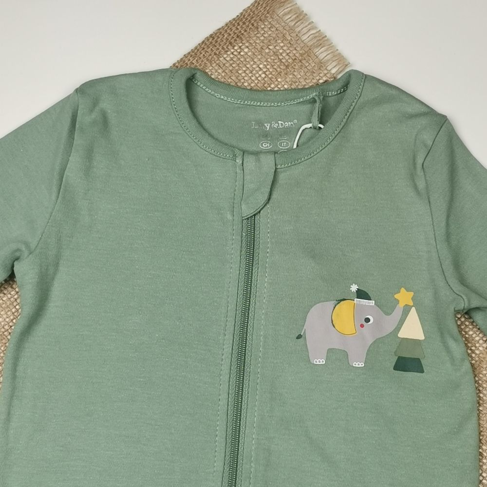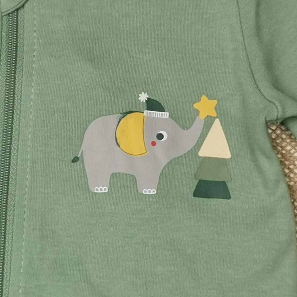 سرهمی نوزادی پسرانه آستین بلند برند Lily & Dan طرح فیل زیپ دار سبز رنگ – 3-6 ماه