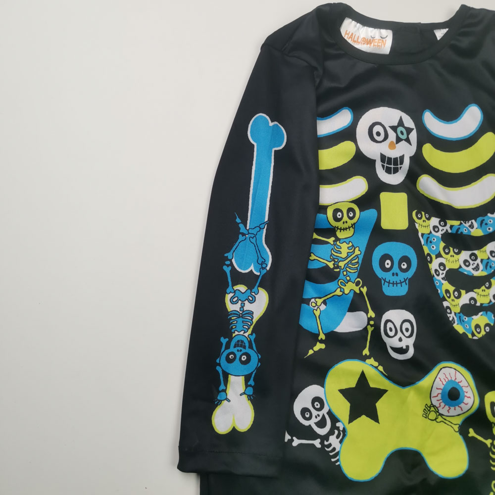 سرهمی پسرانه آستین بلند طرح اسکلت هالووین مشکی رنگ – 2 تا 4 سال