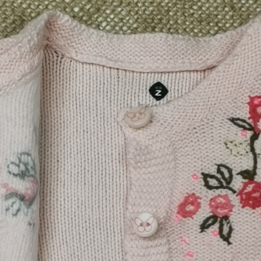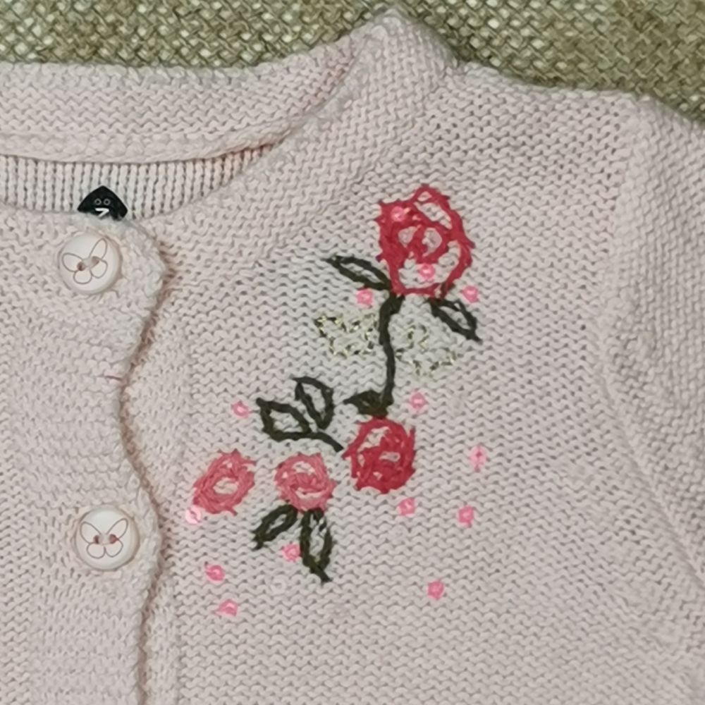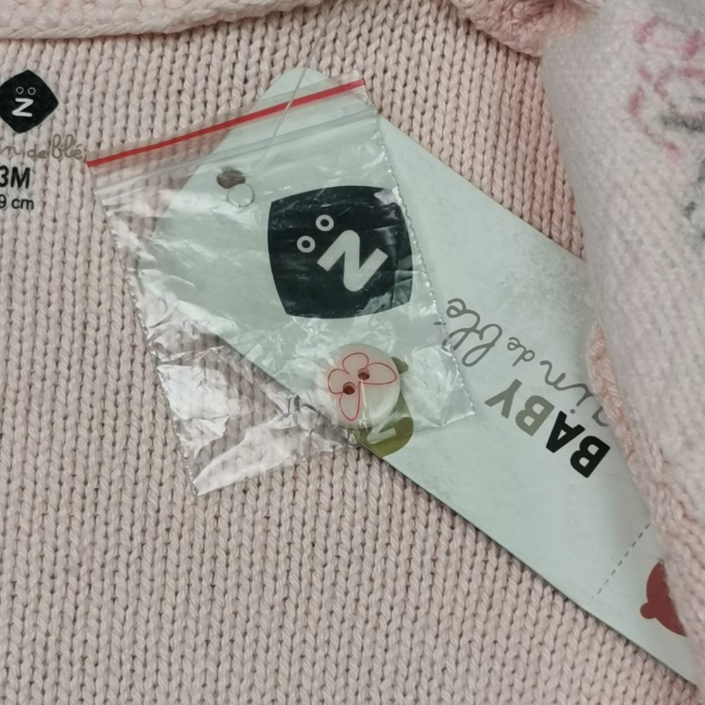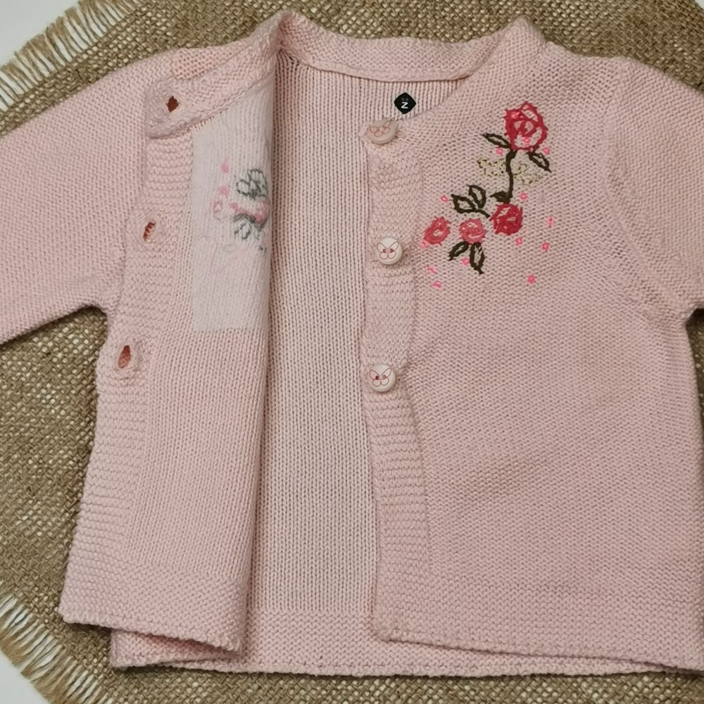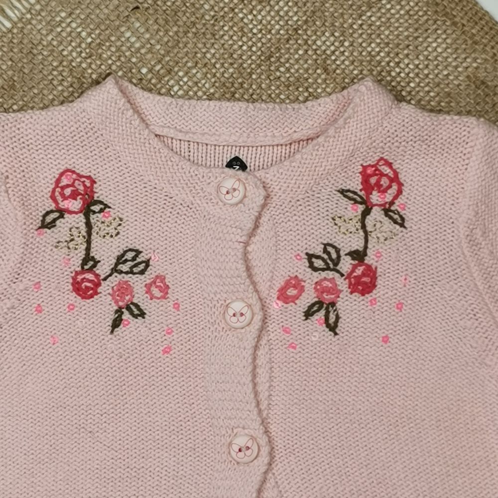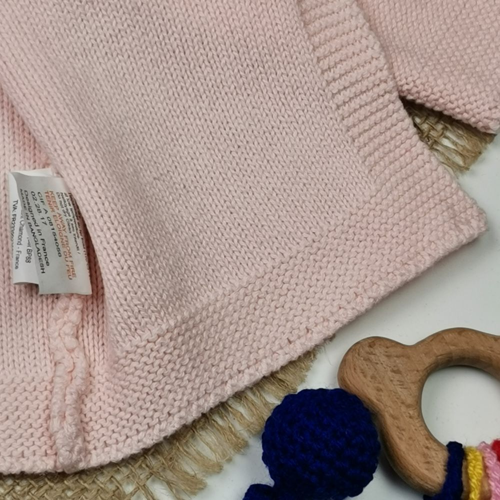 سویشرت بافت نوزادی آستین بلند طرح گل صورتی رنگ – 3 ماه