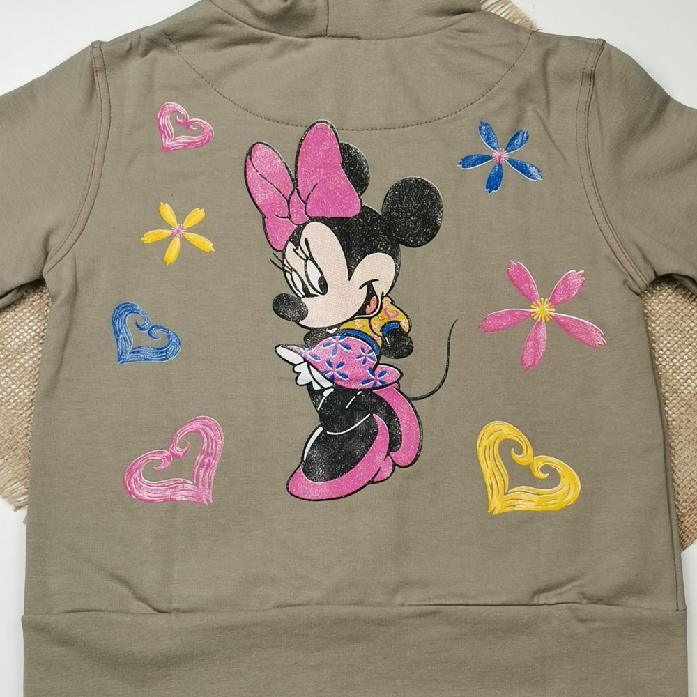 سویشرت دخترانه آستین بلند برند دیزنی طرح مینی موس جیب دار تو کرکی دو زیپ سبز رنگ – 2 تا 4 سال