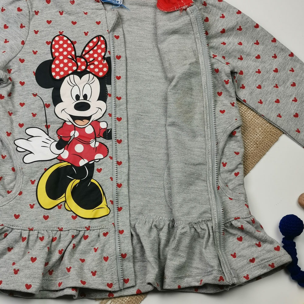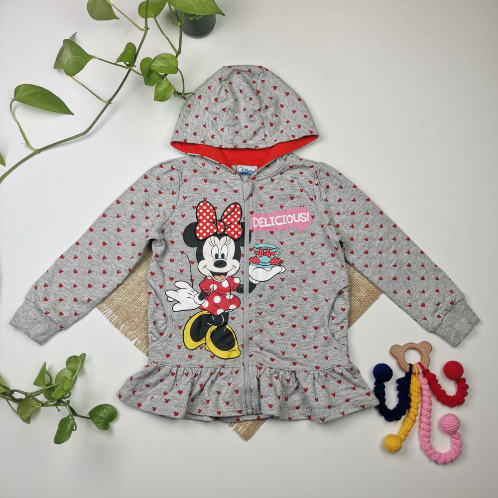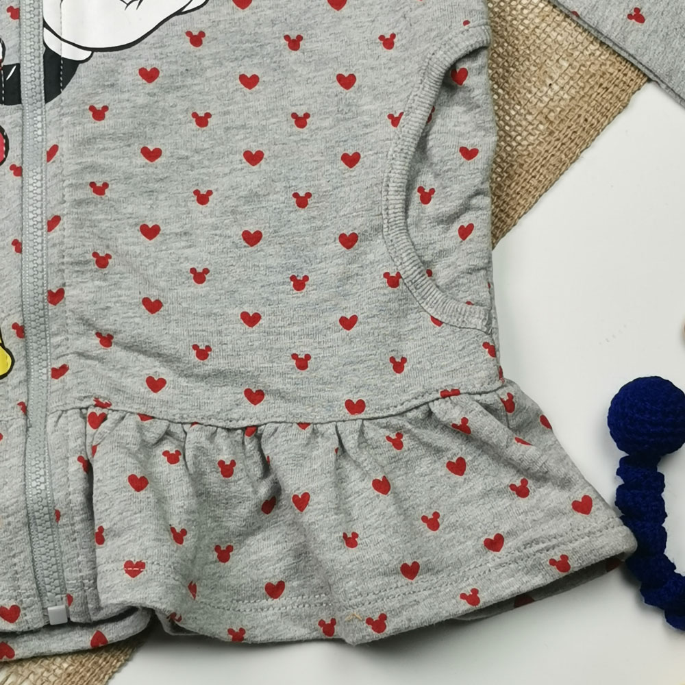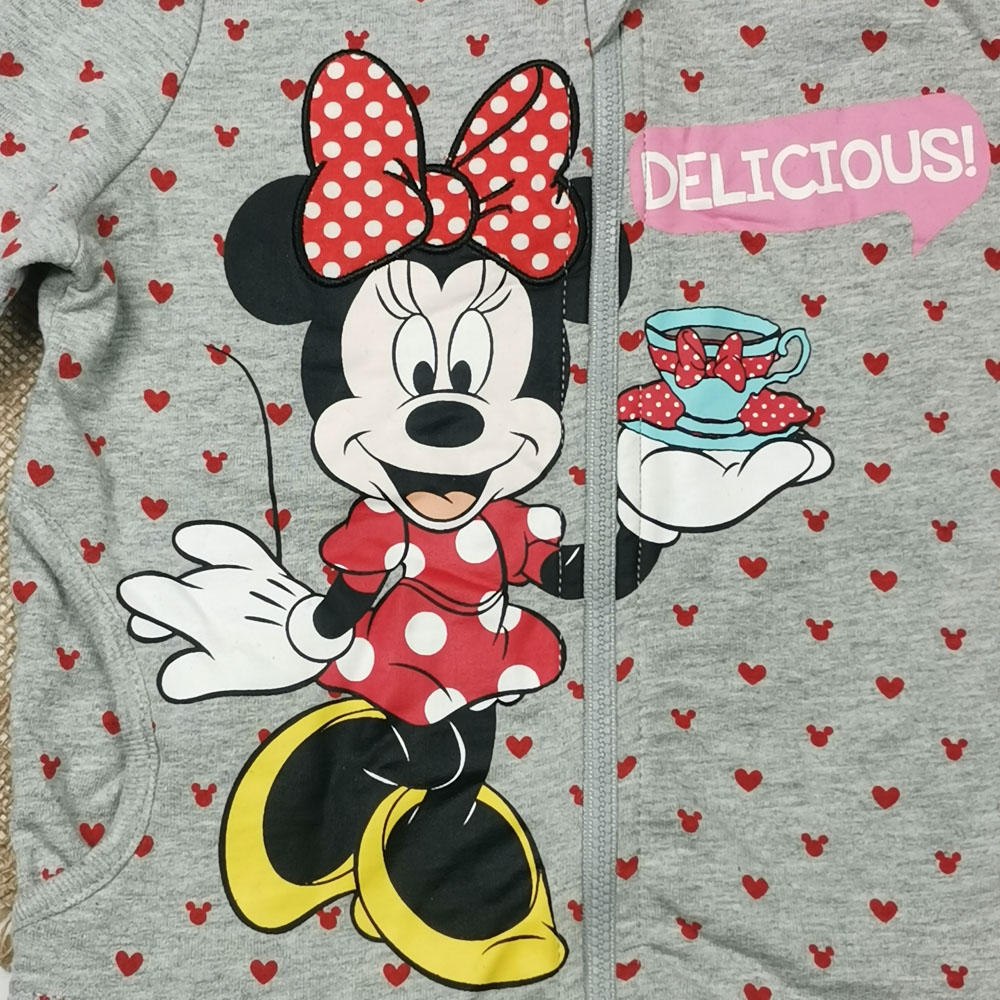 سویشرت دخترانه آستین بلند برند دیزنی طرح مینی موس جیب دار تو دورس طوسی رنگ – 2 تا 3 سال