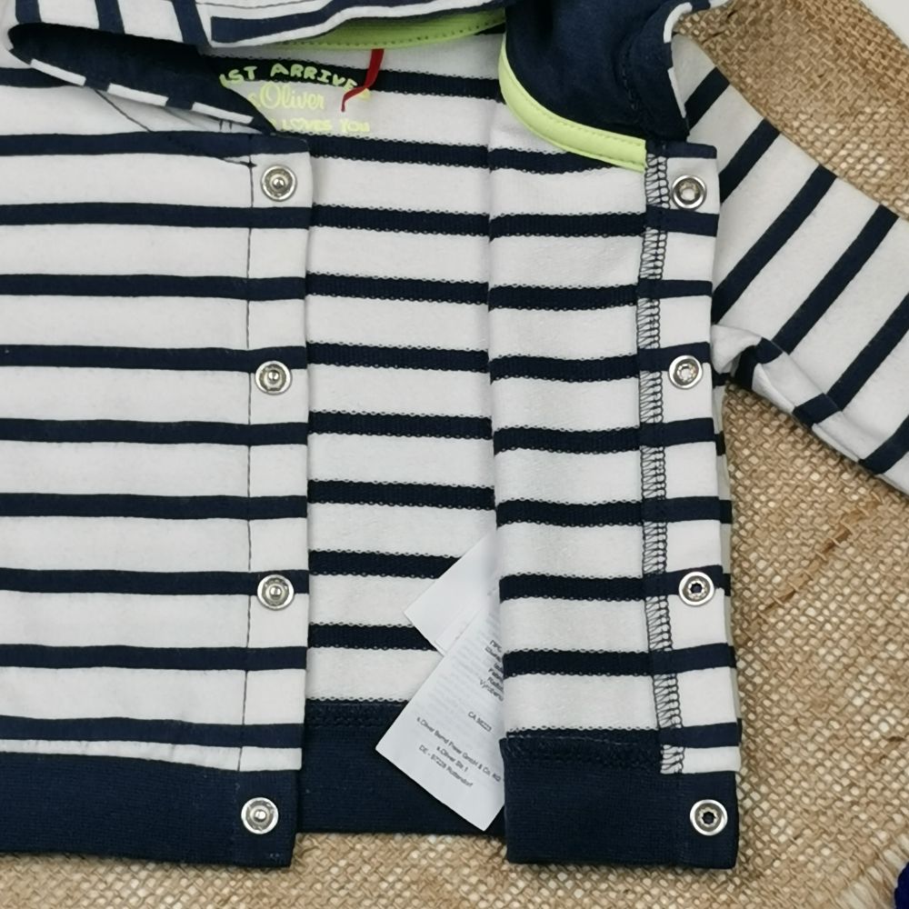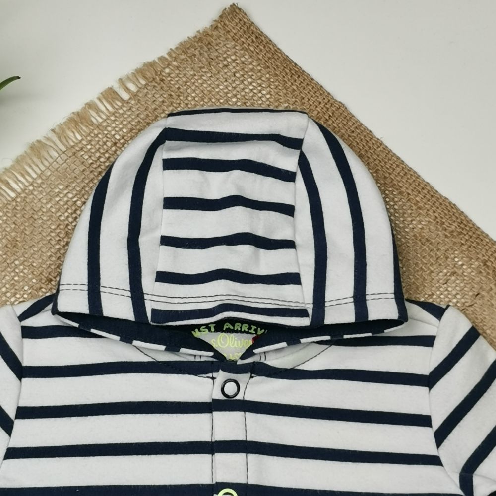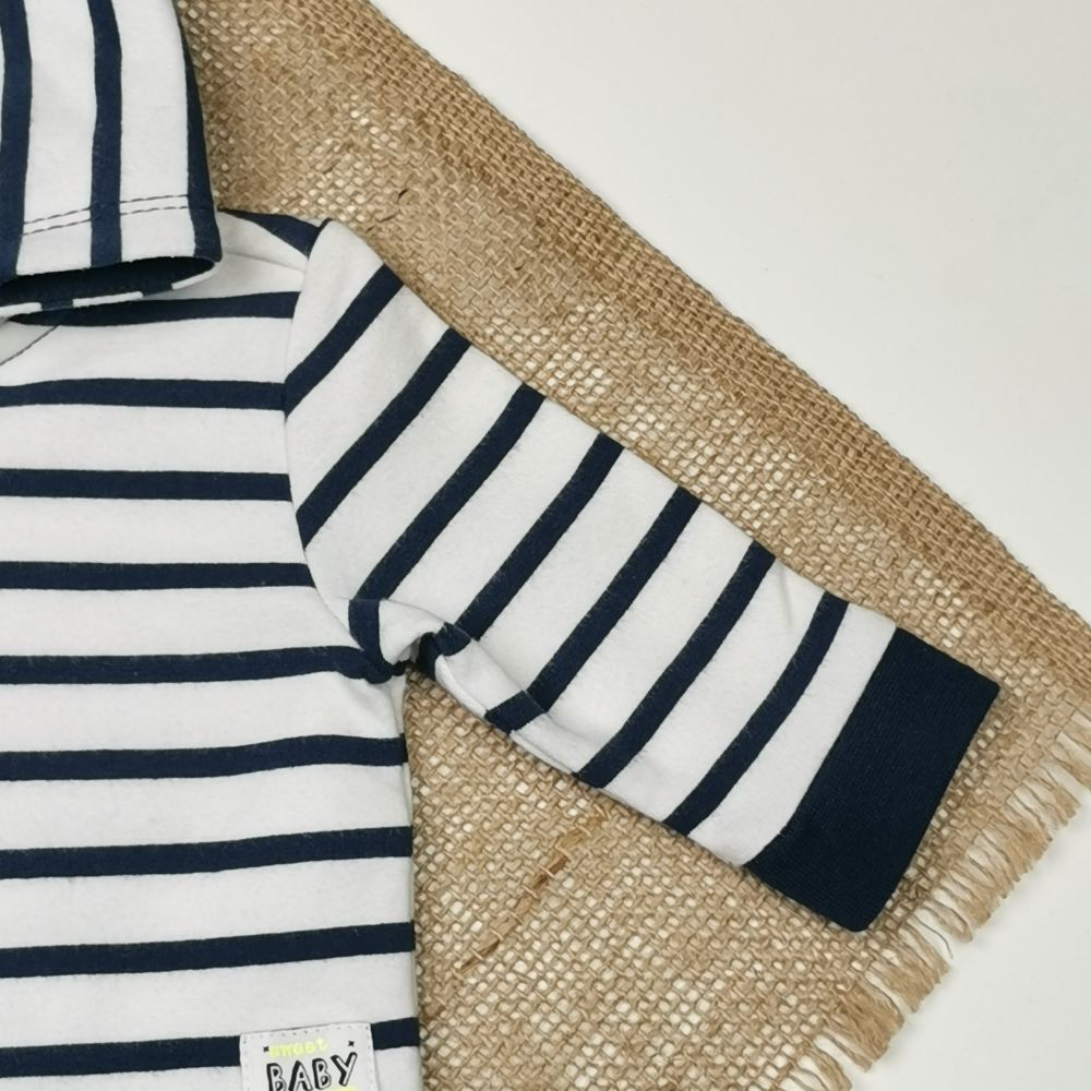 سویشرت دورس نوزادی آستین بلند طرح راه راه سفید رنگ – 0 تا 3 ماه