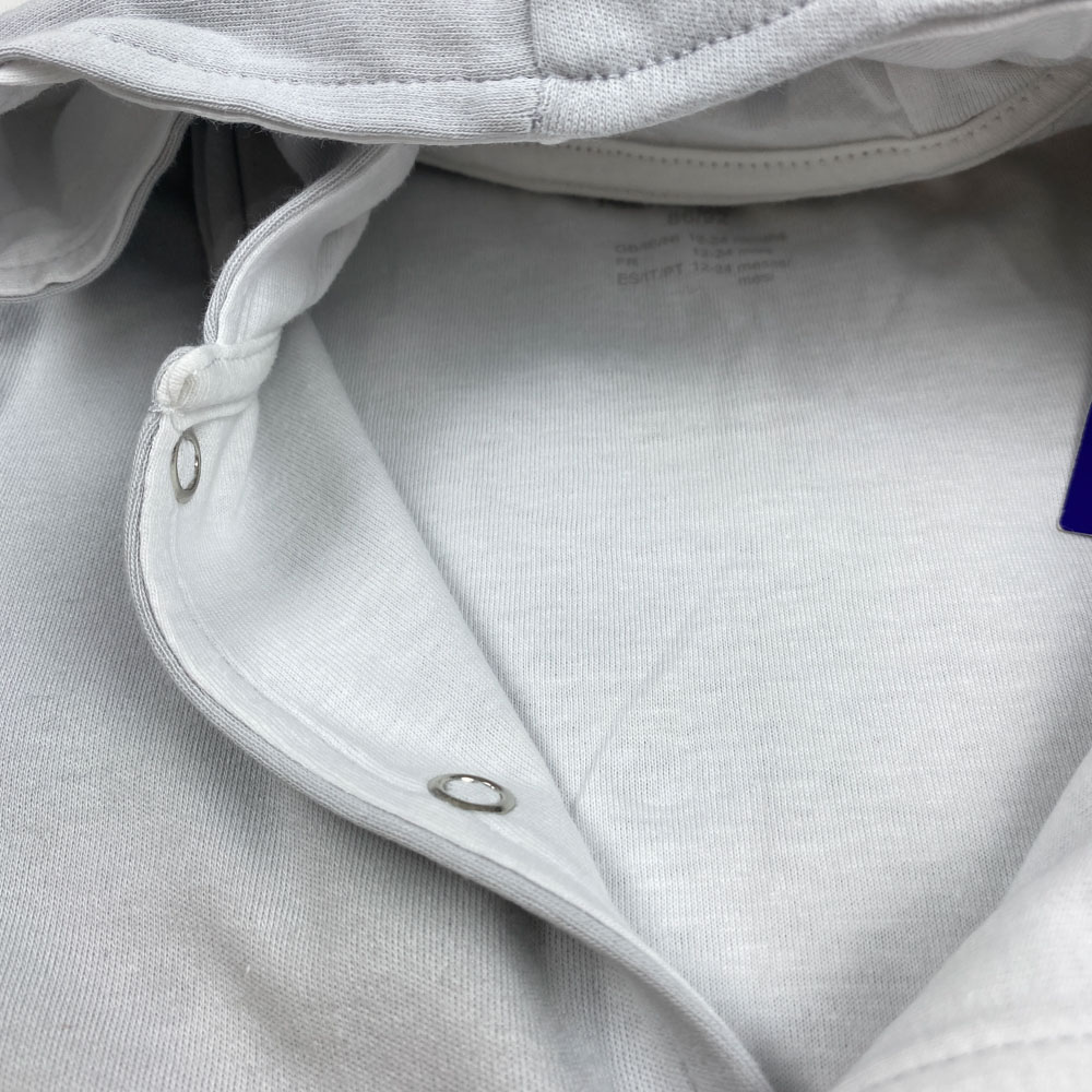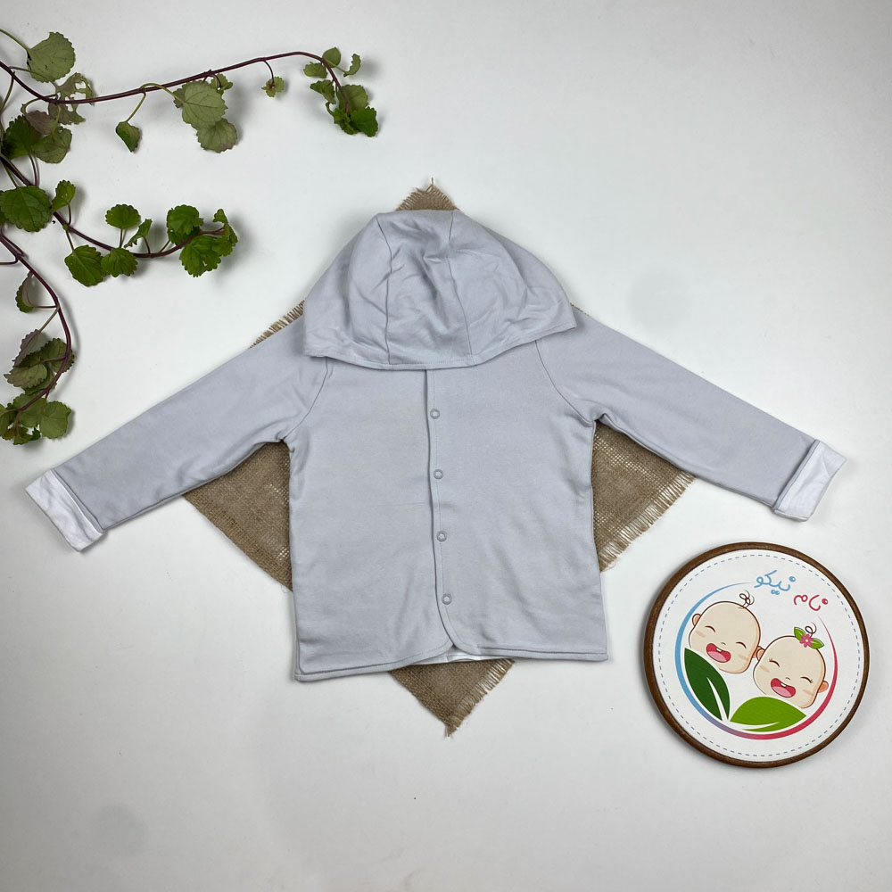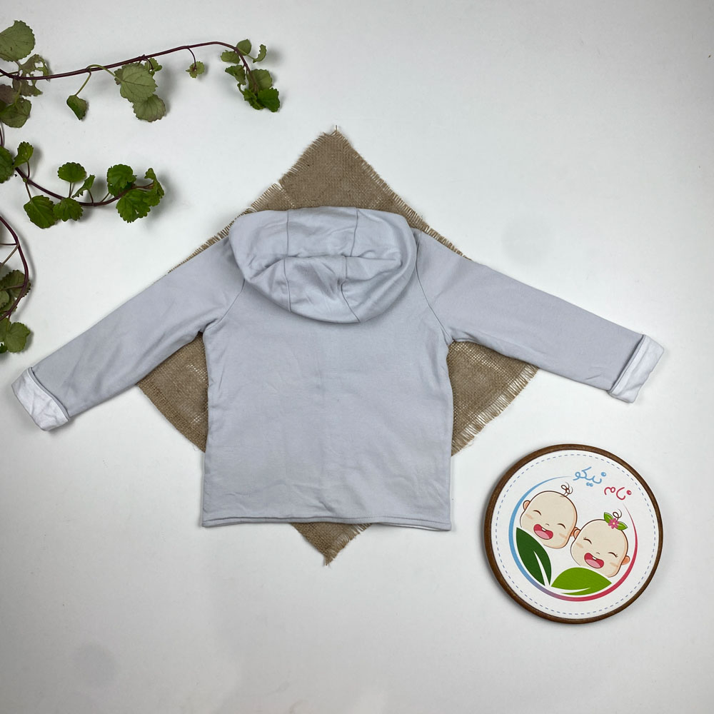 سویشرت نوزادی آستین بلند برند لوپیلو طرح جلو دکمه کلاه دار طوسی روشن رنگ – 12 تا 24 ماه