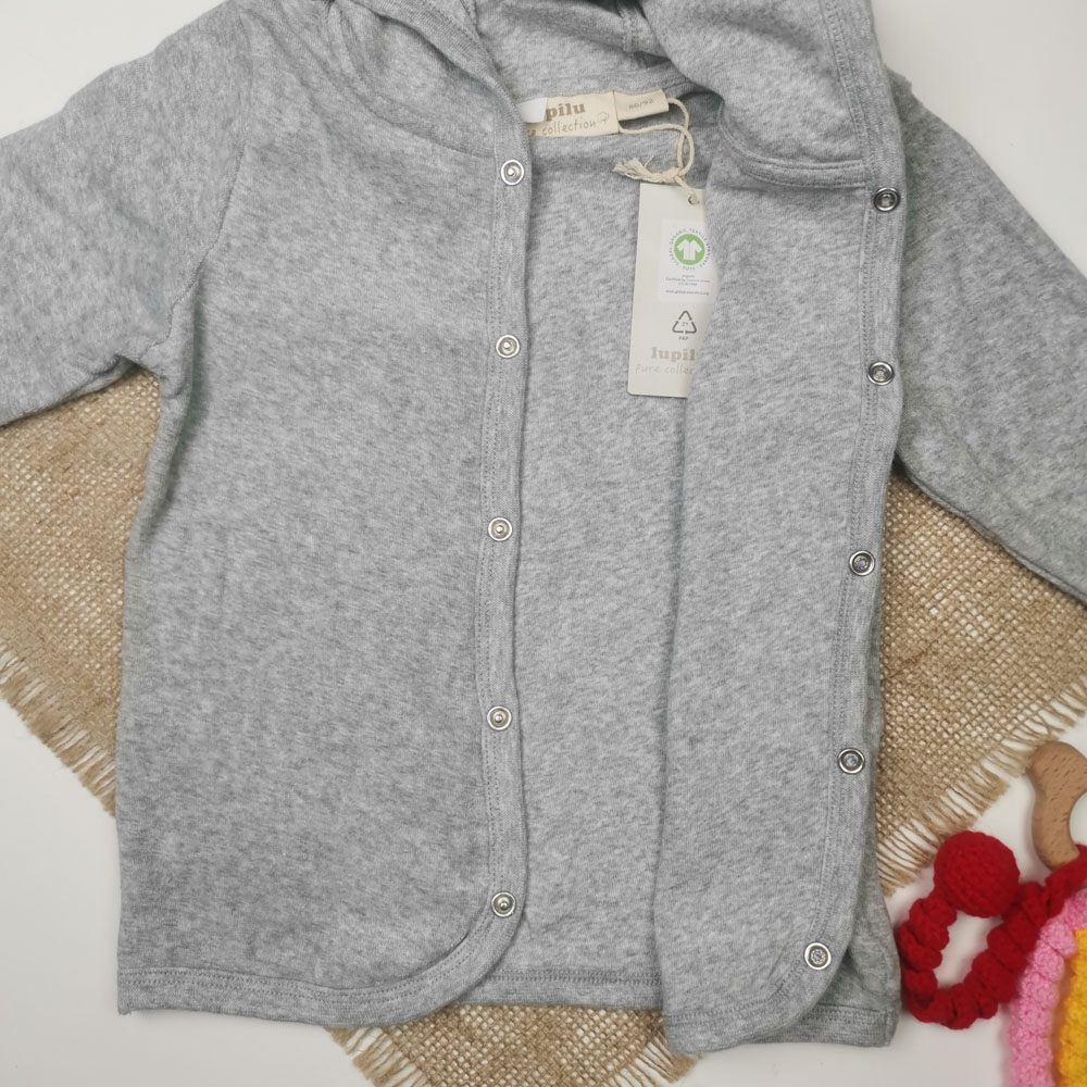 سویشرت نوزادی آستین بلند برند لوپیلو کلاهدار طوسی رنگ