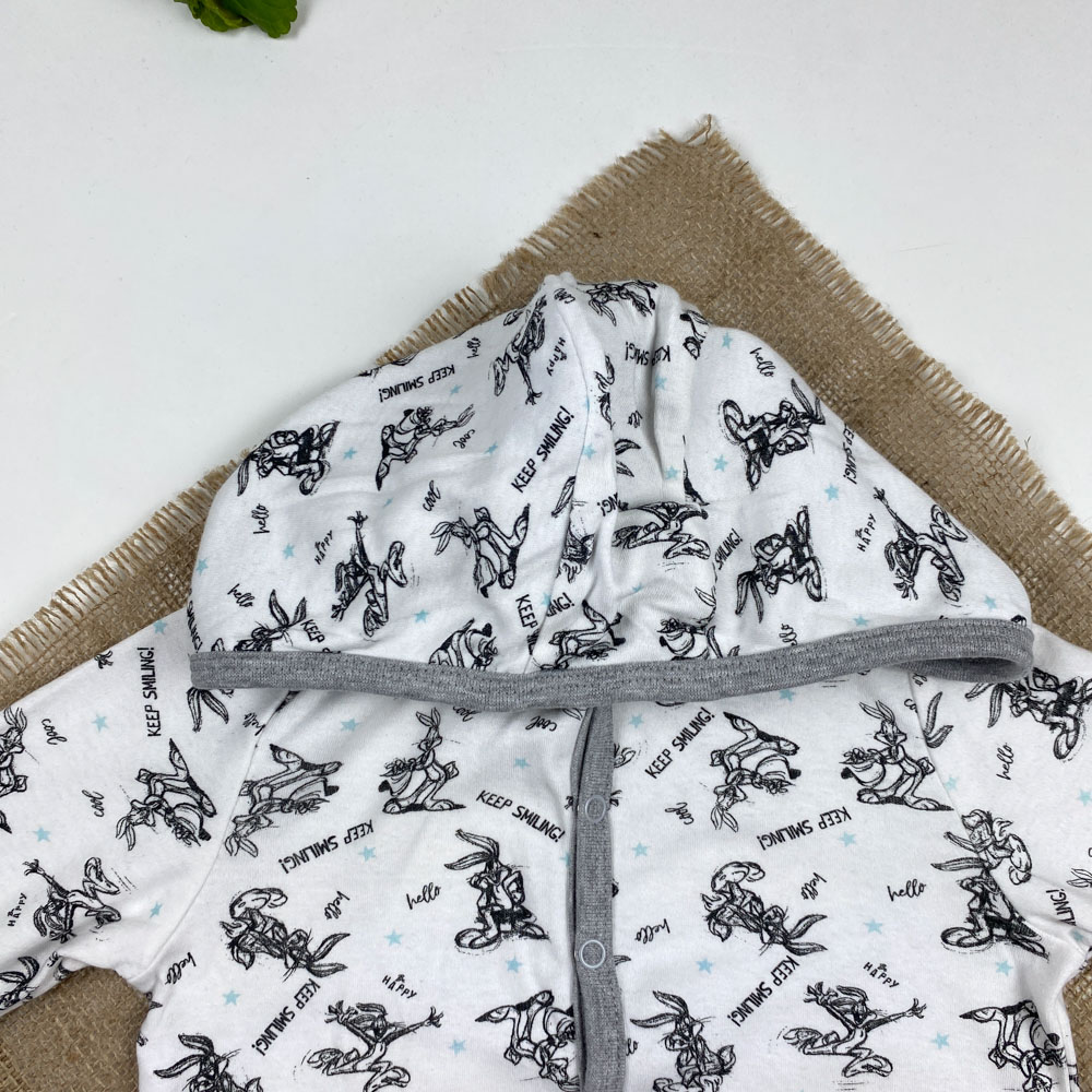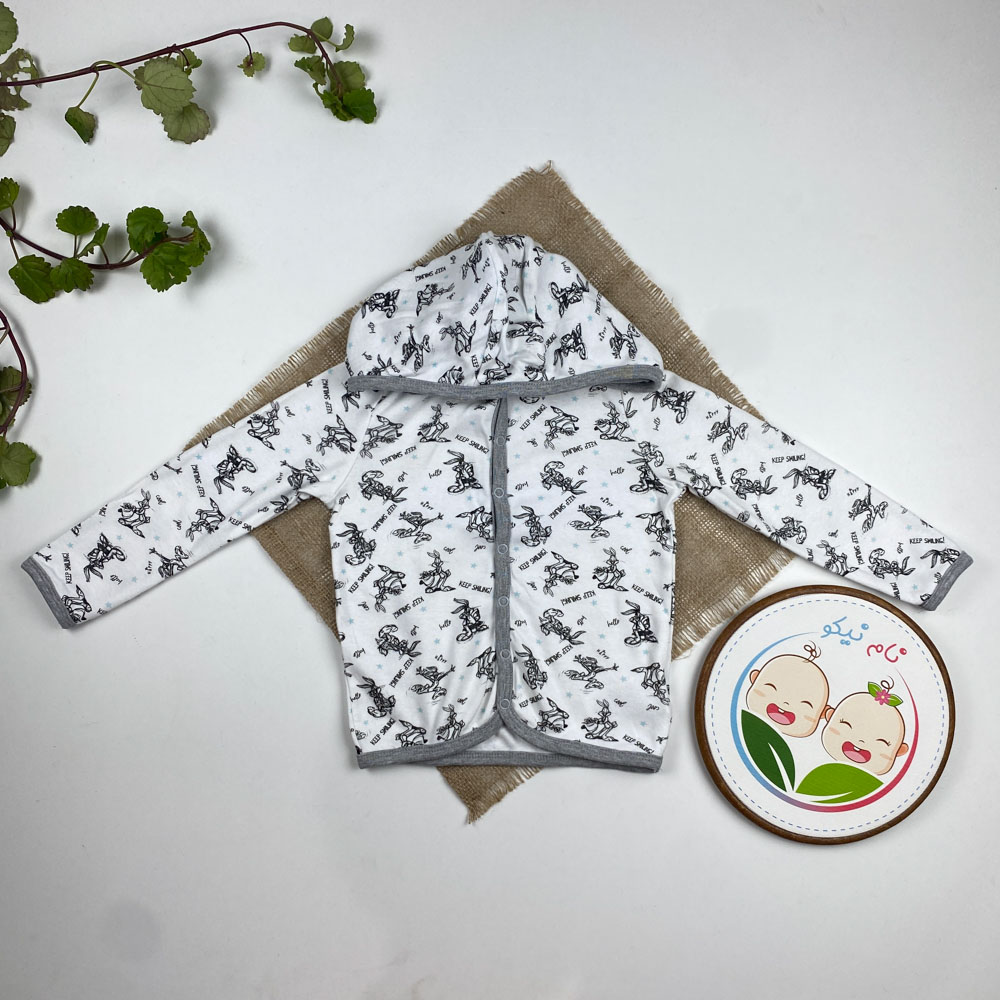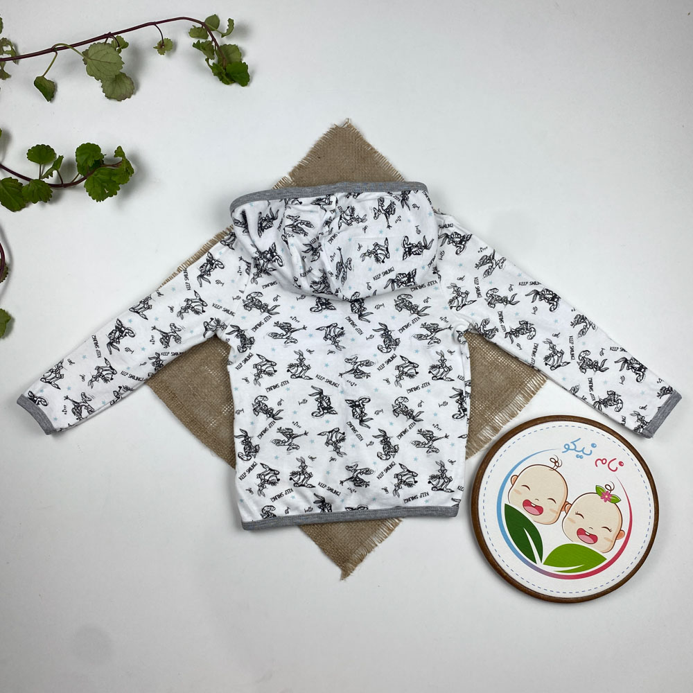 سویشرت نوزادی آستین بلند طرح خرگوش ها دکمه ای کلاه دار سفید رنگ – 12 تا 24 ماه