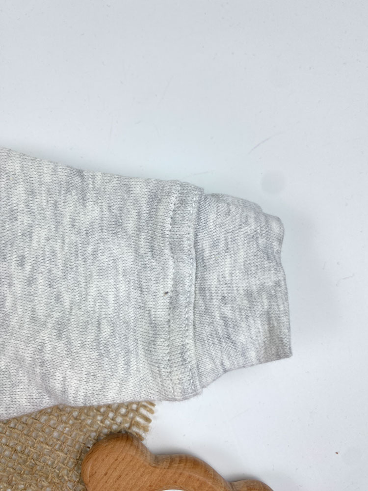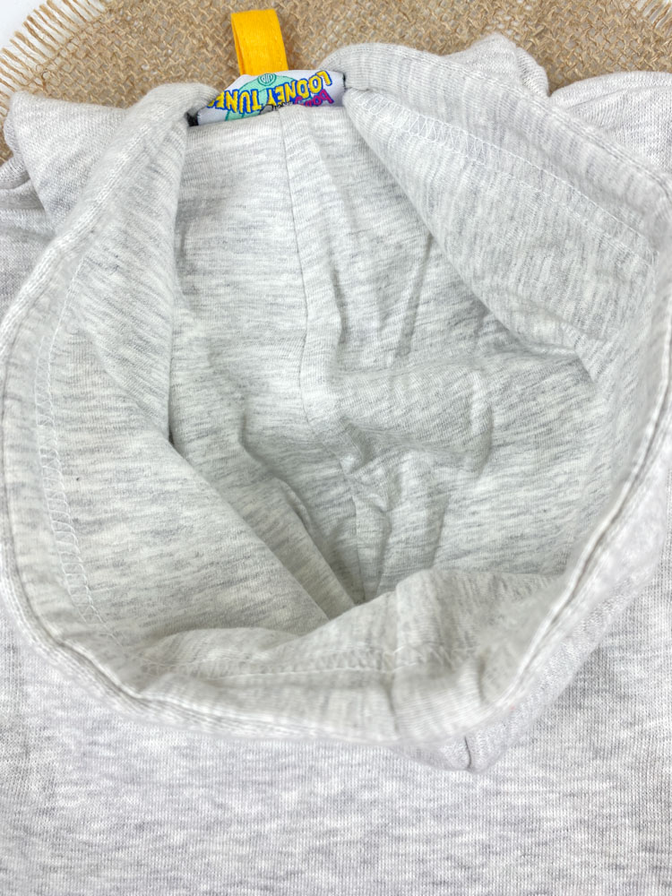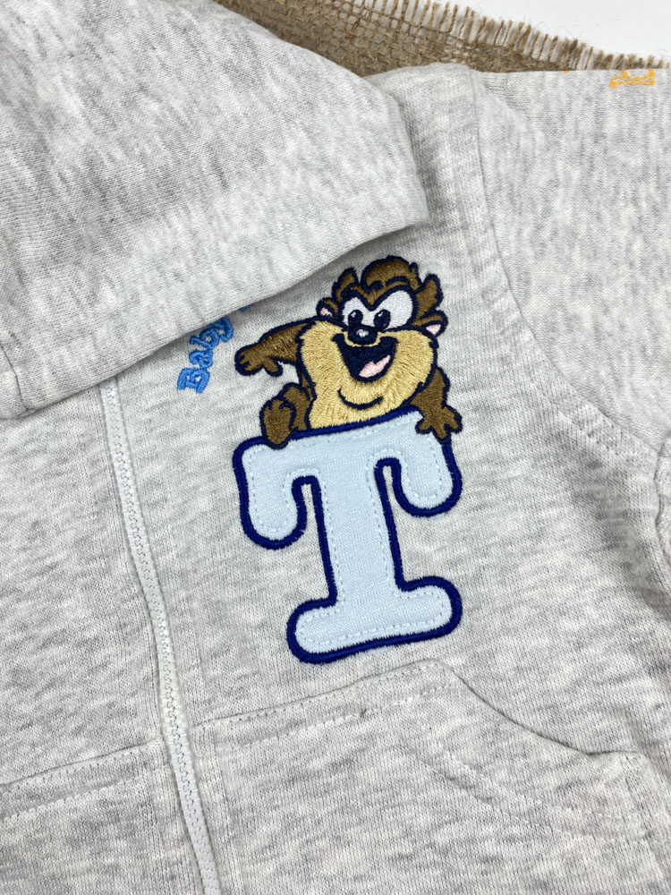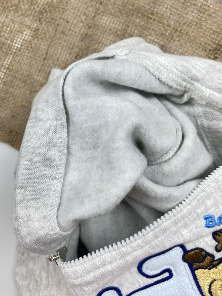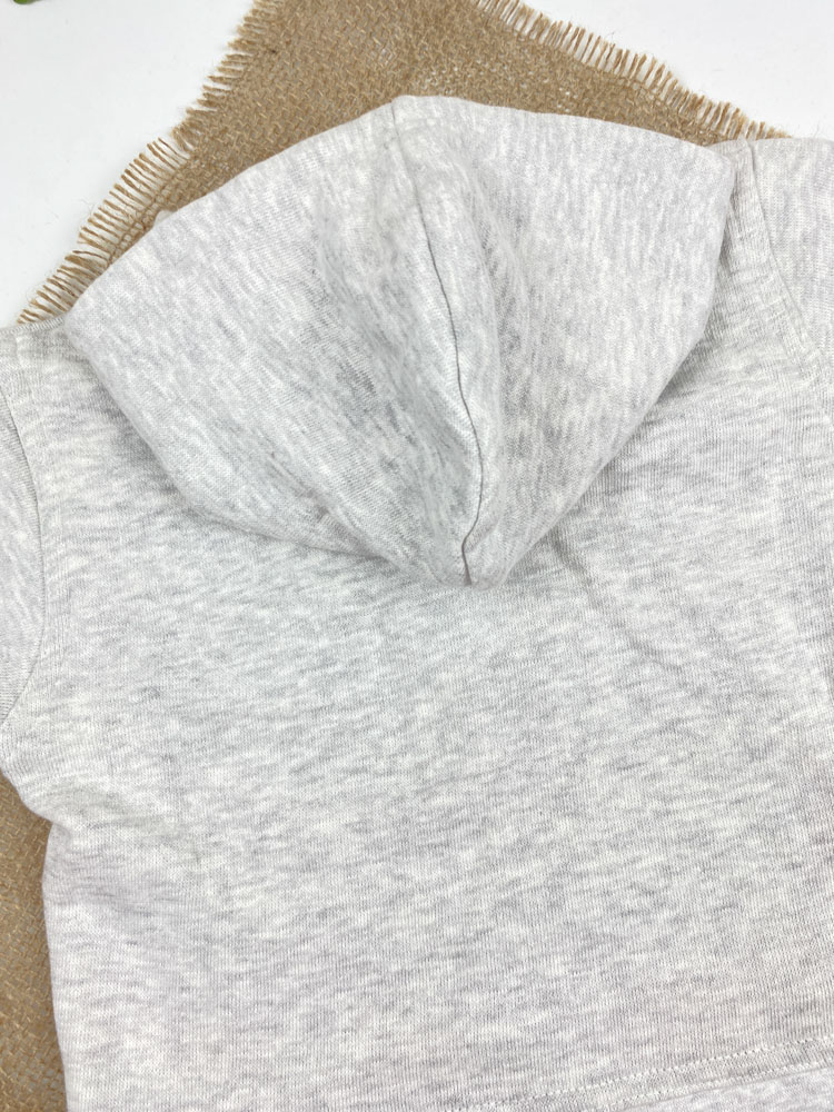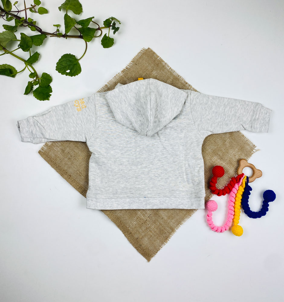 سویشرت نوزادی آستین بلند طرح میمون و حروف T کلاه دار جلو زیپی جیب دار طوسی کمرنگ – 3 تا 6 ماه