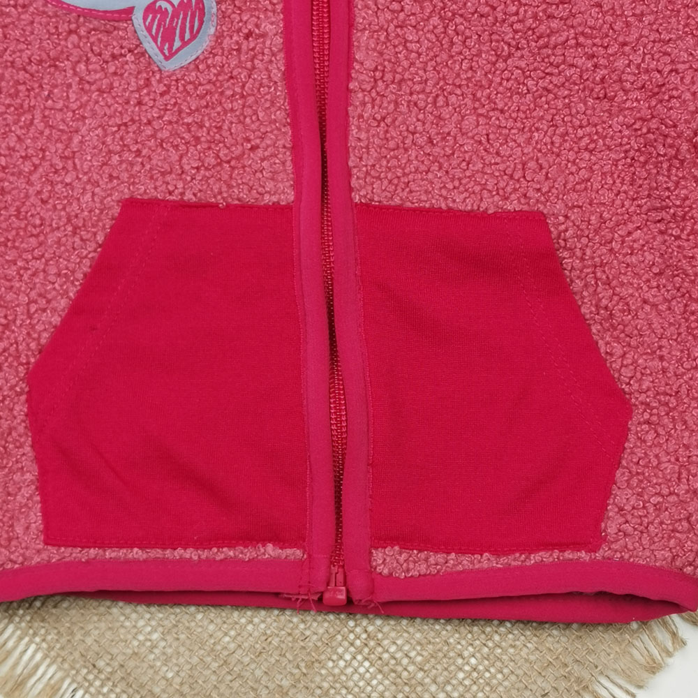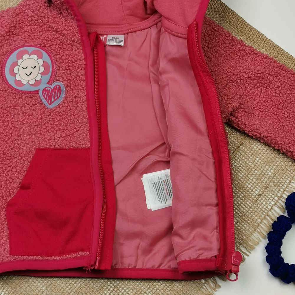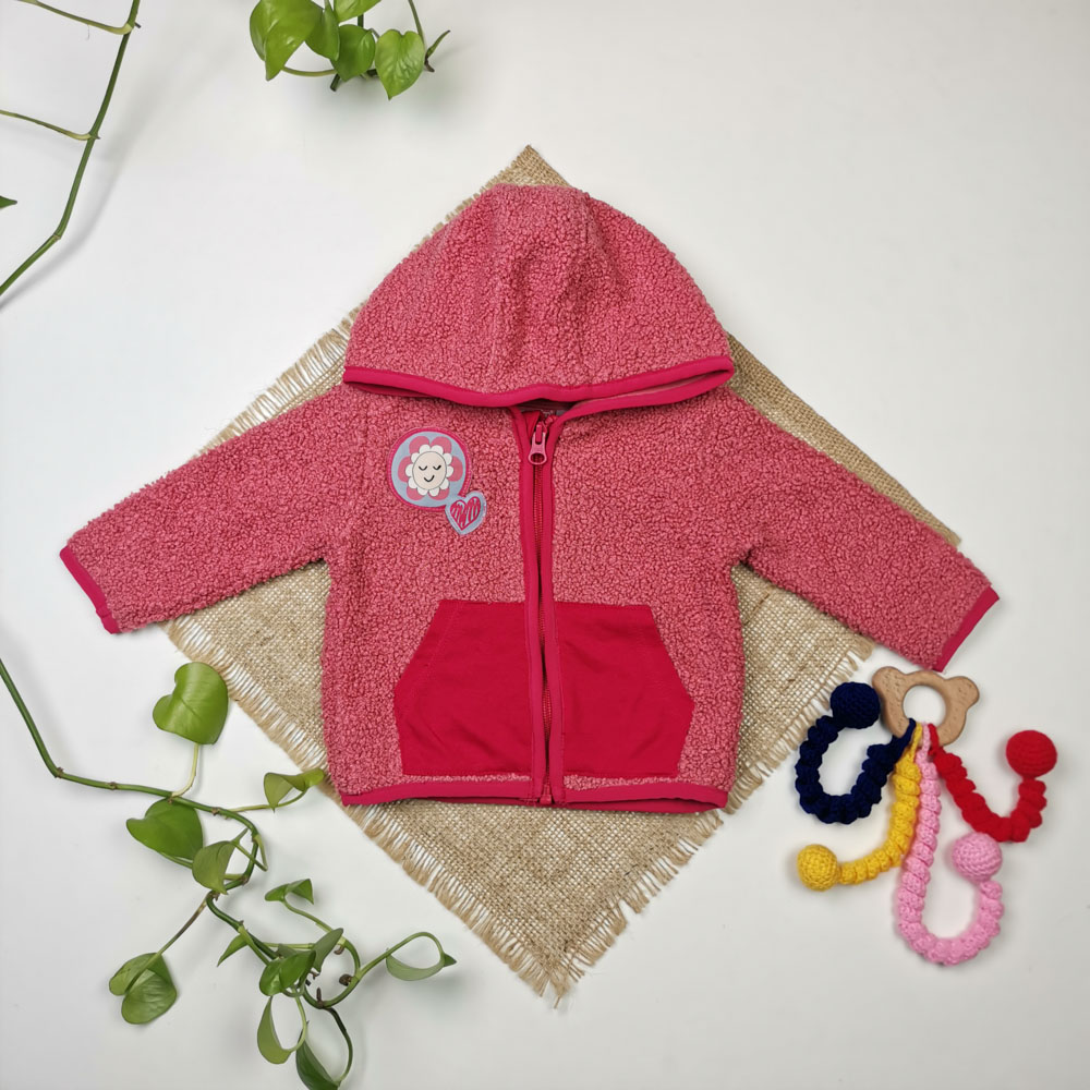 سویشرت نوزادی دخترانه آستین بلند برند لوپیلو طرح گل و قلب آستر دار و تکه دوزی شده سرخابی رنگ – 2 تا 6 ماه
